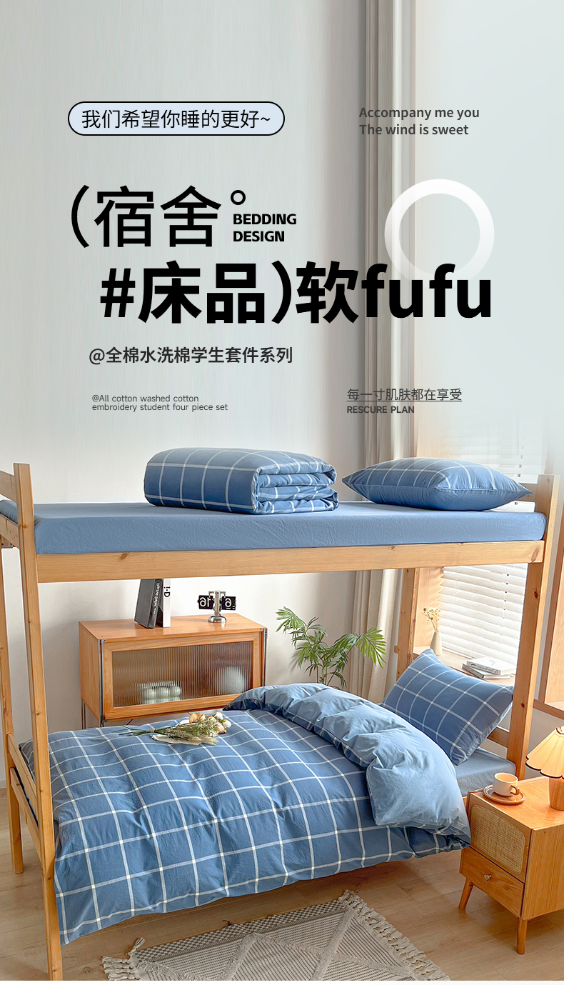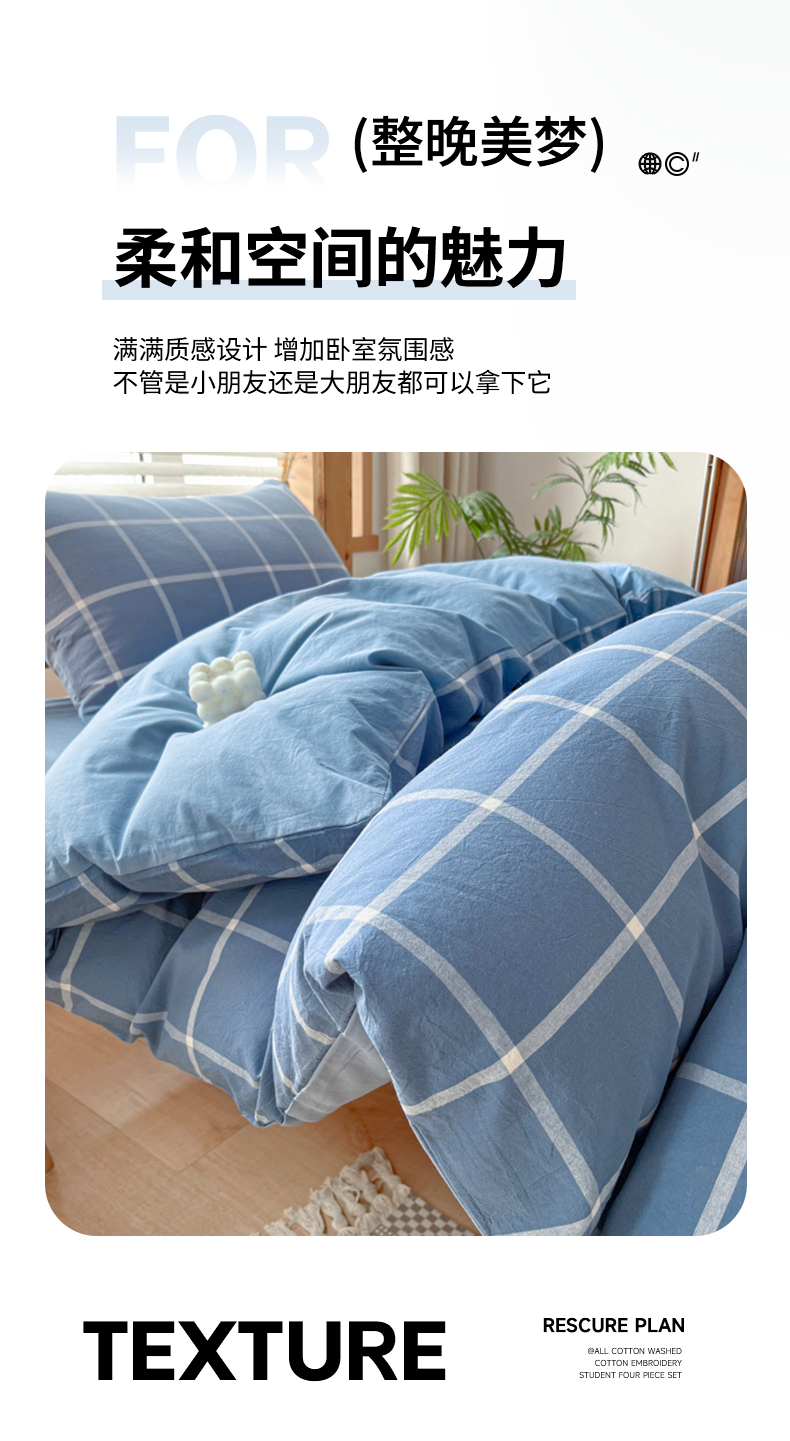 当前位置: 91家纺网 > 商品网购 > 床品套件 > 三件套 > 吉象 2025新款水洗棉学生三件套 大蓝格