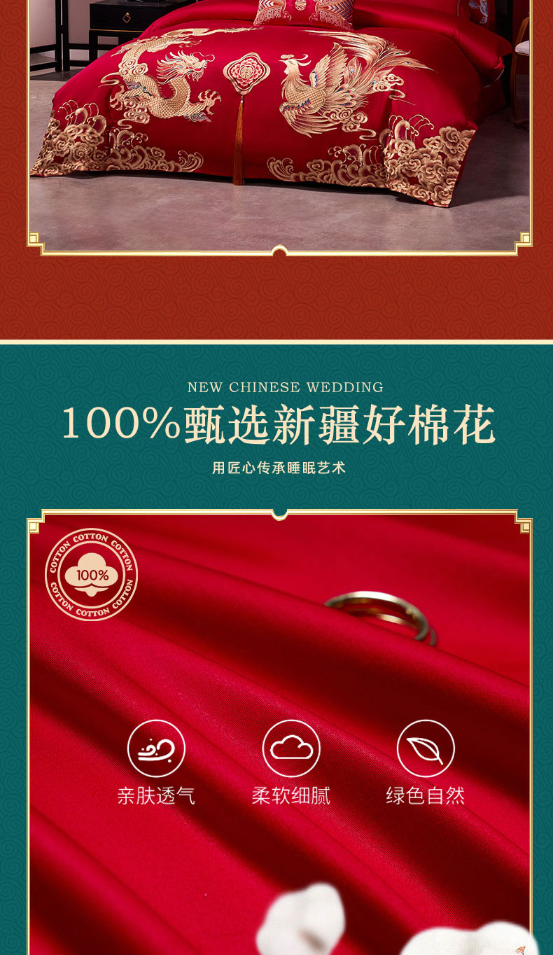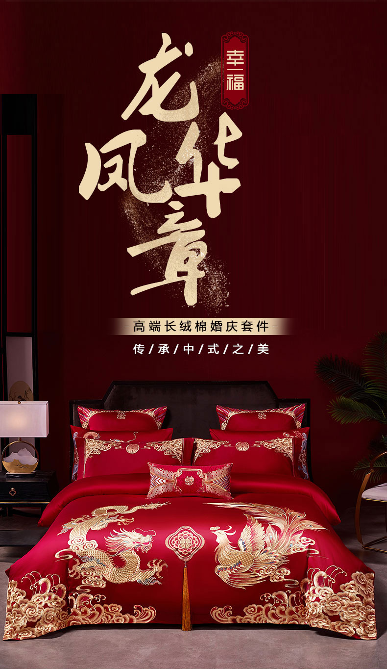 当前位置: 91家纺网 > 商品网购 > 床品套件 > 四件套 > 婚庆四件套 > 用心 2024新款双面长绒棉婚庆四件套 龙凤华章