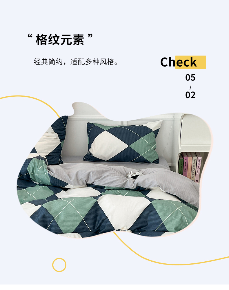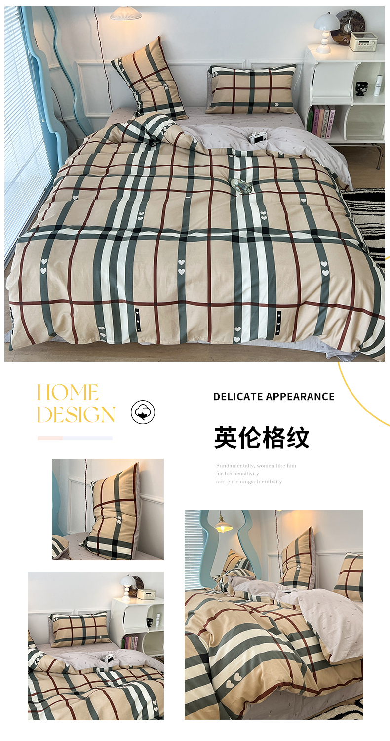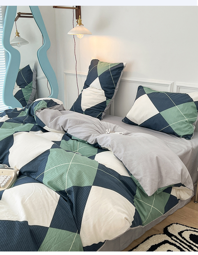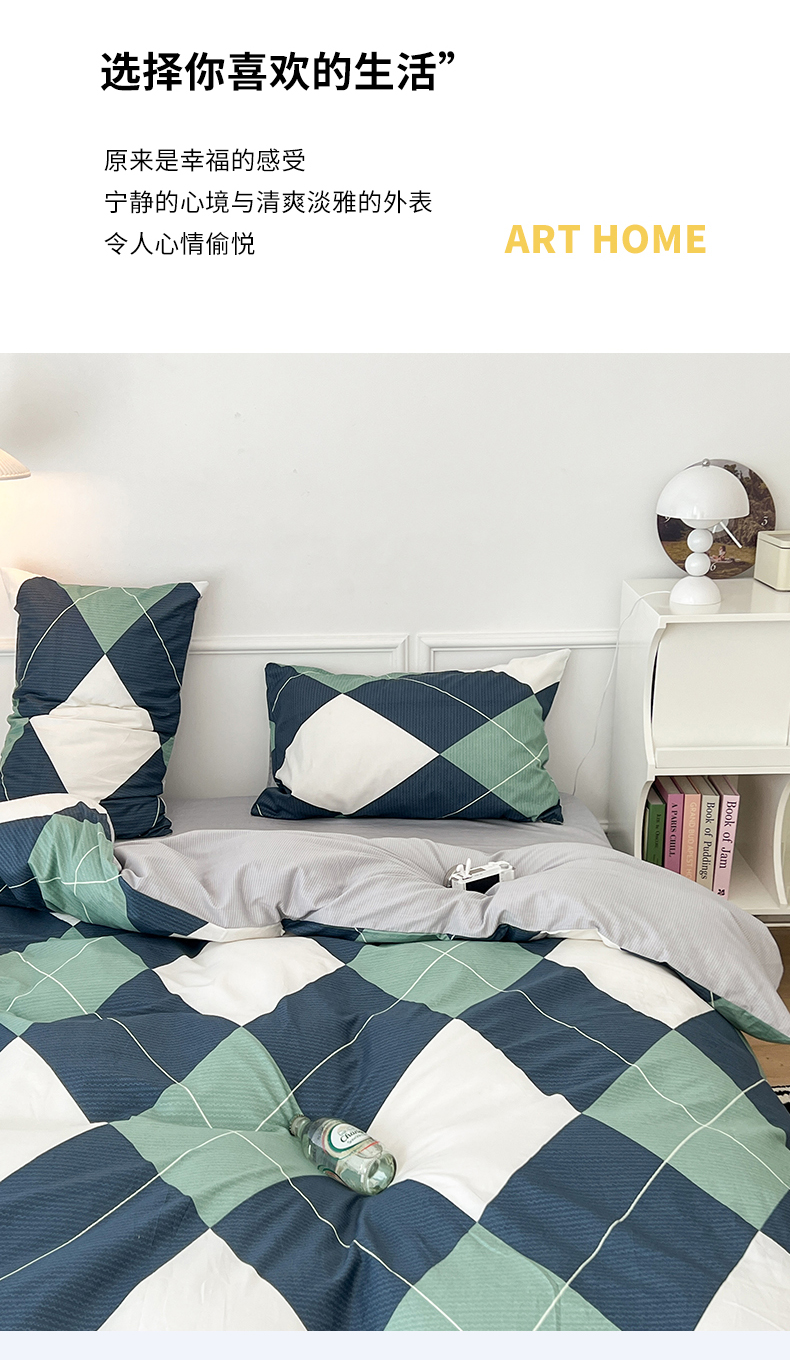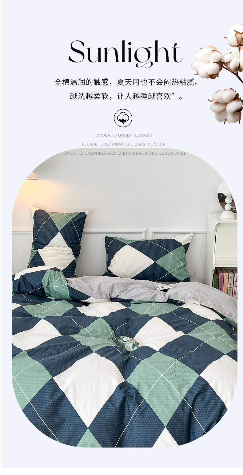 (总)昔可 2023新款全棉ins格子混搭系列四件套,ins简约绿格,粉蓝格,开心果格,学院格纹,粉绿格,海盐兰格,黄绿格,夏日蓝条,芝士黄条,紫芋泥芝士格