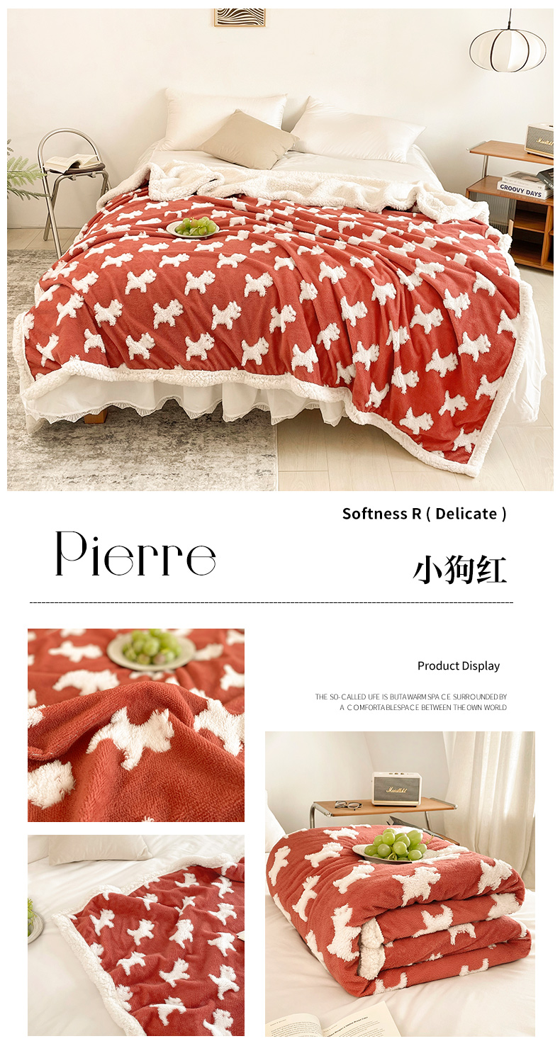 商品名称:迷尚家居 2024新款高克重阳离子绒羊羔绒毛毯 小狗红
