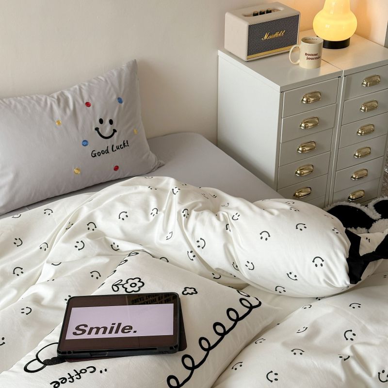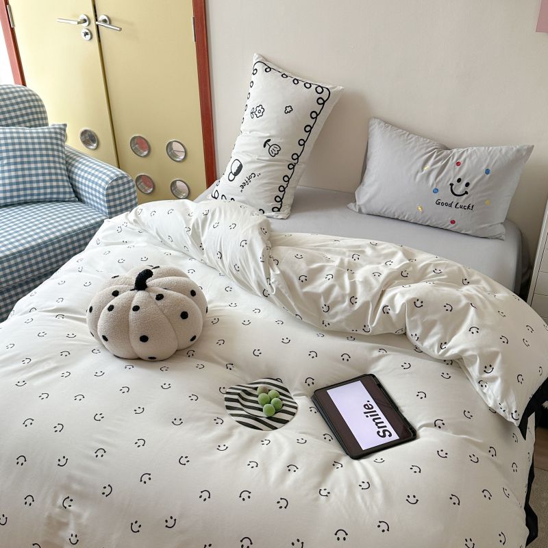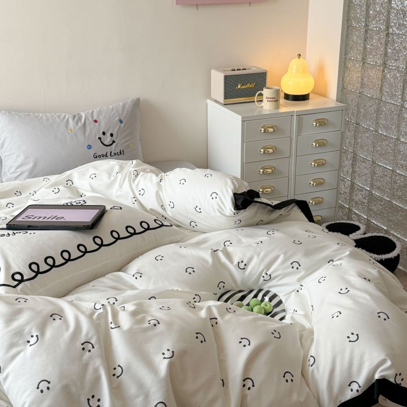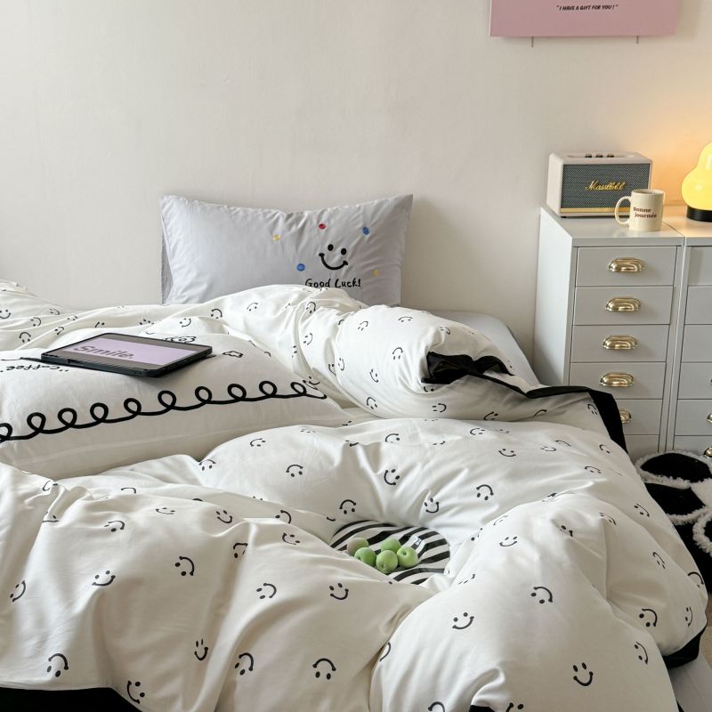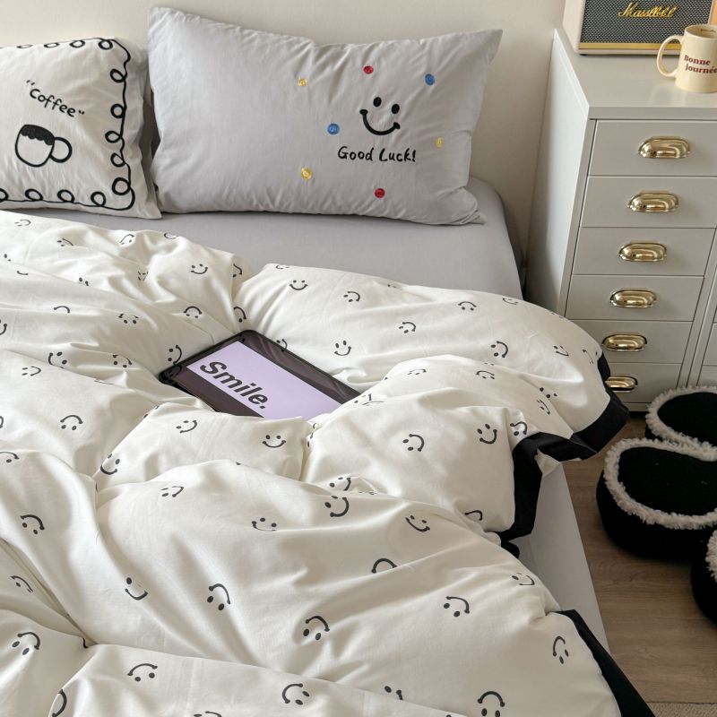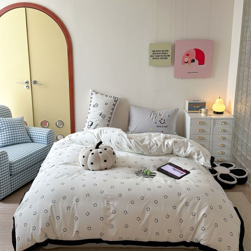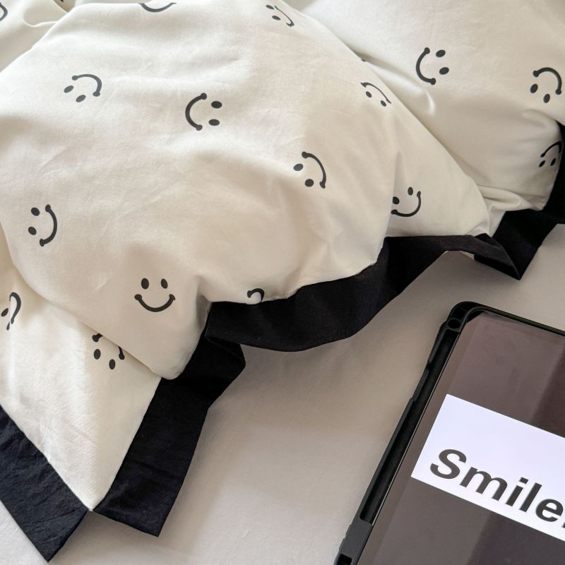 2024新款水洗棉宽边小清新四件套 笑脸