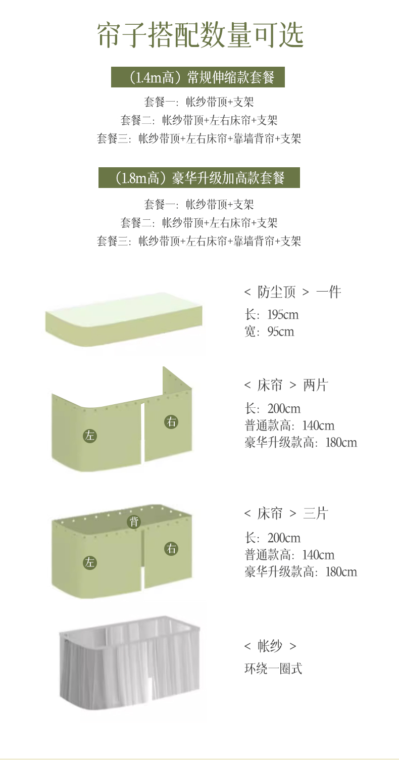 套餐三(1.4高)蚊帐带顶+左右帘+靠墙帘+支架 | ¥190.00 |