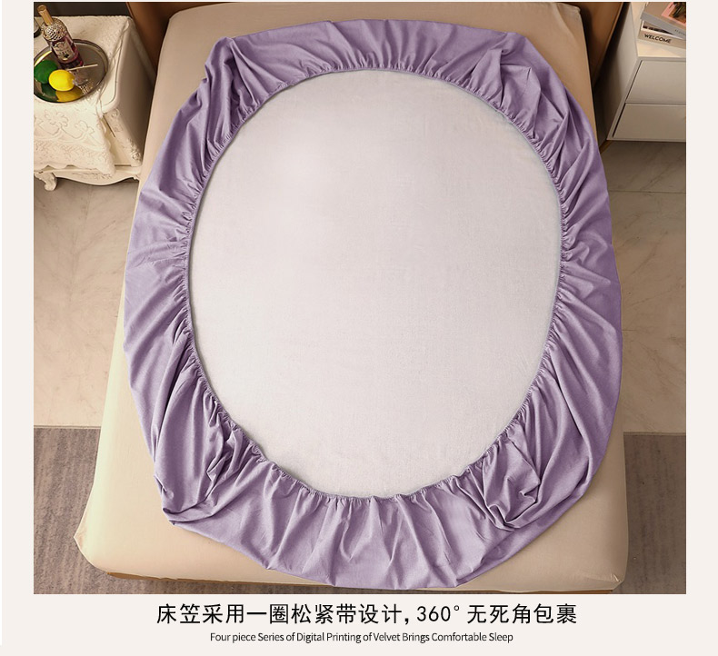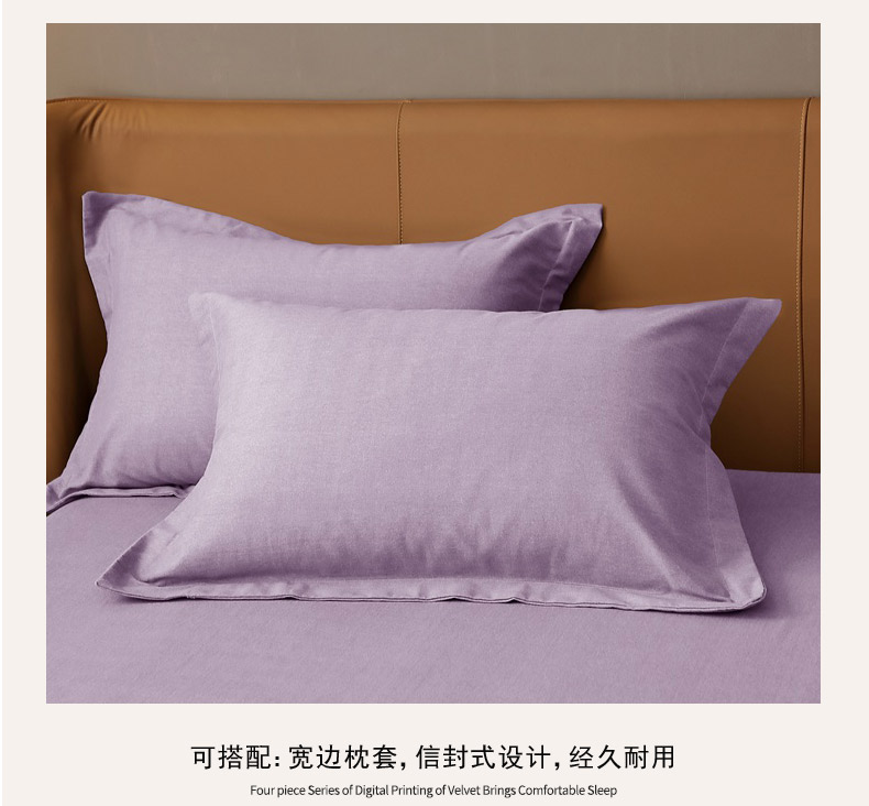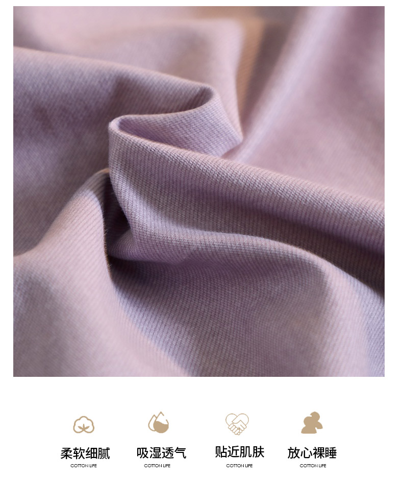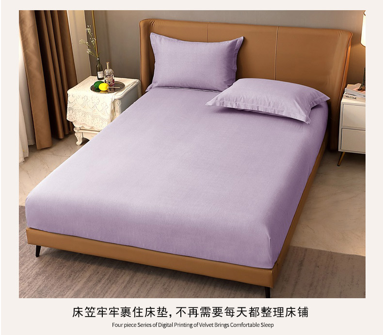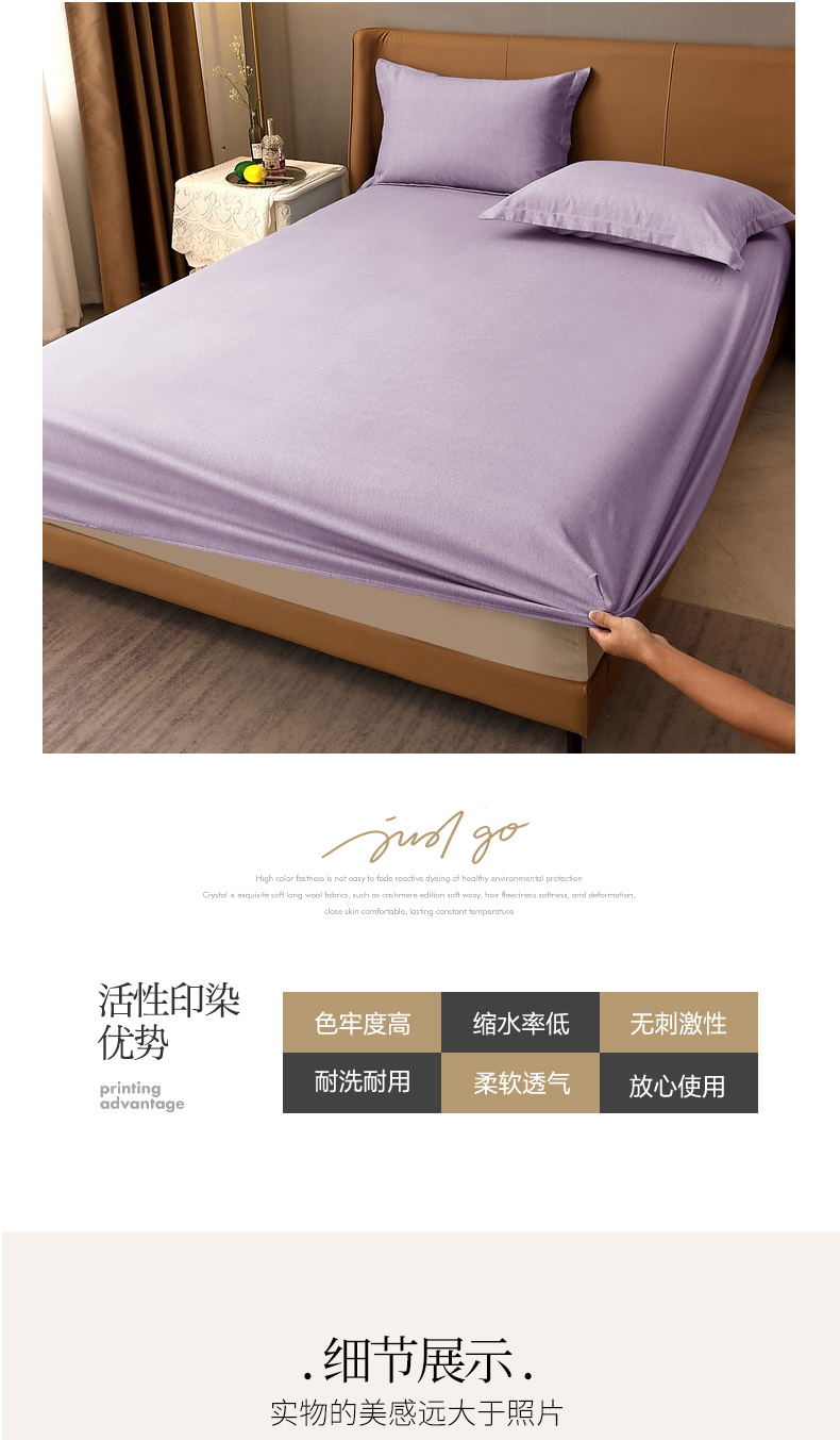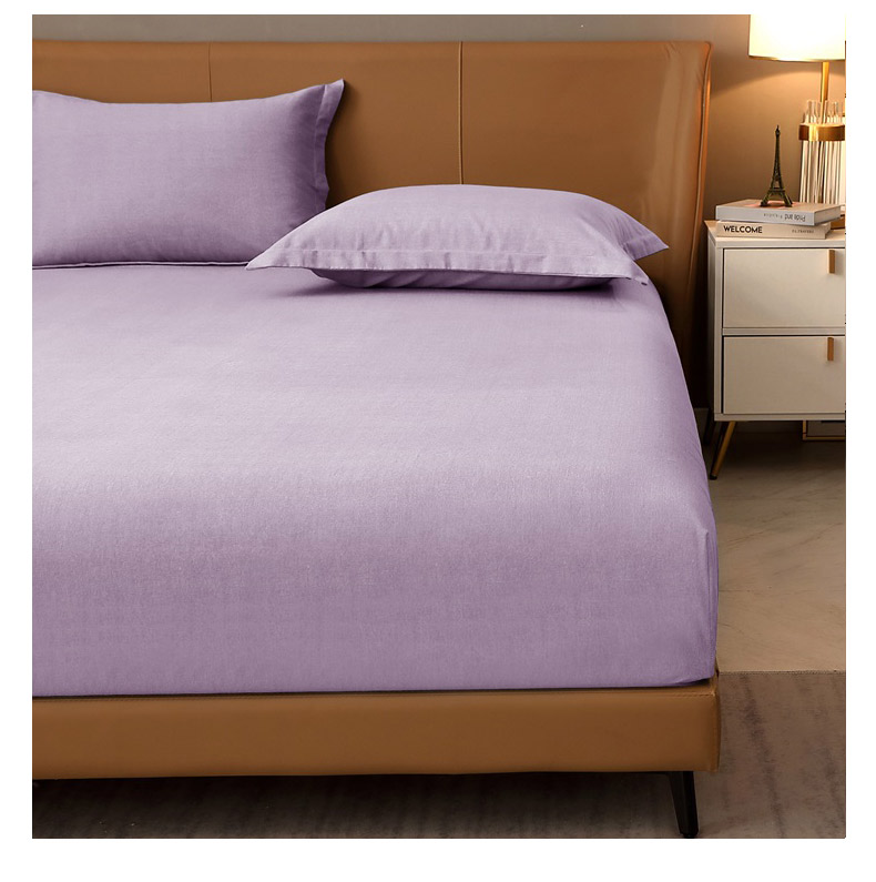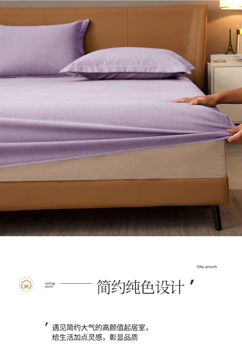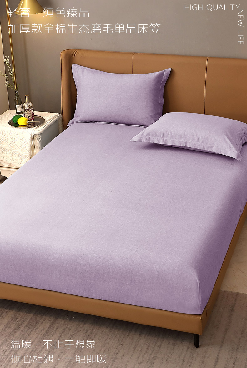 晶缦家纺 2024新款加厚纯棉喷气全棉纯色生态磨毛多规格单品床笠 纯依-浅紫