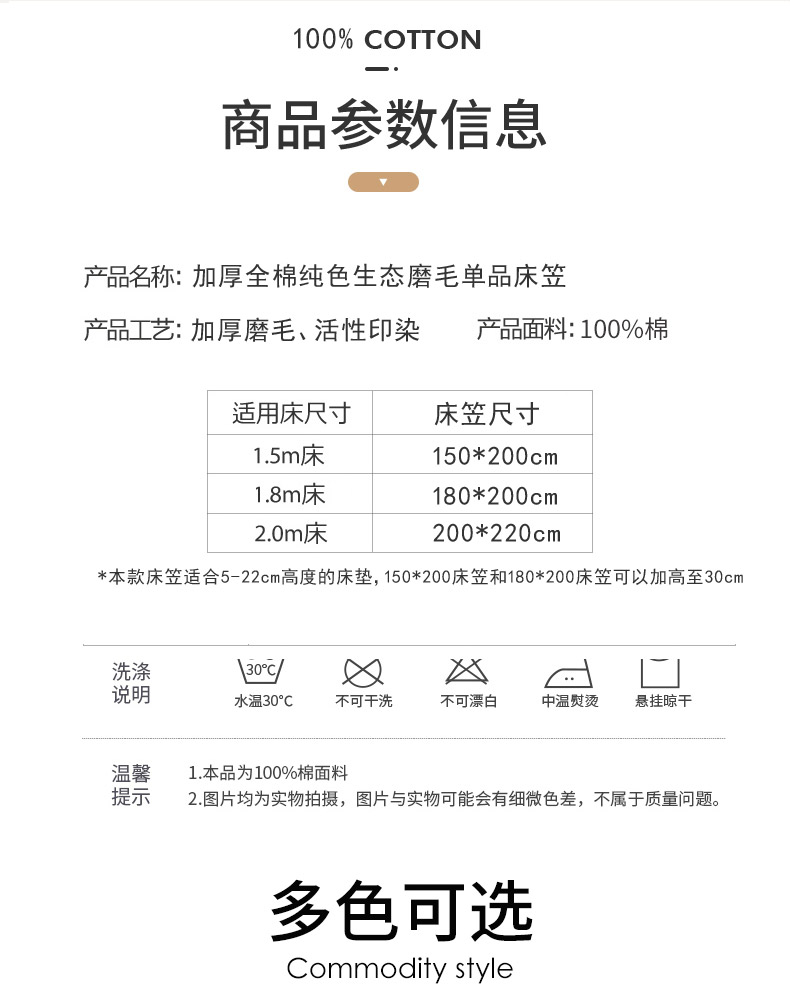 商品名称:晶缦家纺 2024新款加厚纯棉喷气全棉纯色生态磨毛多规格单品床笠 纯依-浅紫