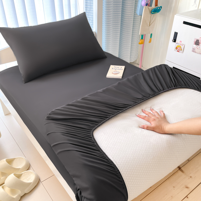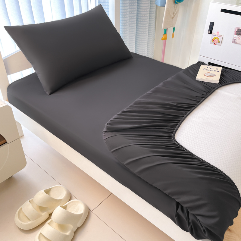 商品名称:老帅的工厂店 2025新款亲肤磨毛防水纯色学生床笠-小床图 深灰