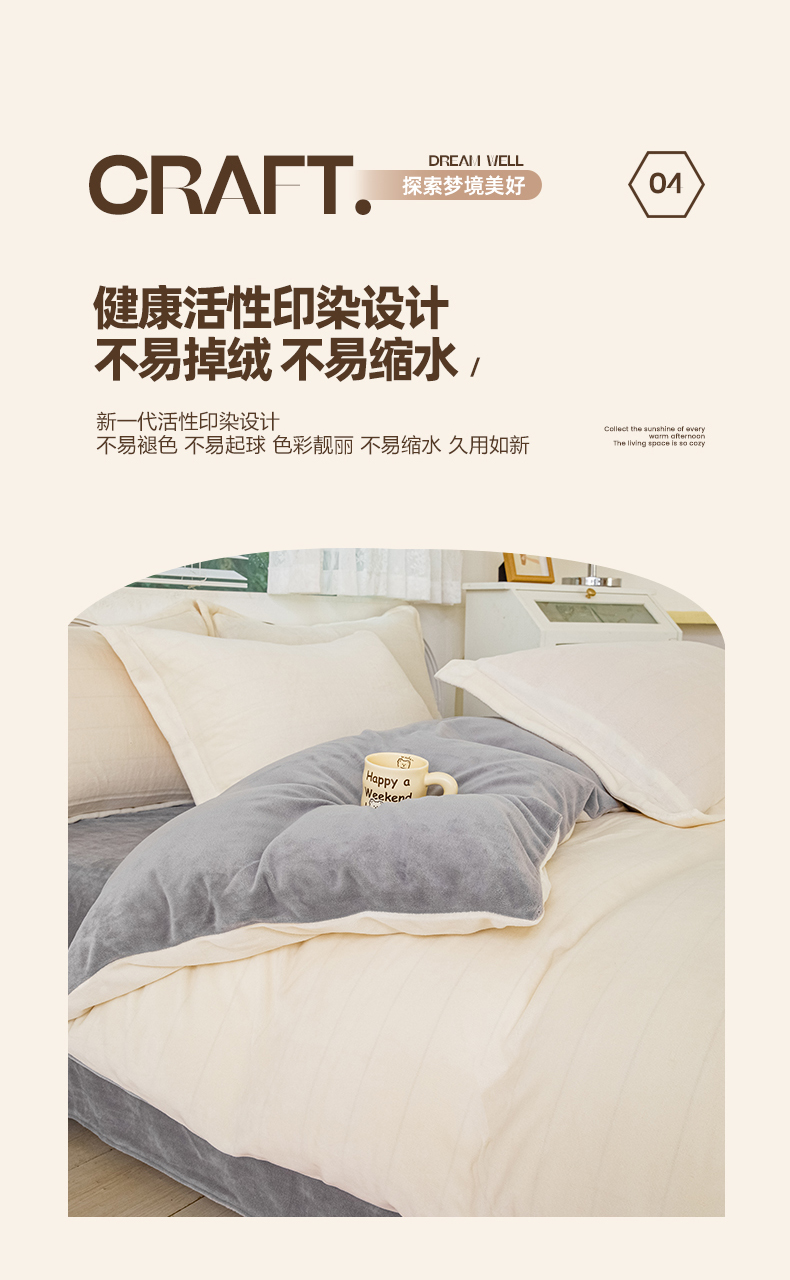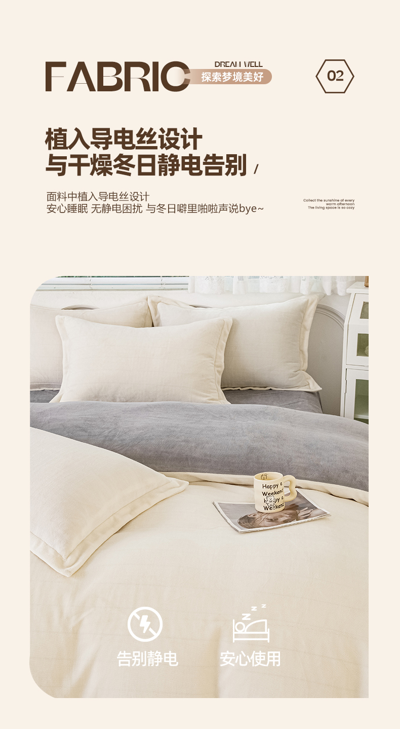 当前位置: 91家纺网 > 商品网购 > 床品套件 > 四件套 > 牛奶绒四件套 > 锦罗绣 2024新款230克纯色牛奶绒四件套 米白拼灰