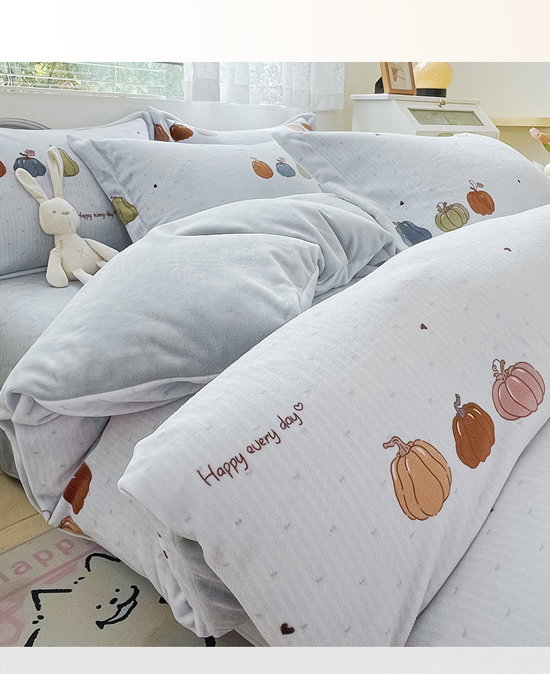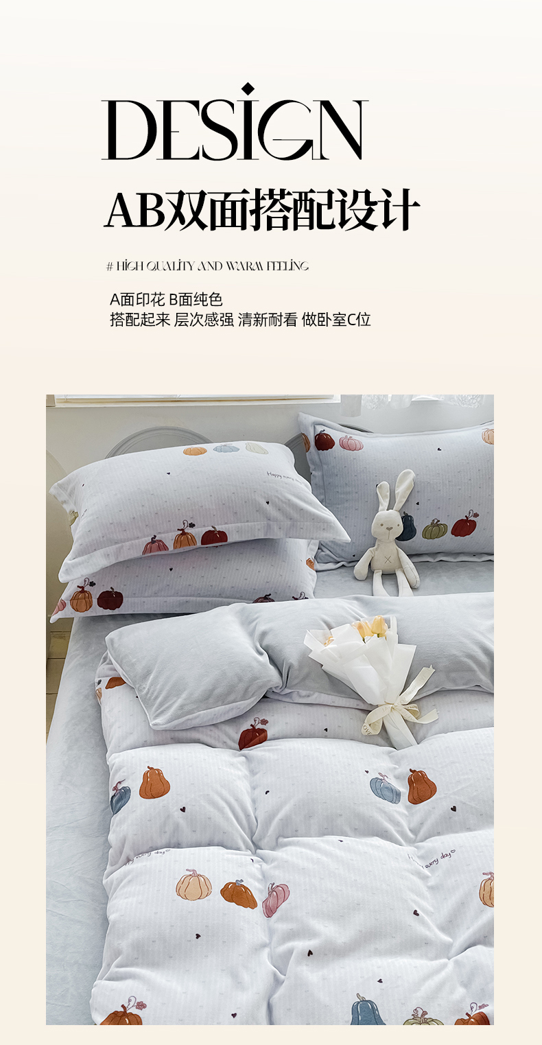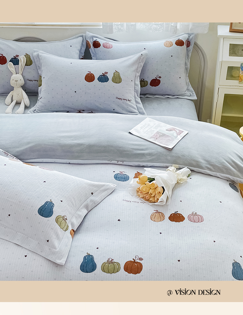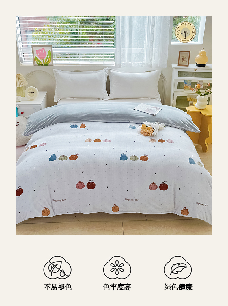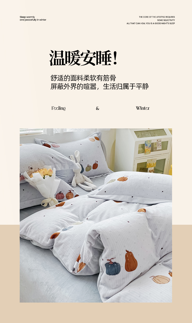 • 91家纺网 家纺一手货源 找家纺 锦罗绣 2024新款A类高克重牛奶绒印花单被套 小南瓜