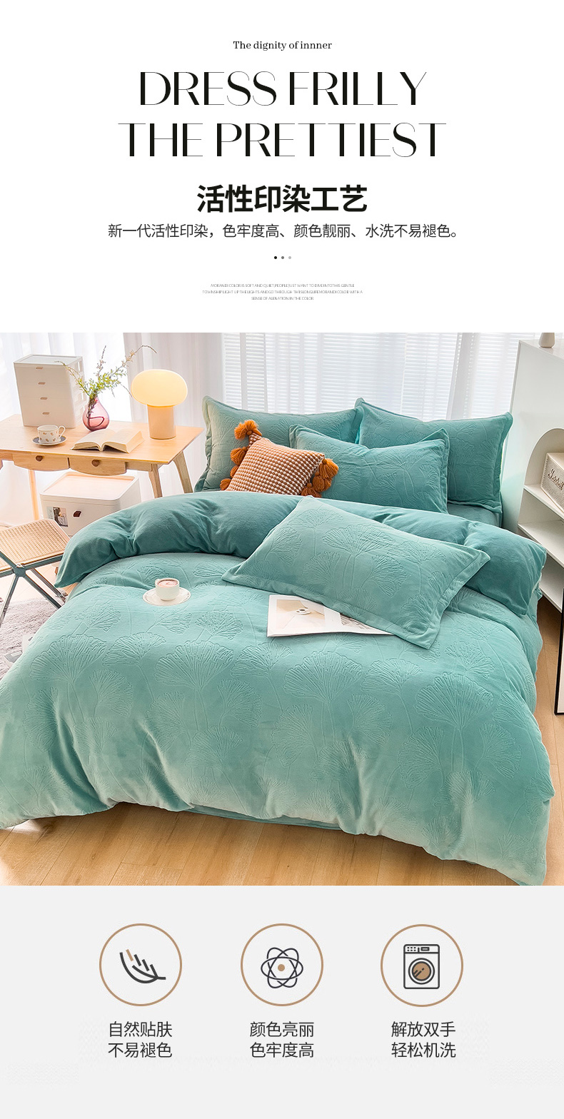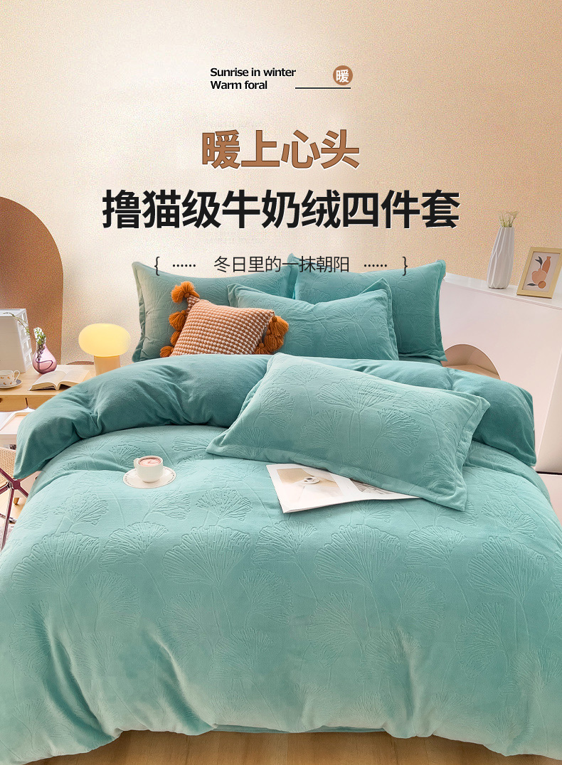 当前位置: 91家纺网 > 商品网购 > 床品套件 > 四件套 > 牛奶绒四件套 > 锦罗绣 2024新款全消光230克牛奶绒烂花绒提花四件套 银杏叶-绿