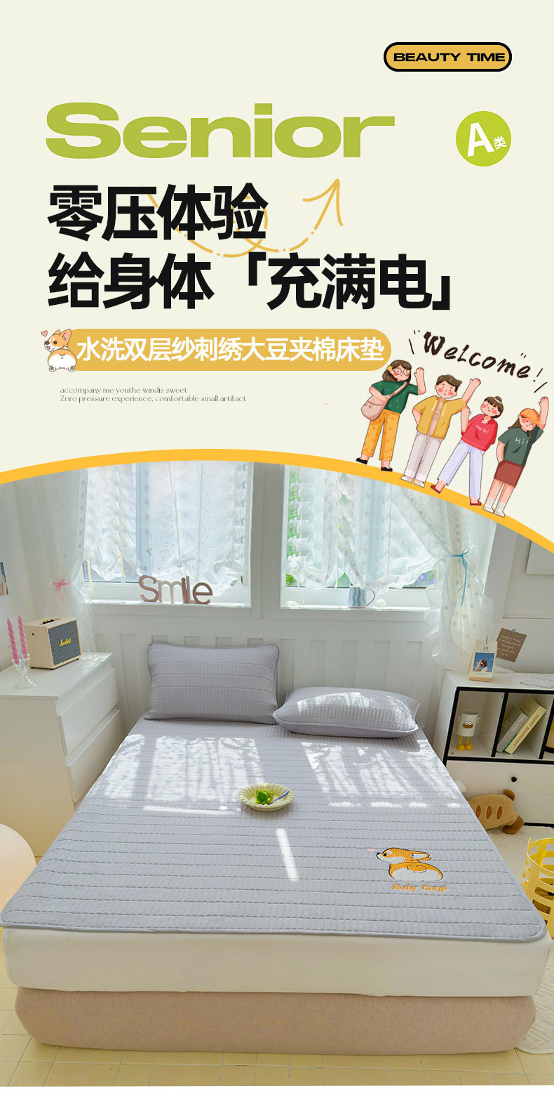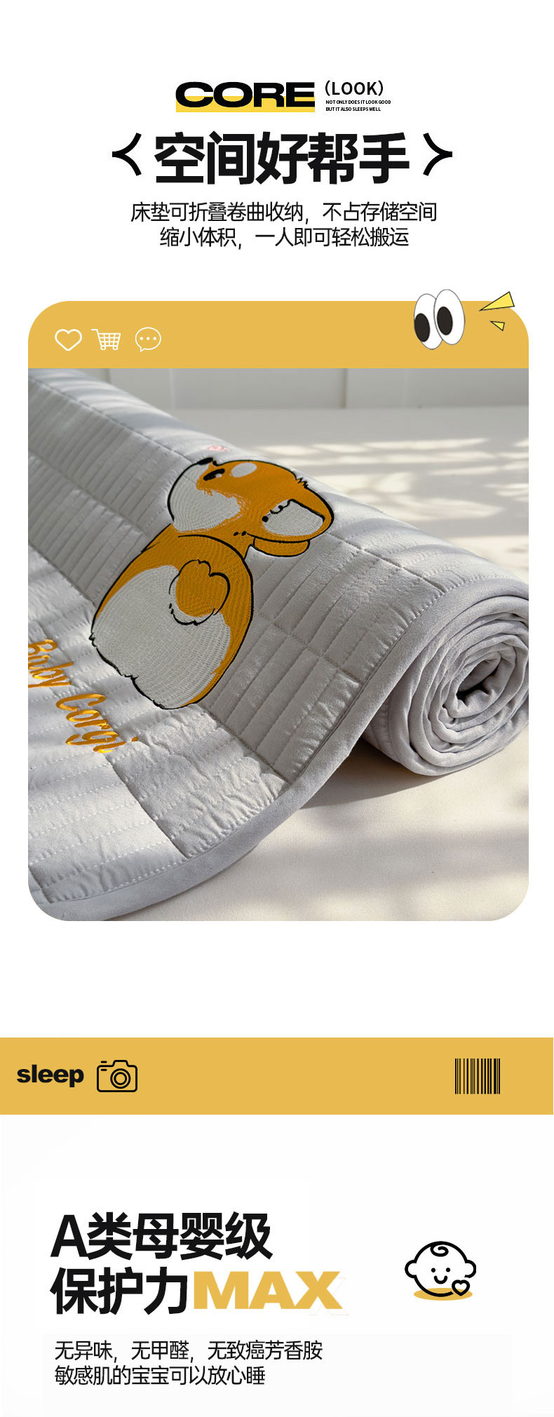 当前位置: 91家纺网 > 商品网购 > 床垫/床褥 > 普通床垫 > 灰鲸 2025新款水洗双层纱萌物刺绣大豆夹棉床垫 柯基baby-纳多灰