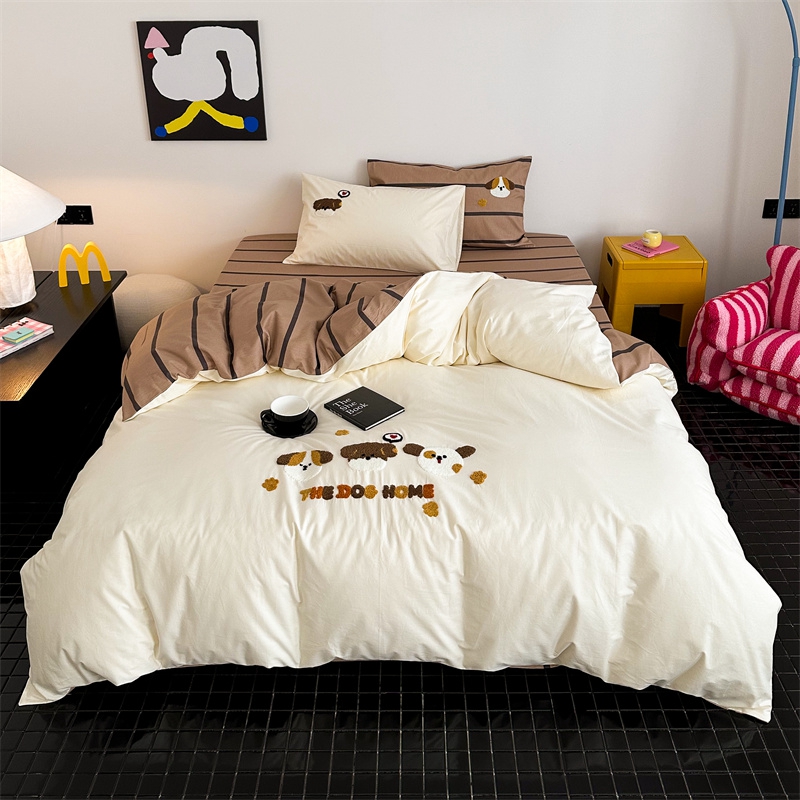 (总)珺柔家纺 2025新款全棉磨毛绣花四件套,风车小熊,海盐雪纳瑞,黑白熊猫,咖啡店小狗,腊肠三小只,萌神小喵,纽扣小熊,苹果小熊-咖,苹果小熊-蓝,夏日时光,小恶魔