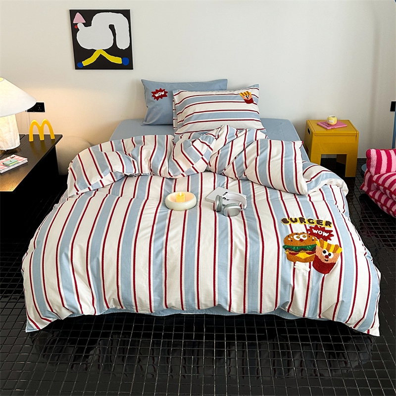 (总)2023新款40支纱全棉13070锁边工艺款四件套系列,格子爱心,嘉兰,咖条,朗尼,小兔兔,星星兔