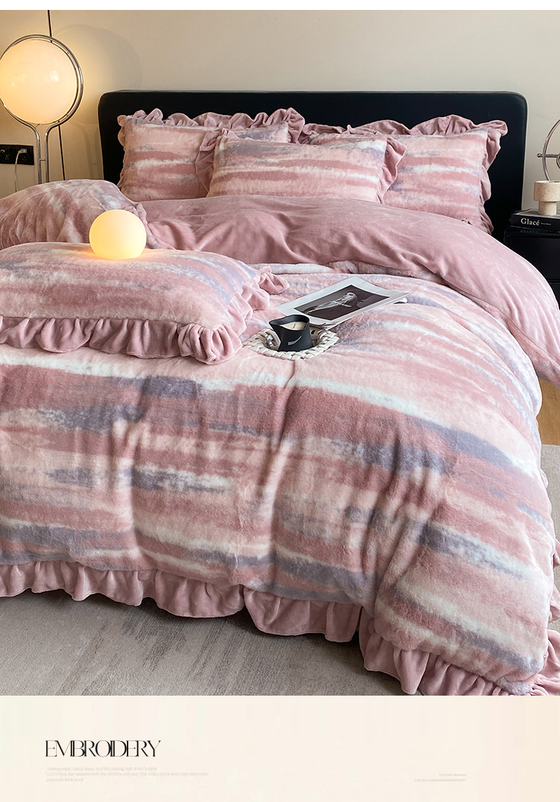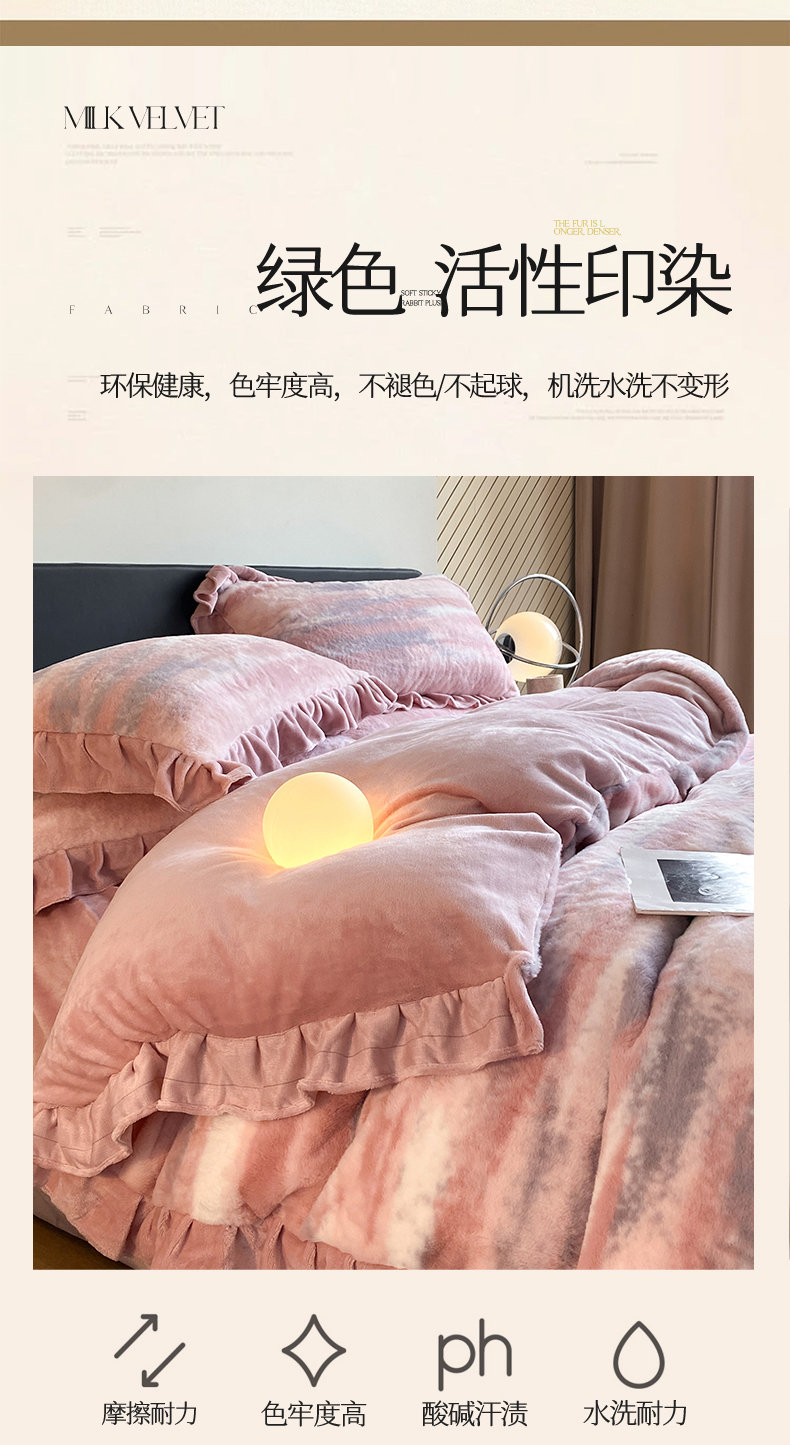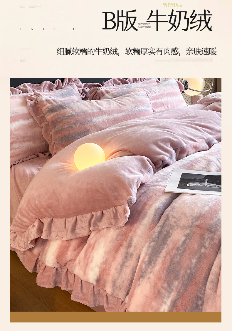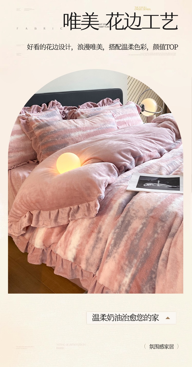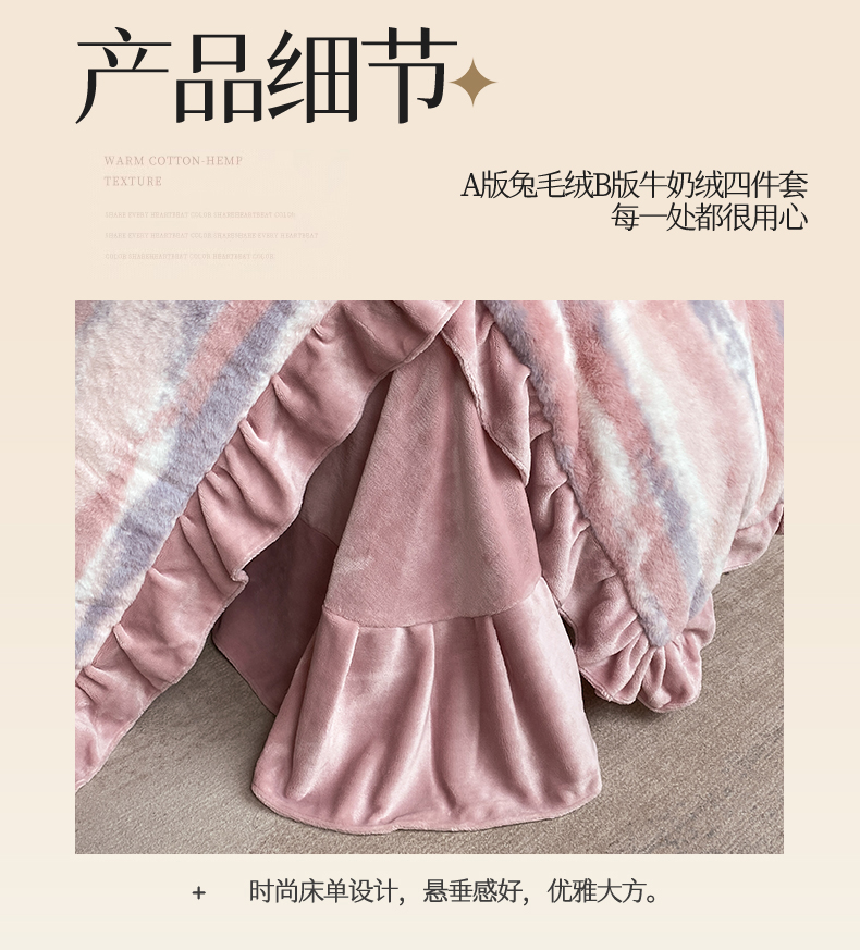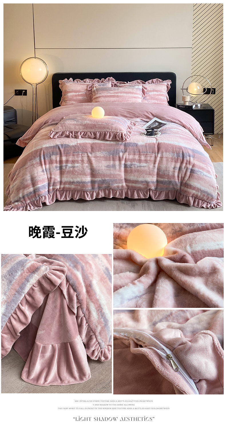 商品名称:2024新款AB版兔毛绒韩版四件套 晚霞-豆沙