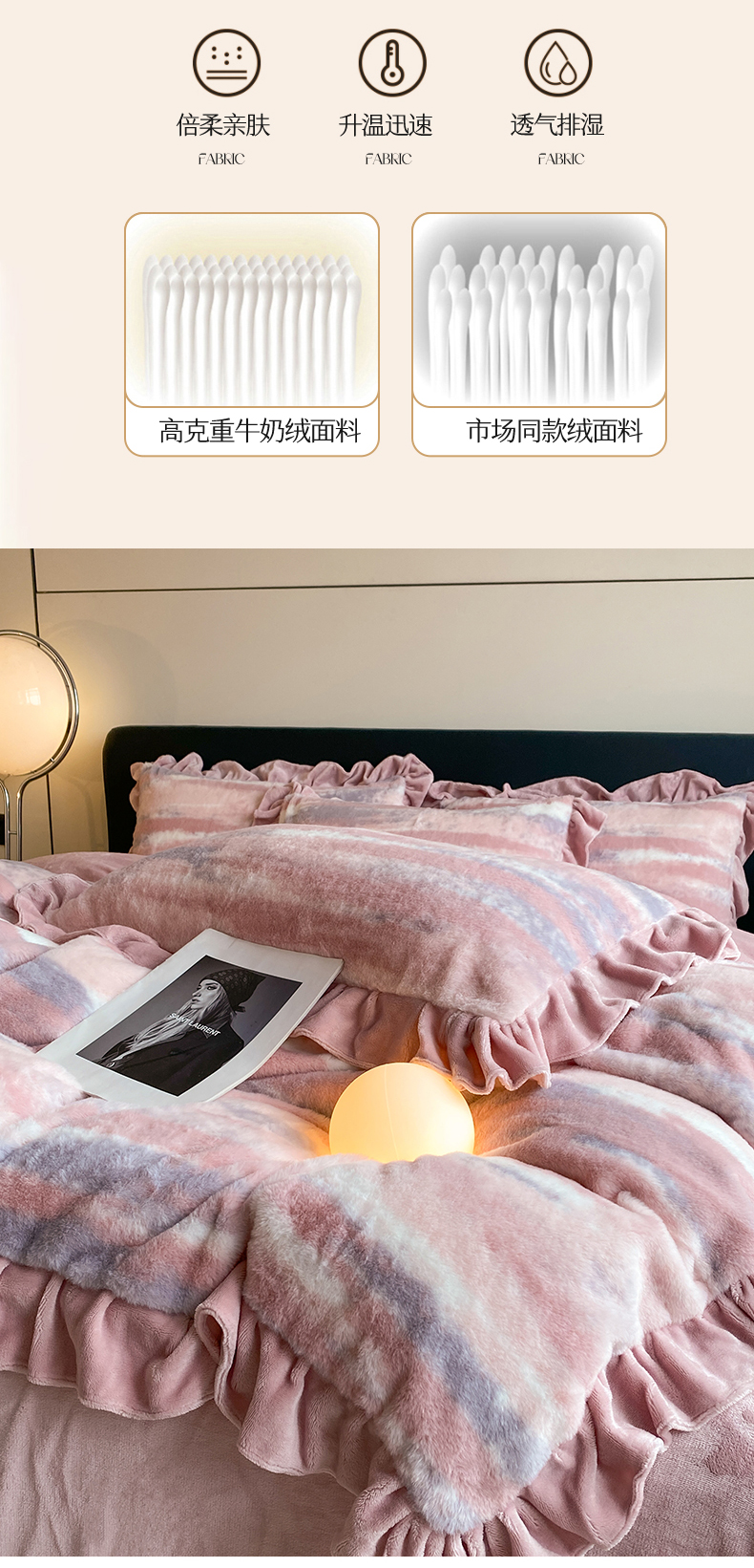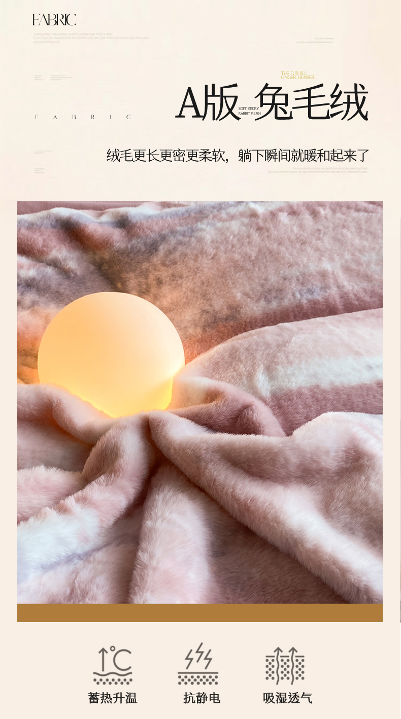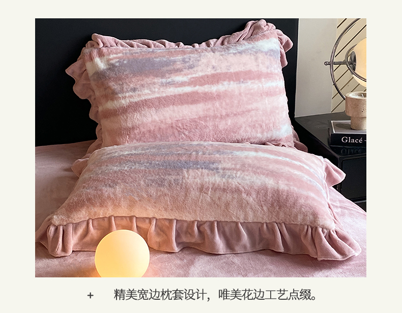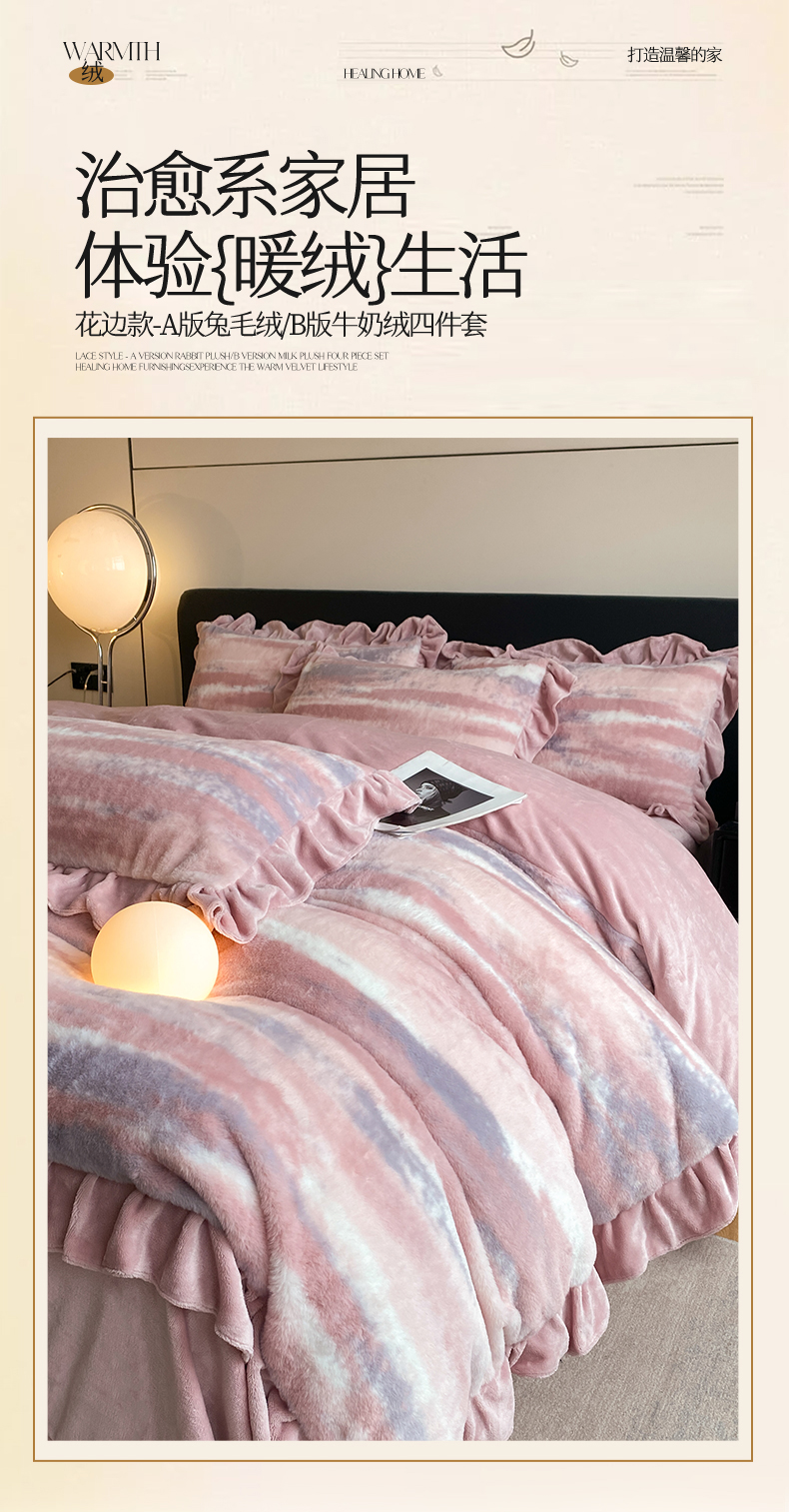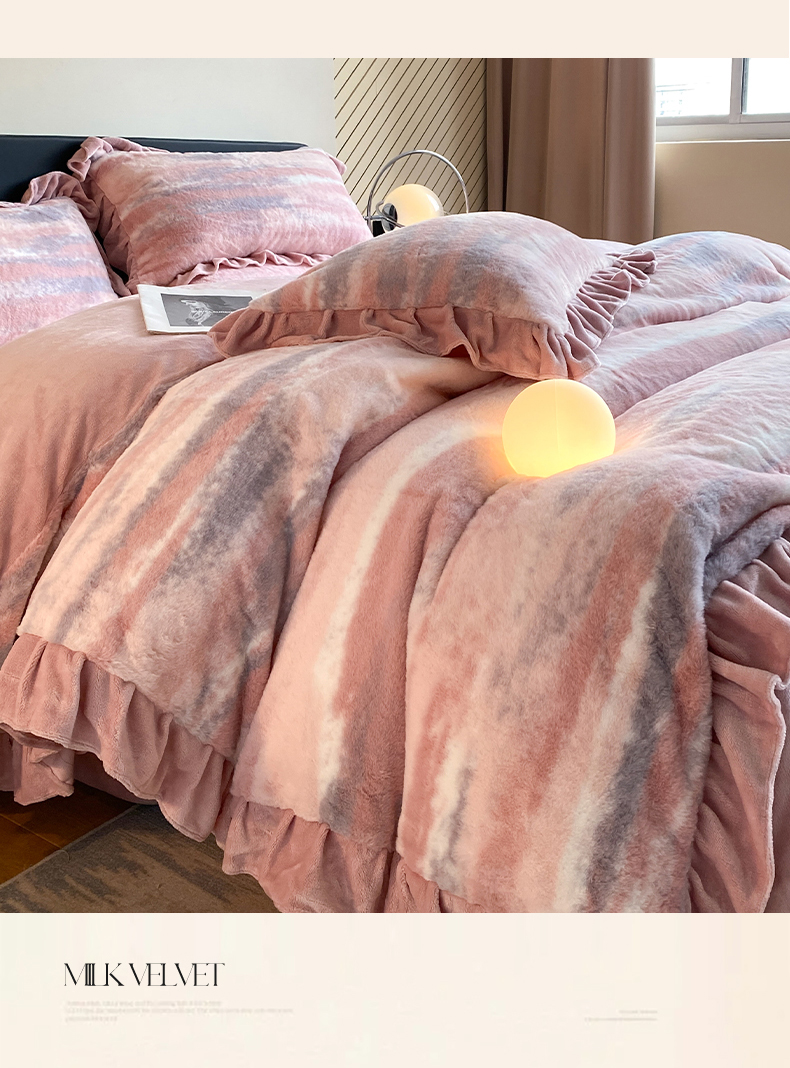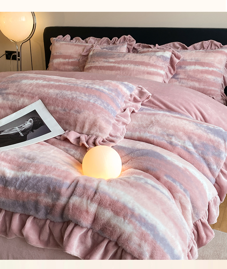 商品名称:2024新款AB版兔毛绒韩版四件套 晚霞-豆沙