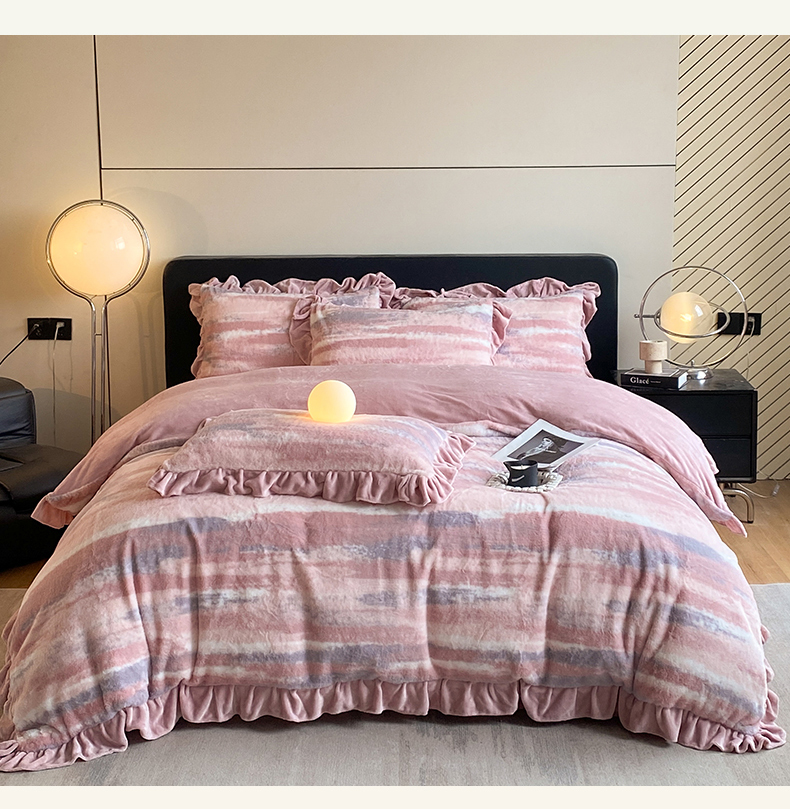 2024新款AB版兔毛绒韩版四件套 晚霞-豆沙