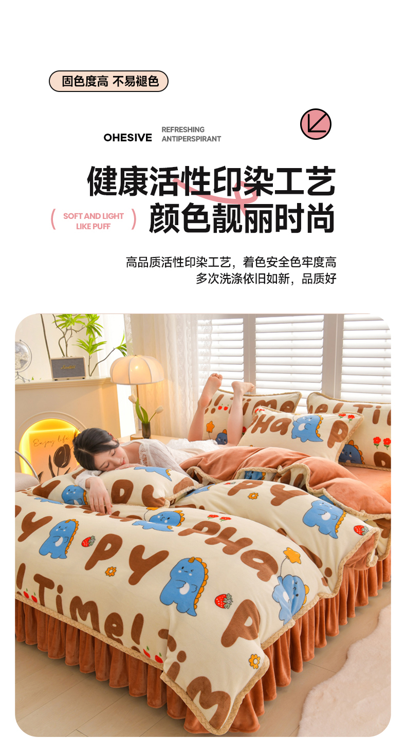 绒耀 2025新款高克重牛奶绒四件套保暖四件套直播爆款电商爆款 快乐萌龙