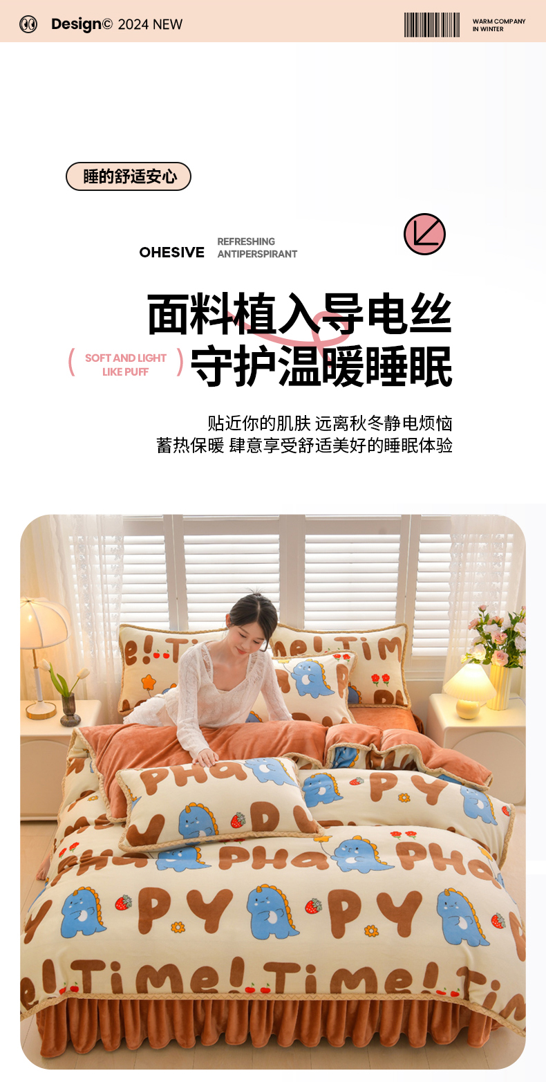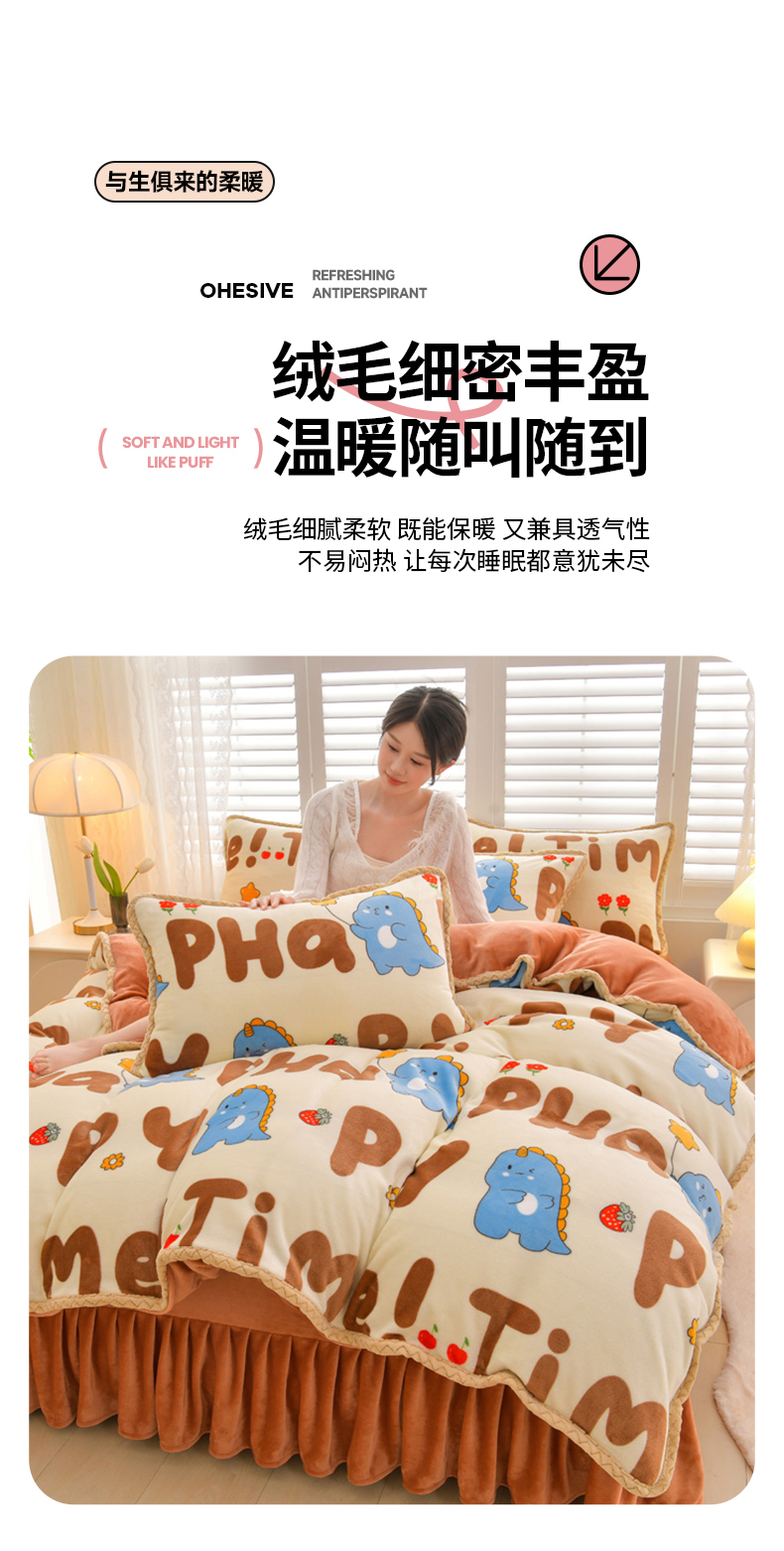 商品名称:绒耀 2025新款高克重牛奶绒四件套保暖四件套直播爆款电商爆款 快乐萌龙
