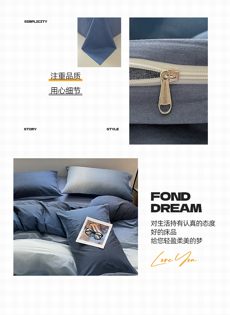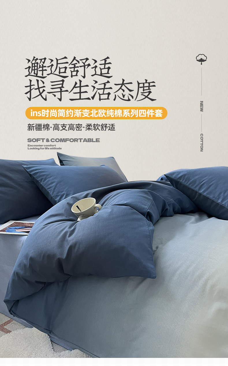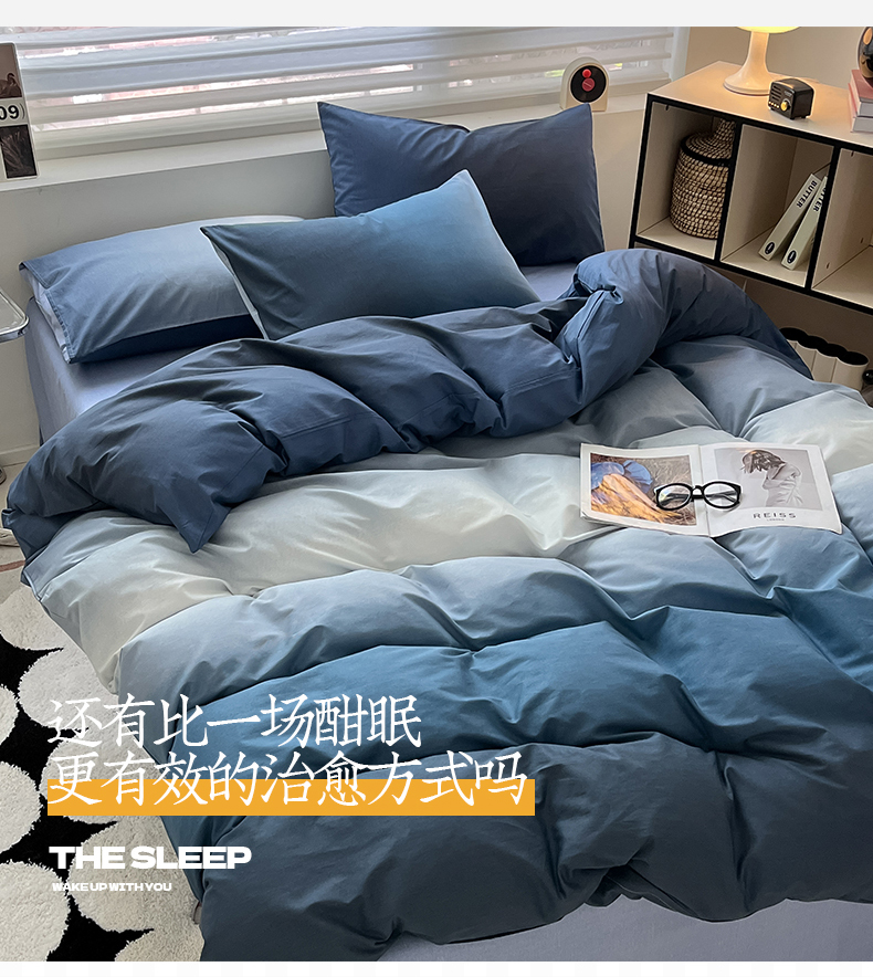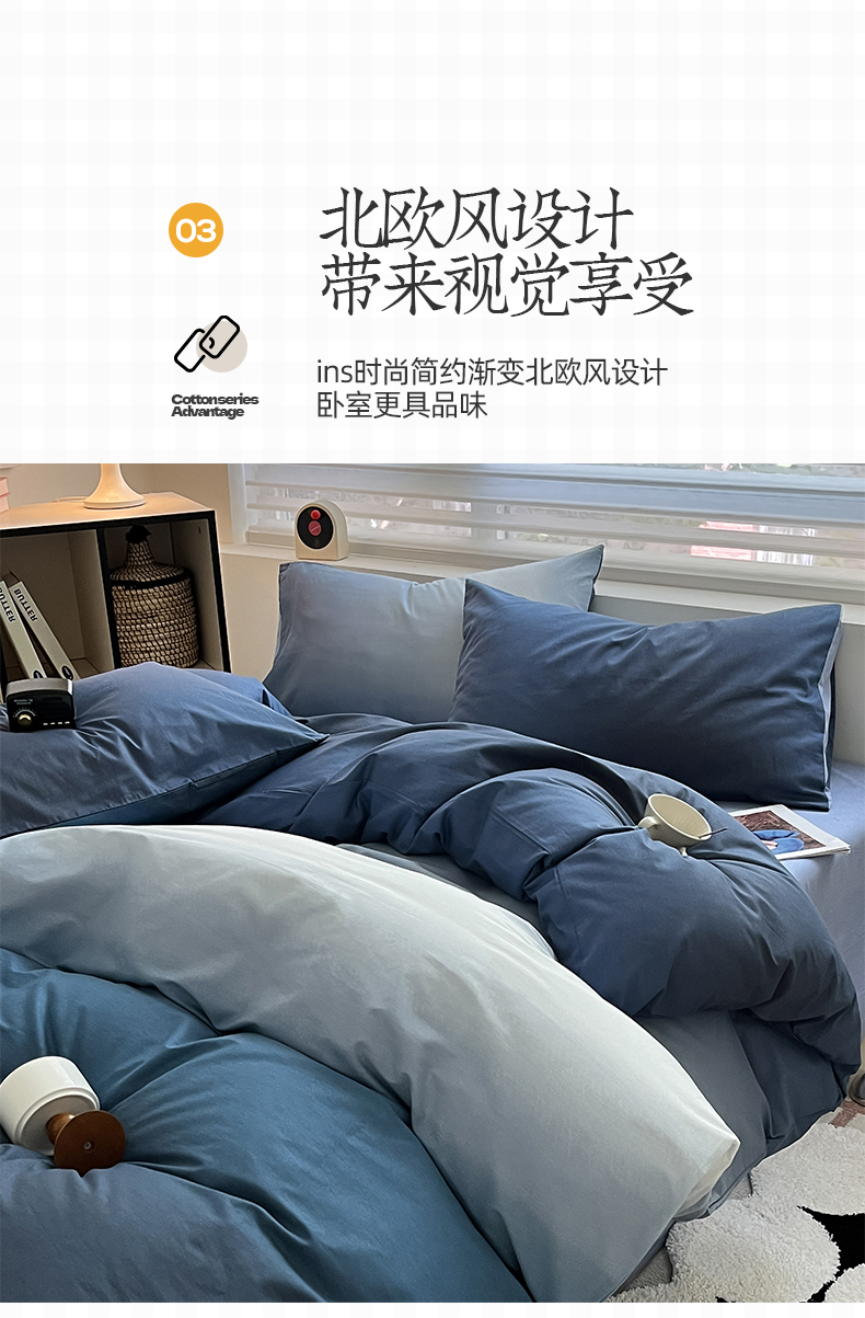 商品名称:2024新款ins时尚简约渐变北欧全棉系列四件套 棉-蓝色渐变