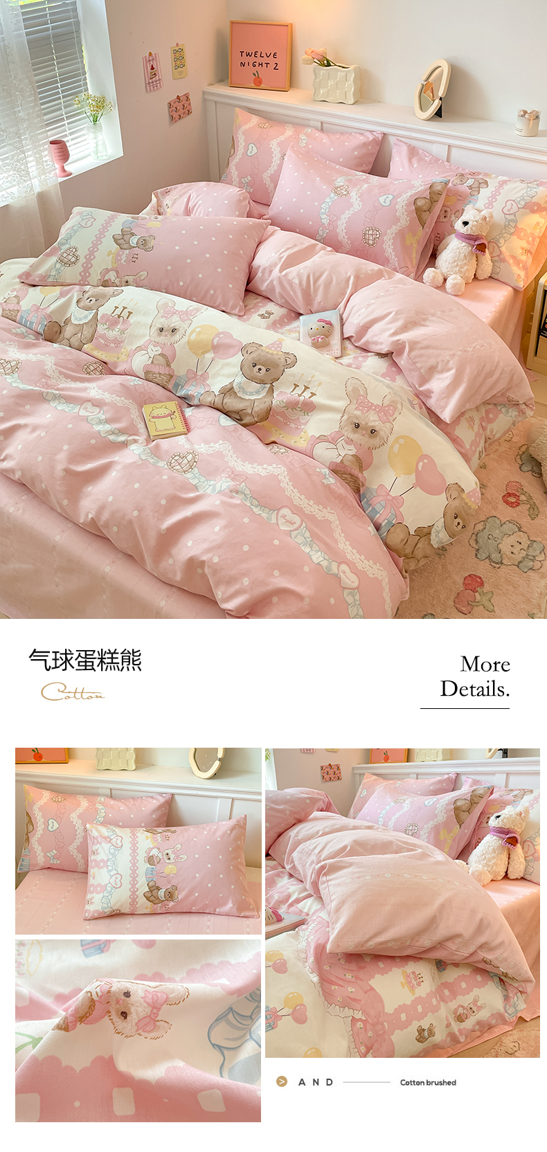 商品名称:2024新款全棉舒适印花四件套 气球蛋糕熊
