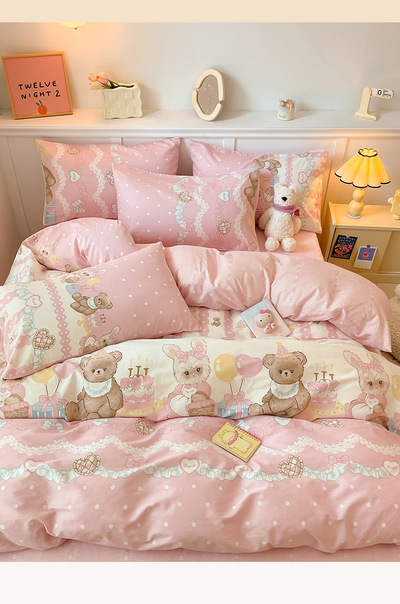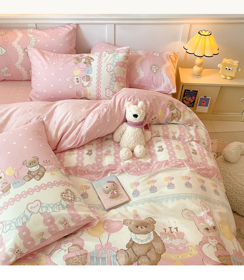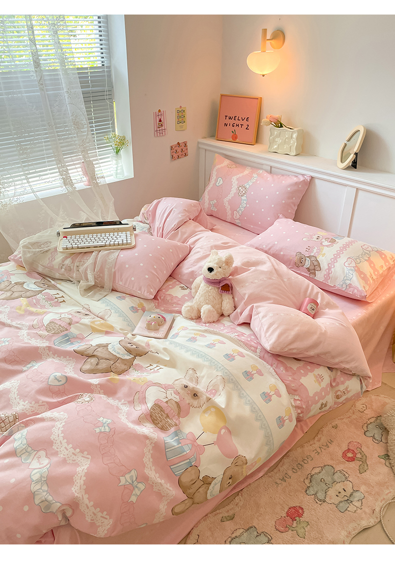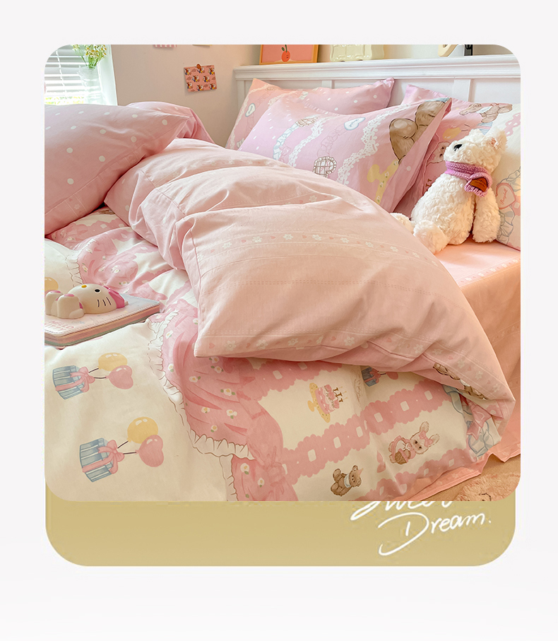 2024新款全棉舒适印花四件套 气球蛋糕熊