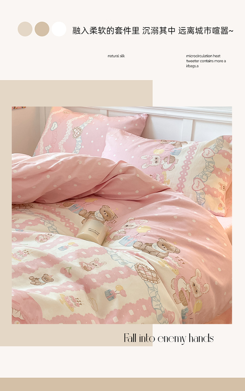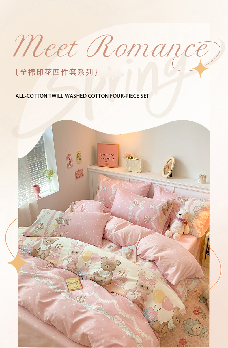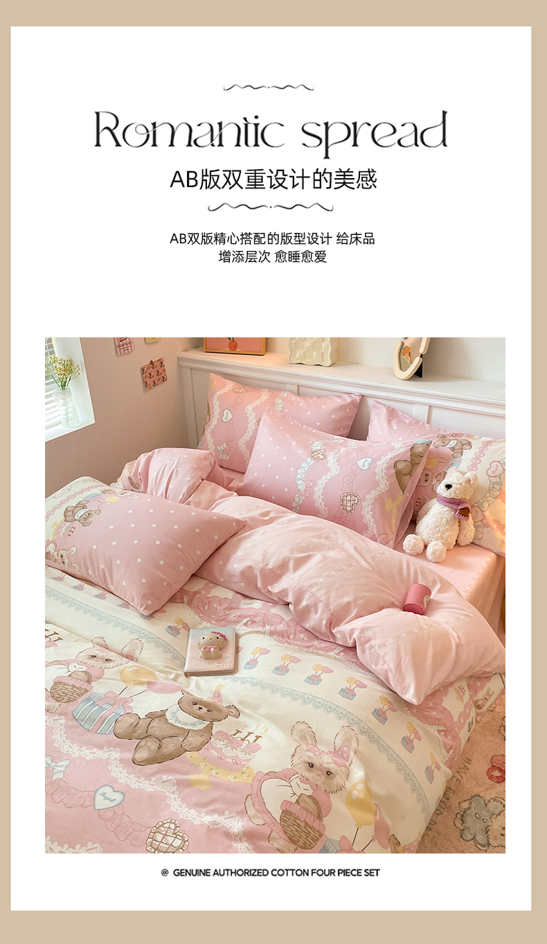 2024新款全棉舒适印花四件套 气球蛋糕熊