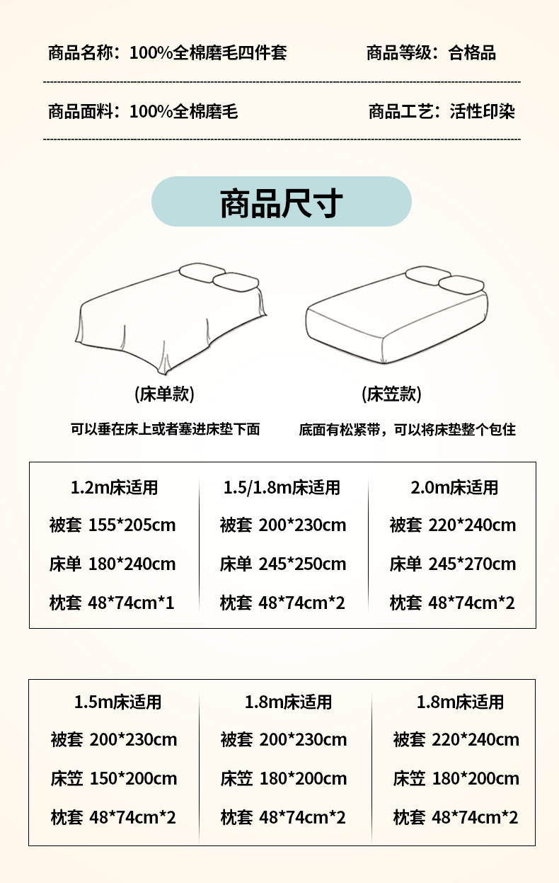1.8m床单款四件套 | ¥120.00 |