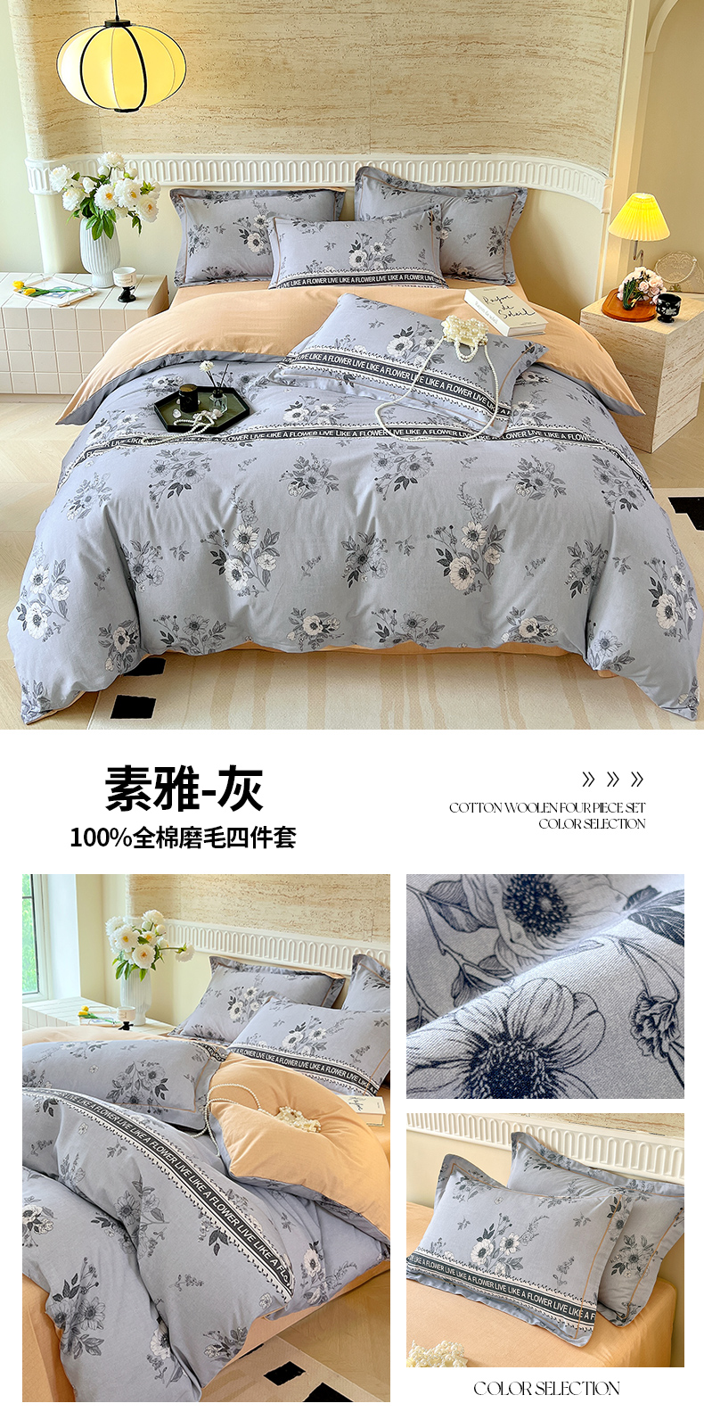 当前位置: 91家纺网 > 商品网购 > 床品套件 > 四件套 > 全棉普通四件套 > 梧桐树 100%全棉磨毛四件套 2025秋冬新款【优雅系列】 艾莎灰