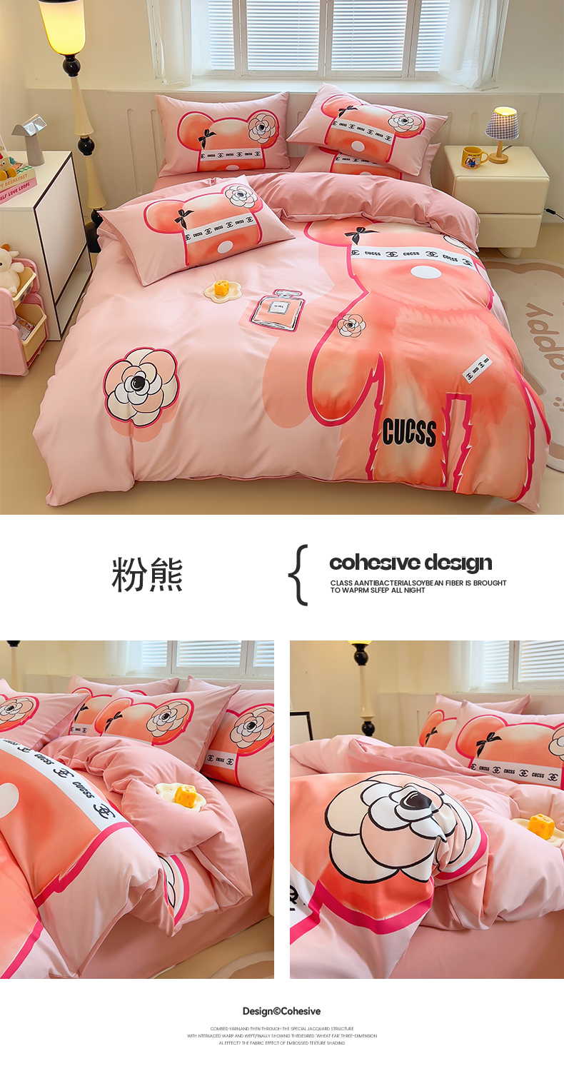当前位置: 91家纺网 > 商品网购 > 床品套件 > 四件套 > 普通磨毛四件套 > 色鬼 2024新款大牌风擦边磨毛四件套网红直播爆款大版印花四件套 粉熊