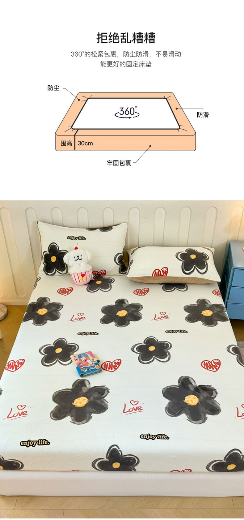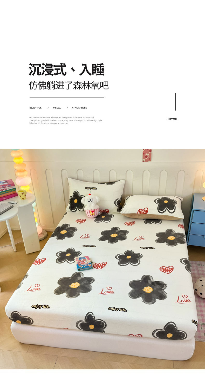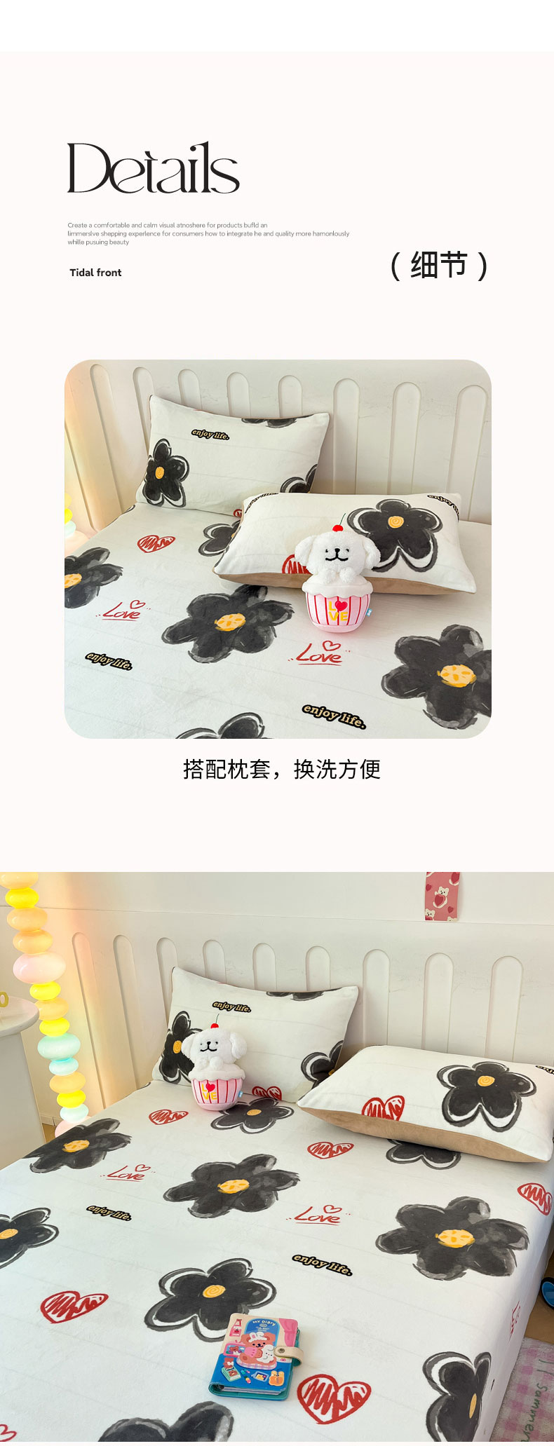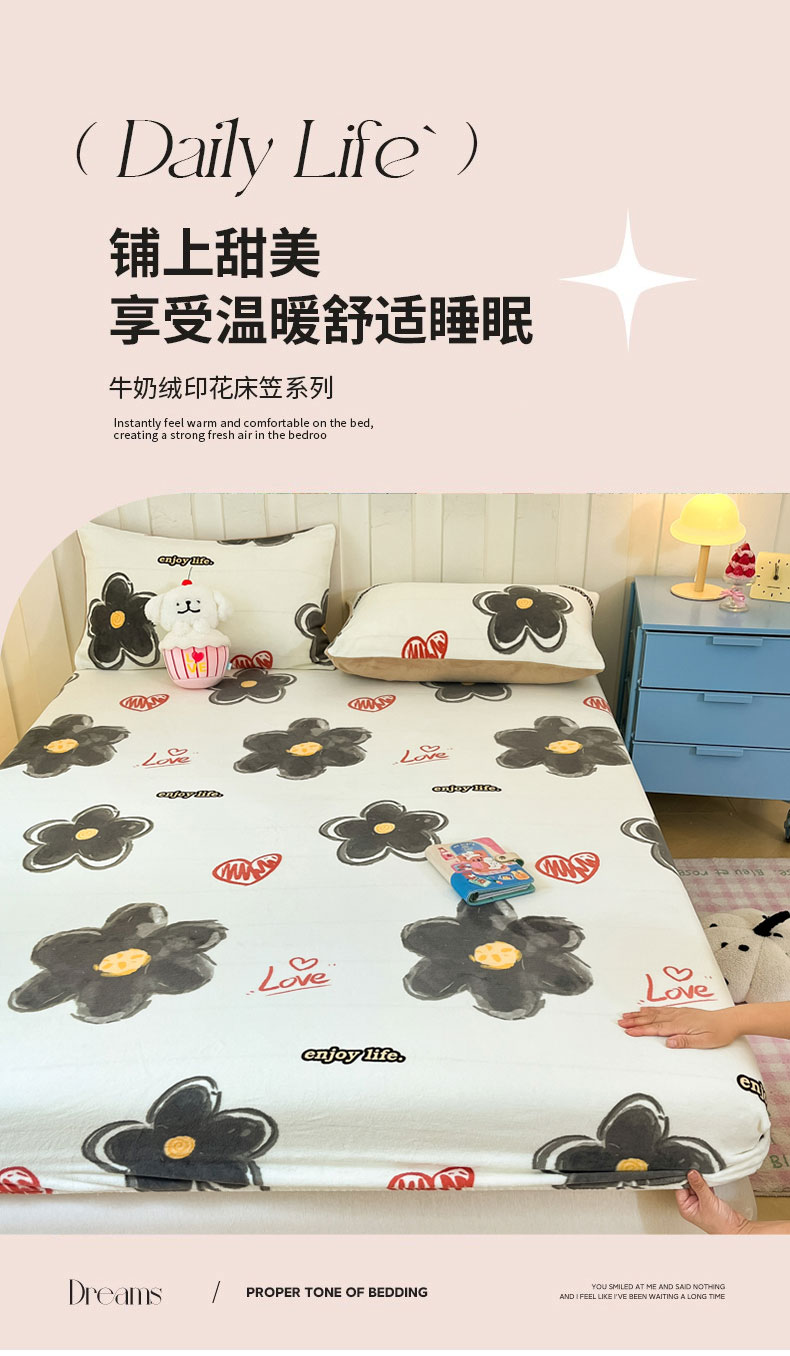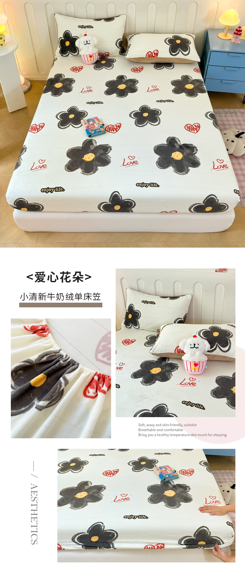 星座家纺 2025新款小清新牛奶绒单床笠 爱心花朵