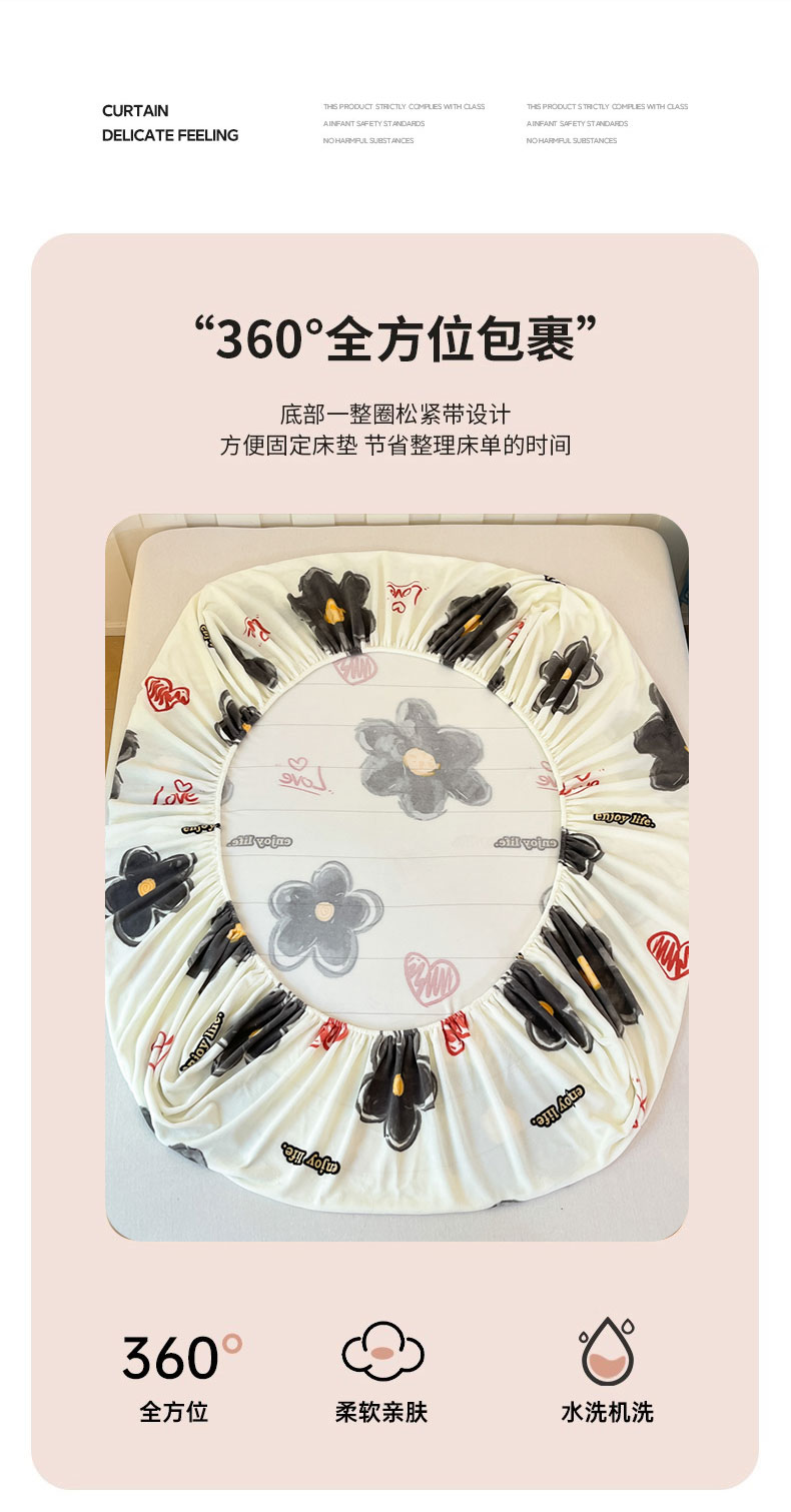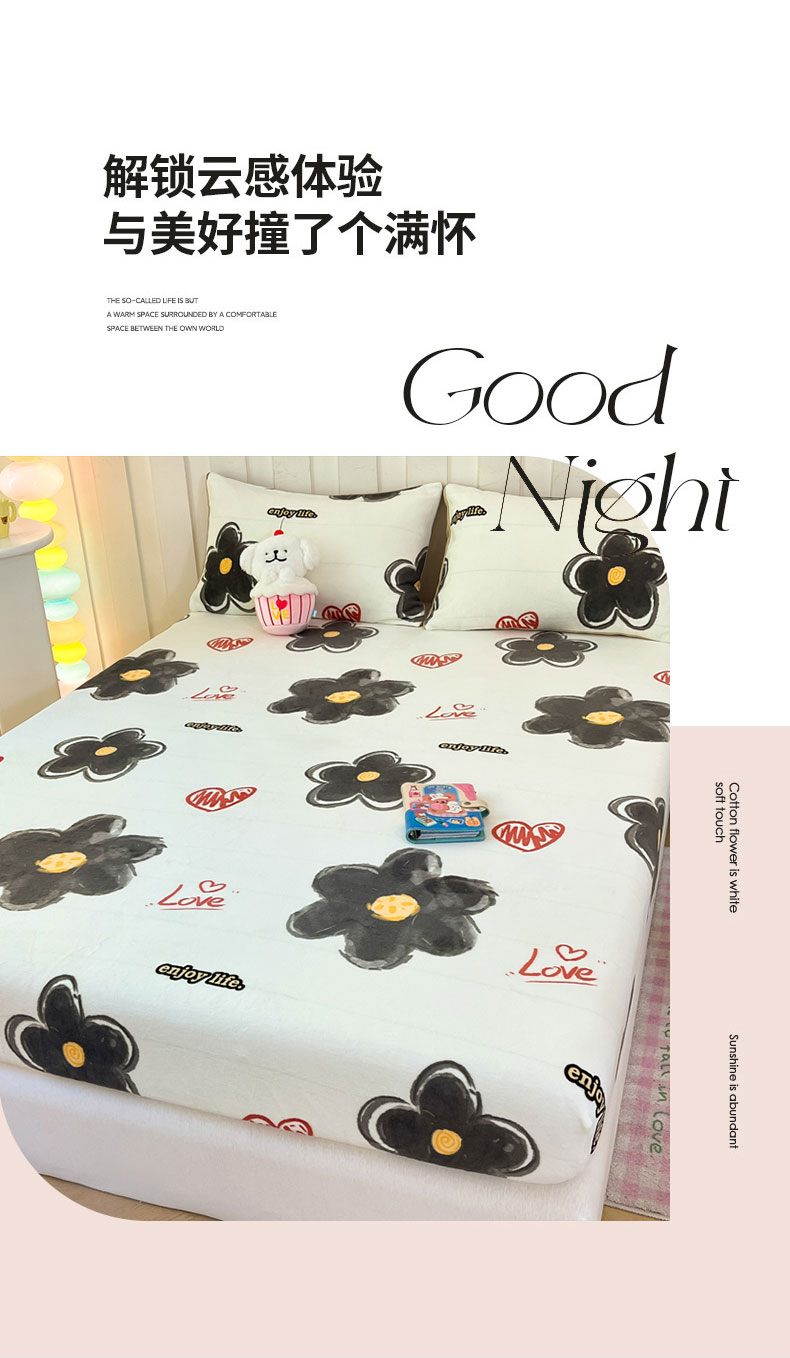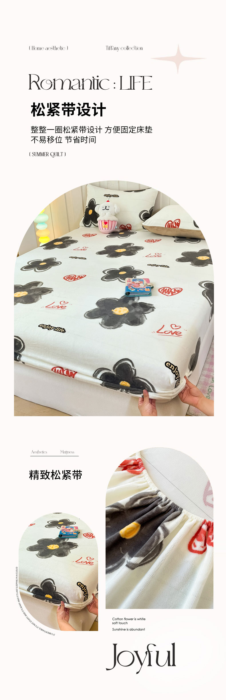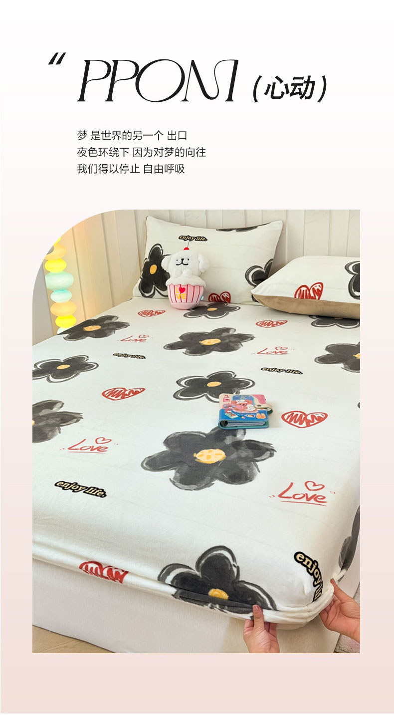 商品名称:星座家纺 2025新款小清新牛奶绒单床笠 爱心花朵