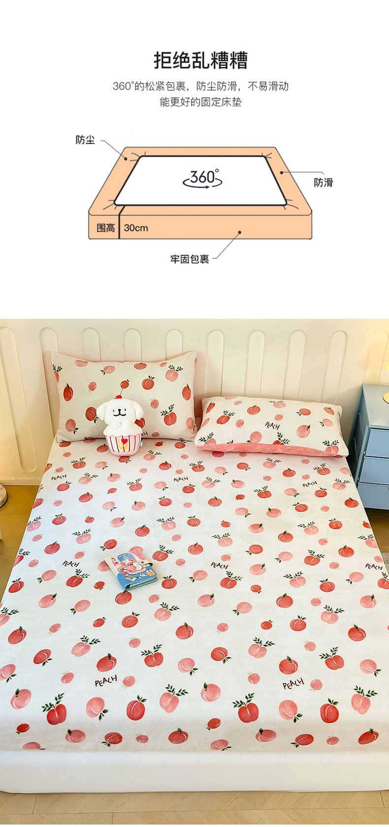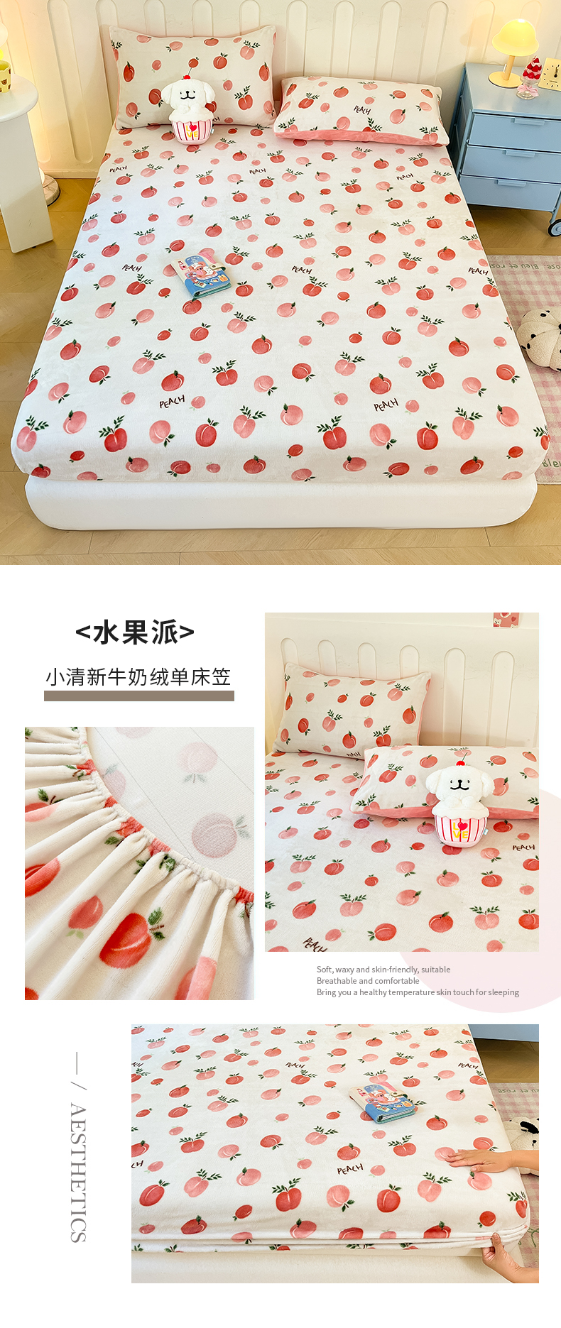 星座家纺 2025新款小清新牛奶绒单床笠 水果派