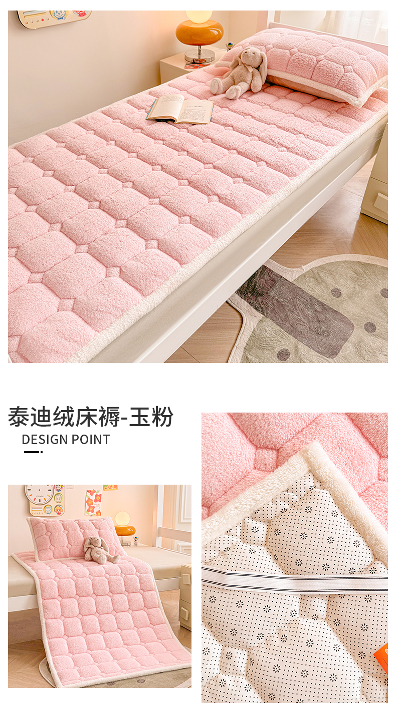 • 91家纺网 家纺一手货源 找家纺 雯豆家纺 2024新品泰迪绒学生床垫宿舍床褥子加厚上下铺北极绒床护垫 泰迪绒床褥-玉粉