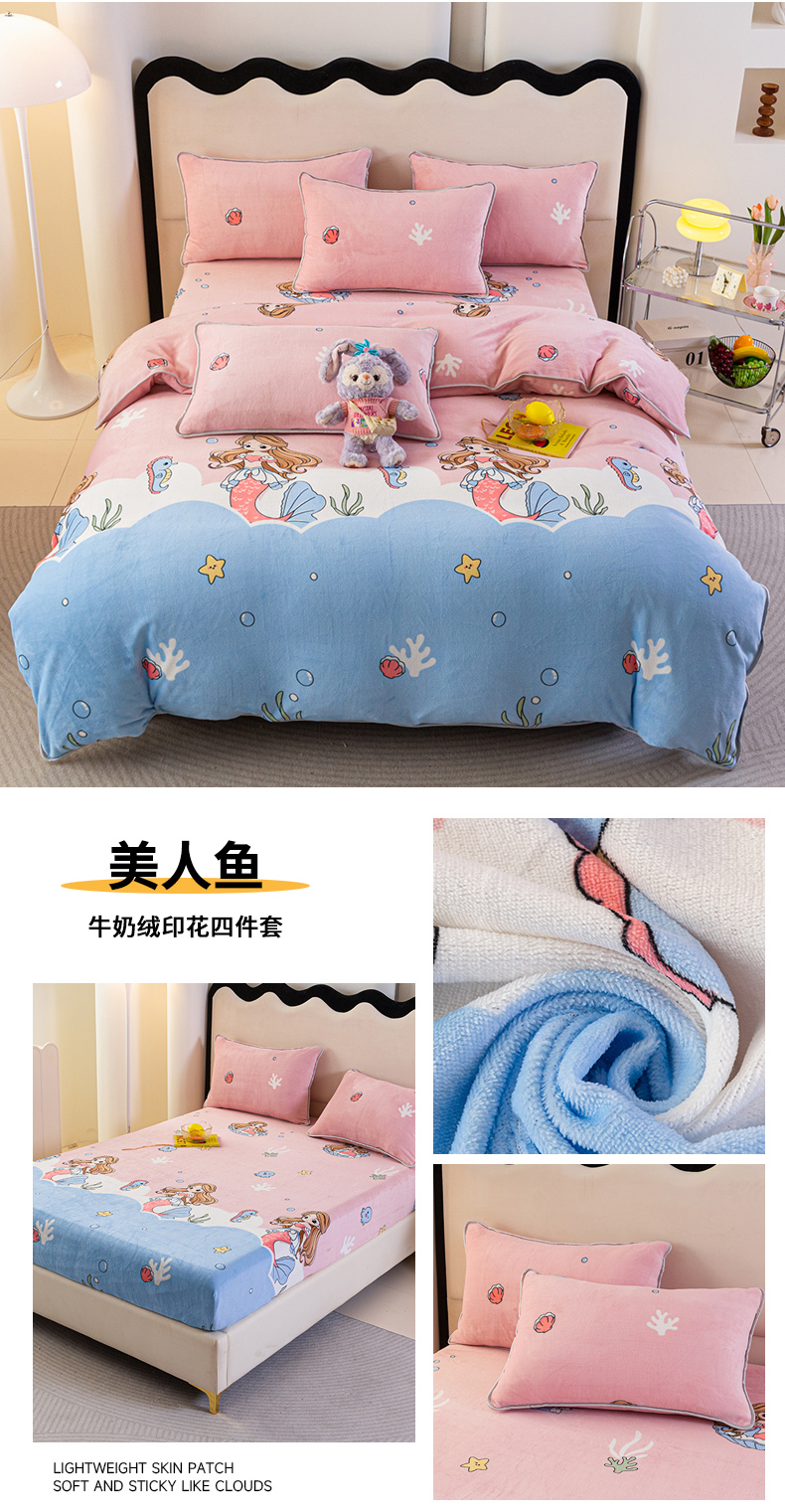欧喜璐 2024年新款 8.5-9.5斤加厚牛奶绒金貂绒法莱绒四件套单被套 海底世界