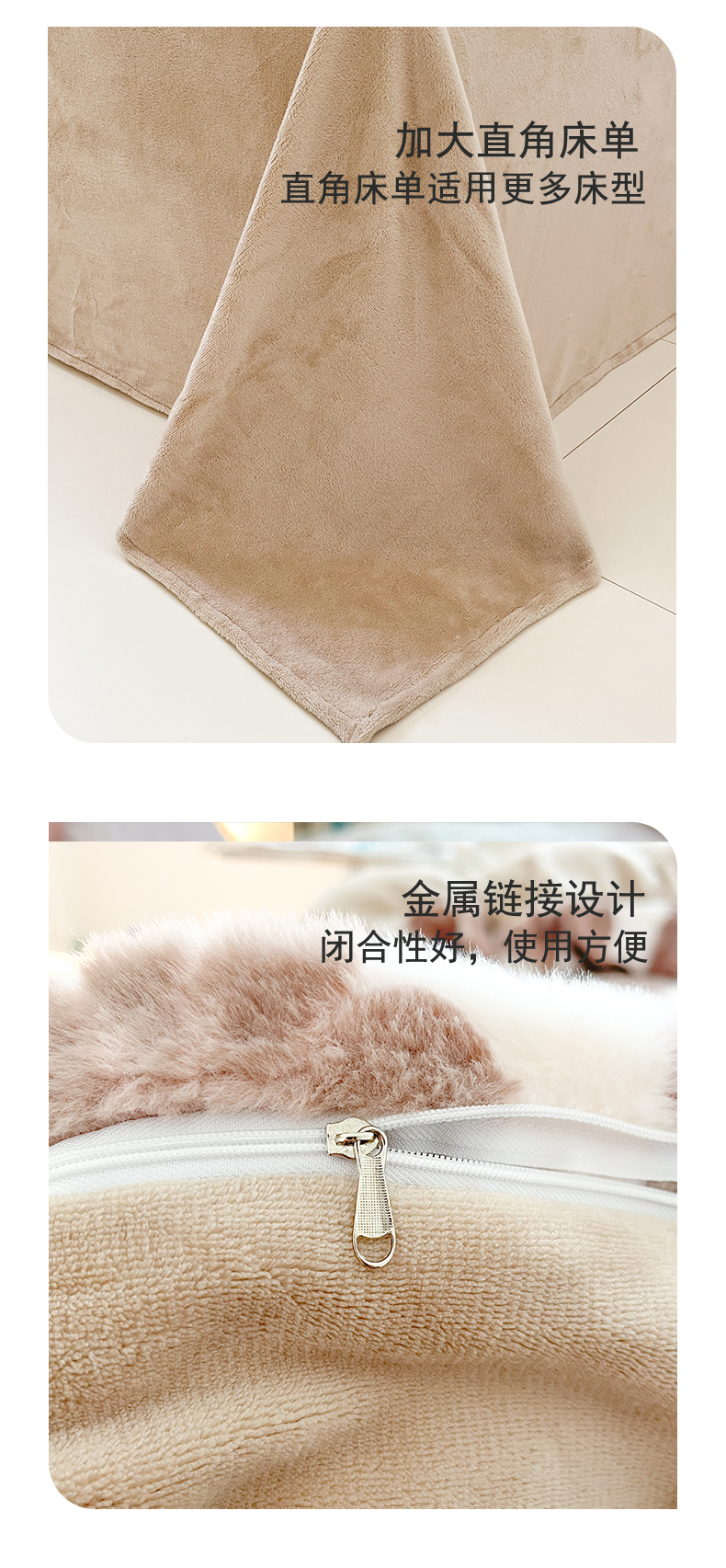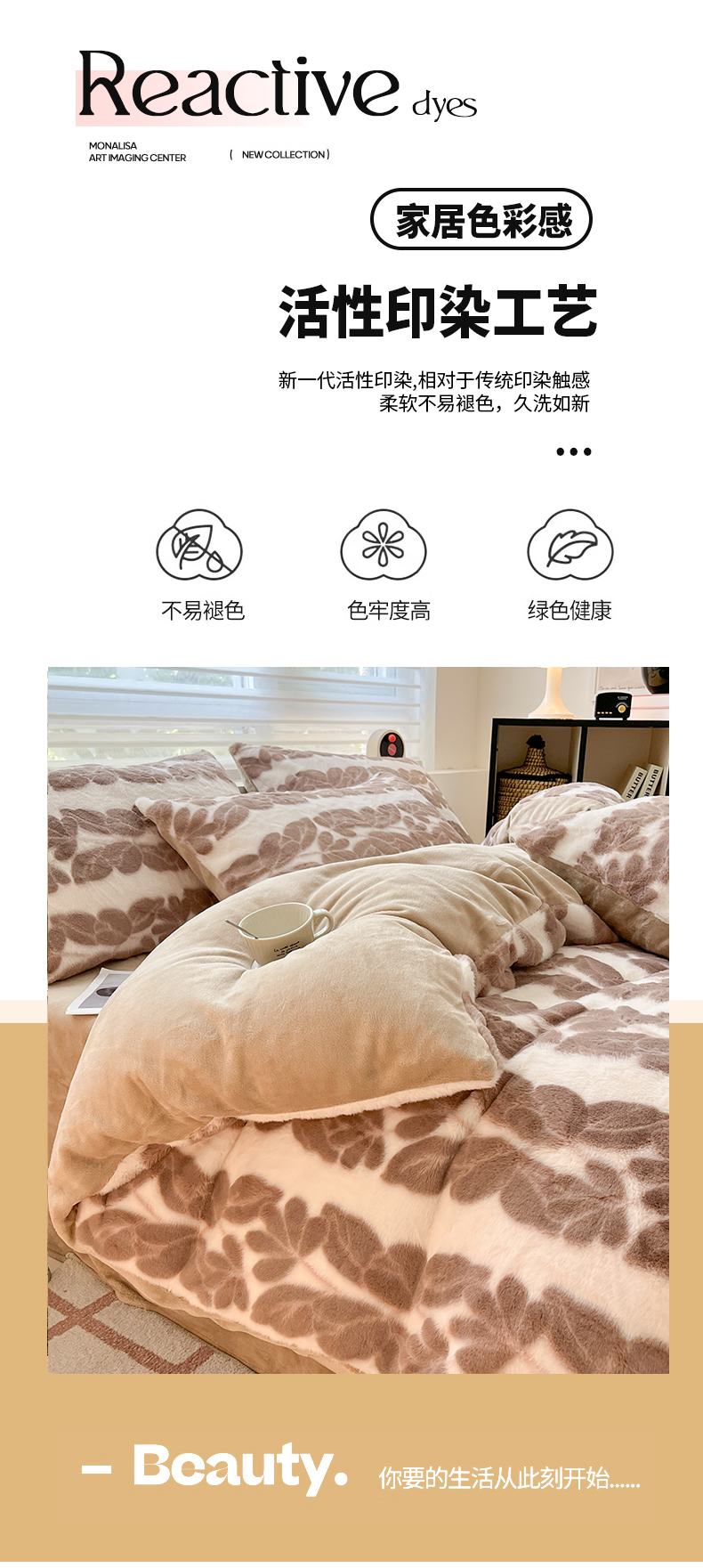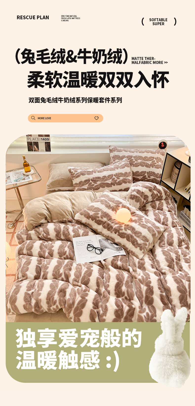 商品名称:金爱家 2024新款全消光牛奶绒A类纯色獭兔毛绒立体雕花牛奶绒四件套 兔毛麦穗咖