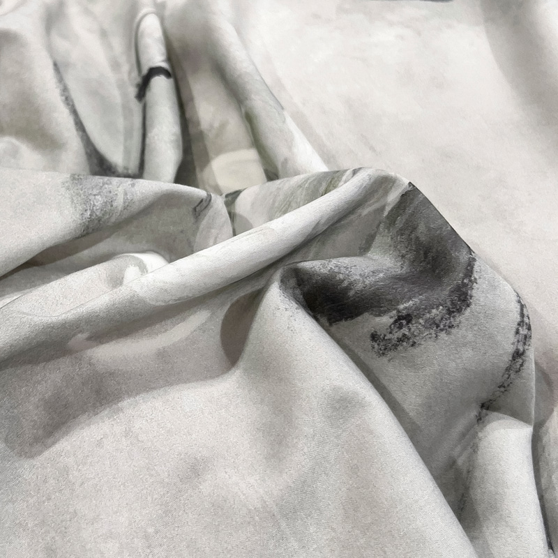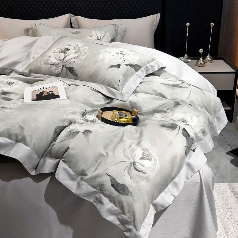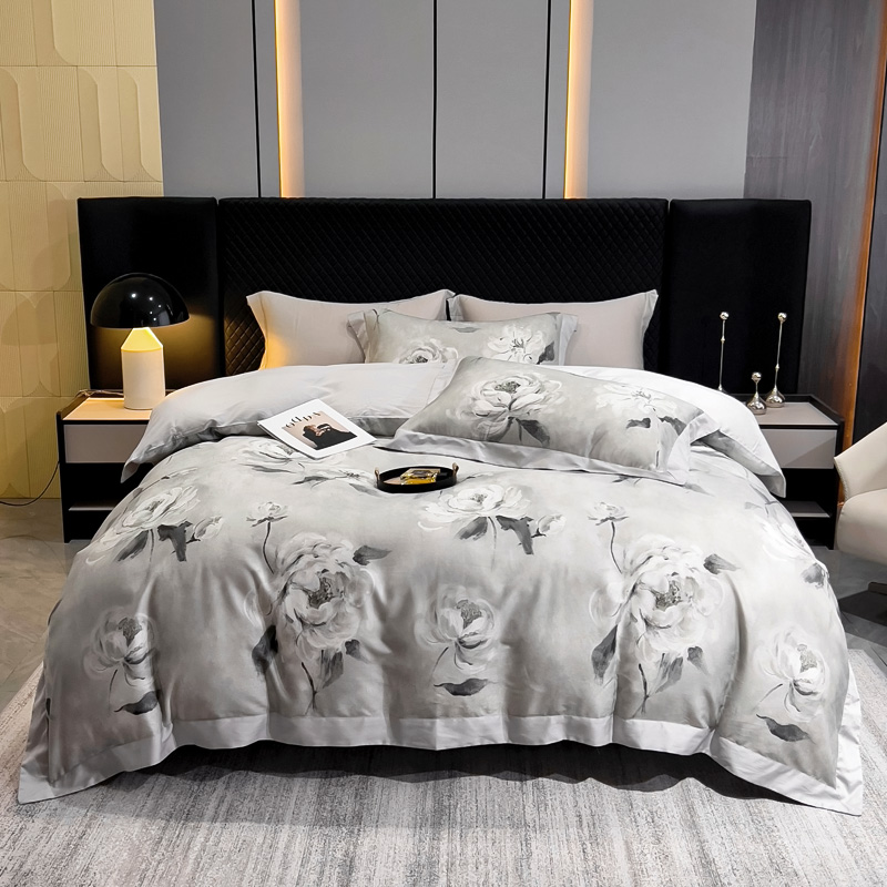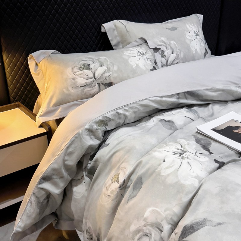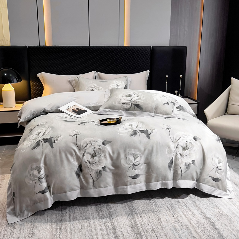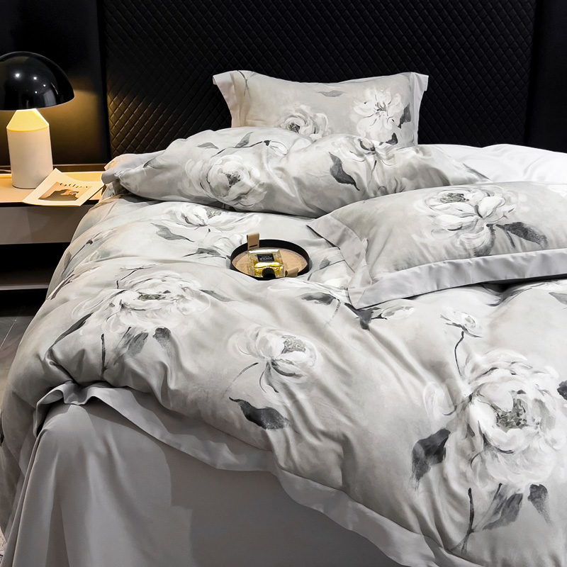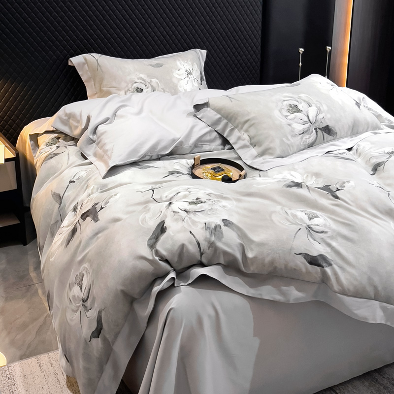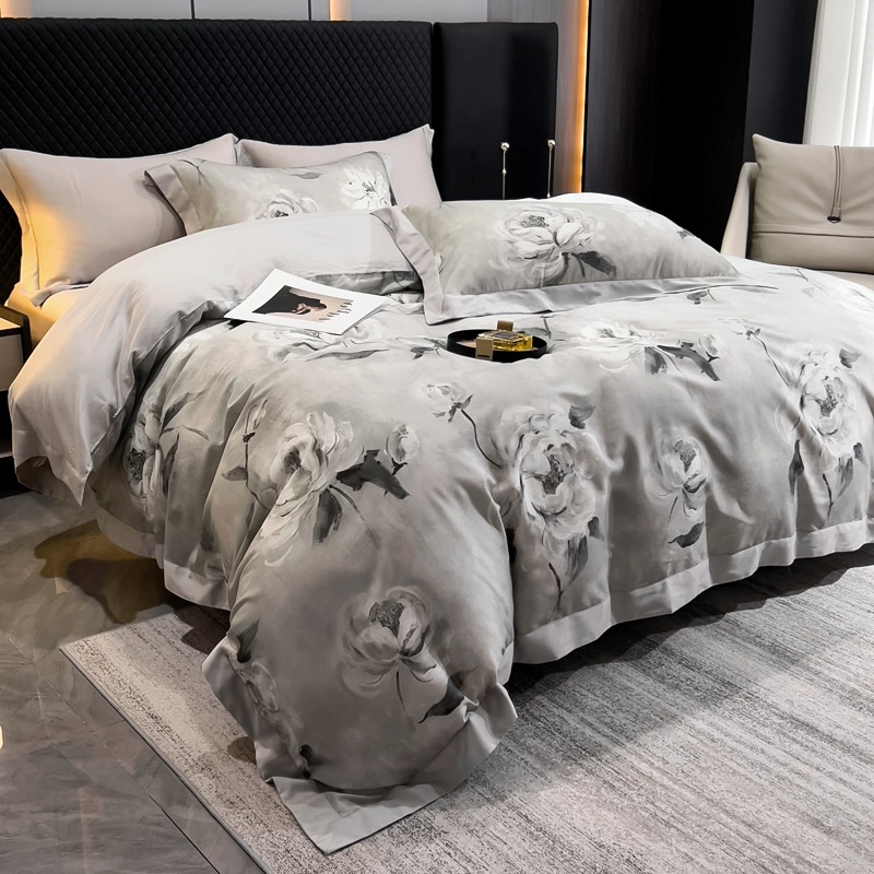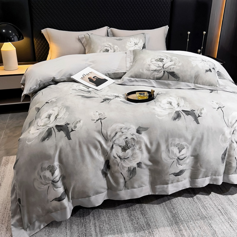 氧家 2024新款数码印花天丝磨毛艾阳绒四件套 瑶芳灰