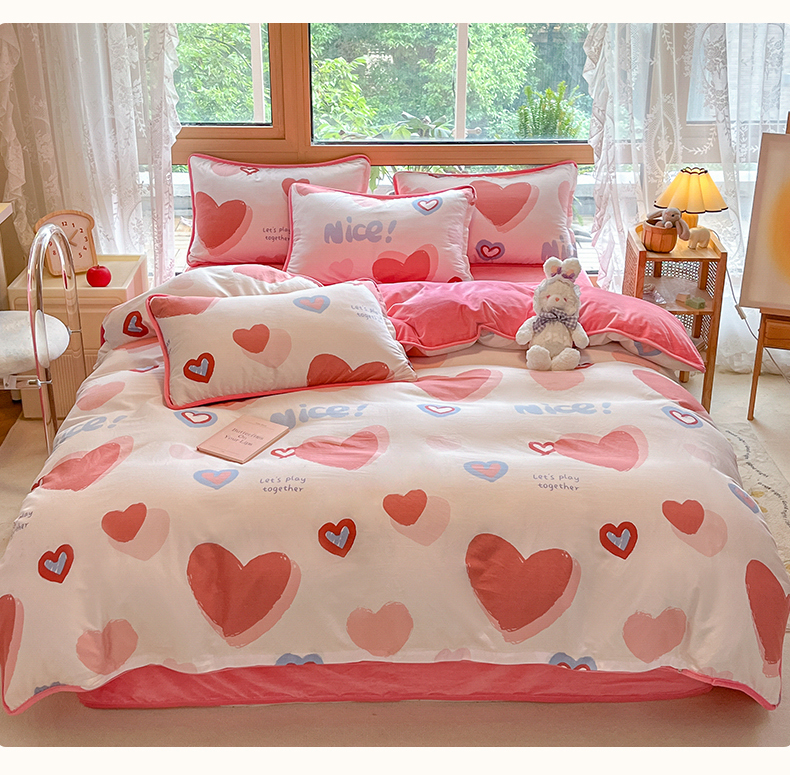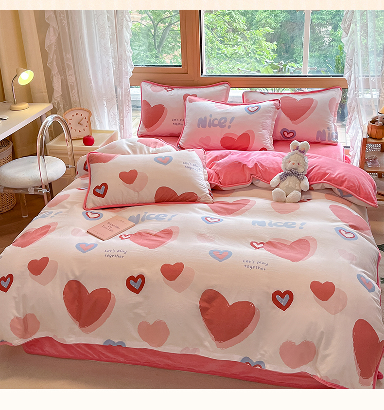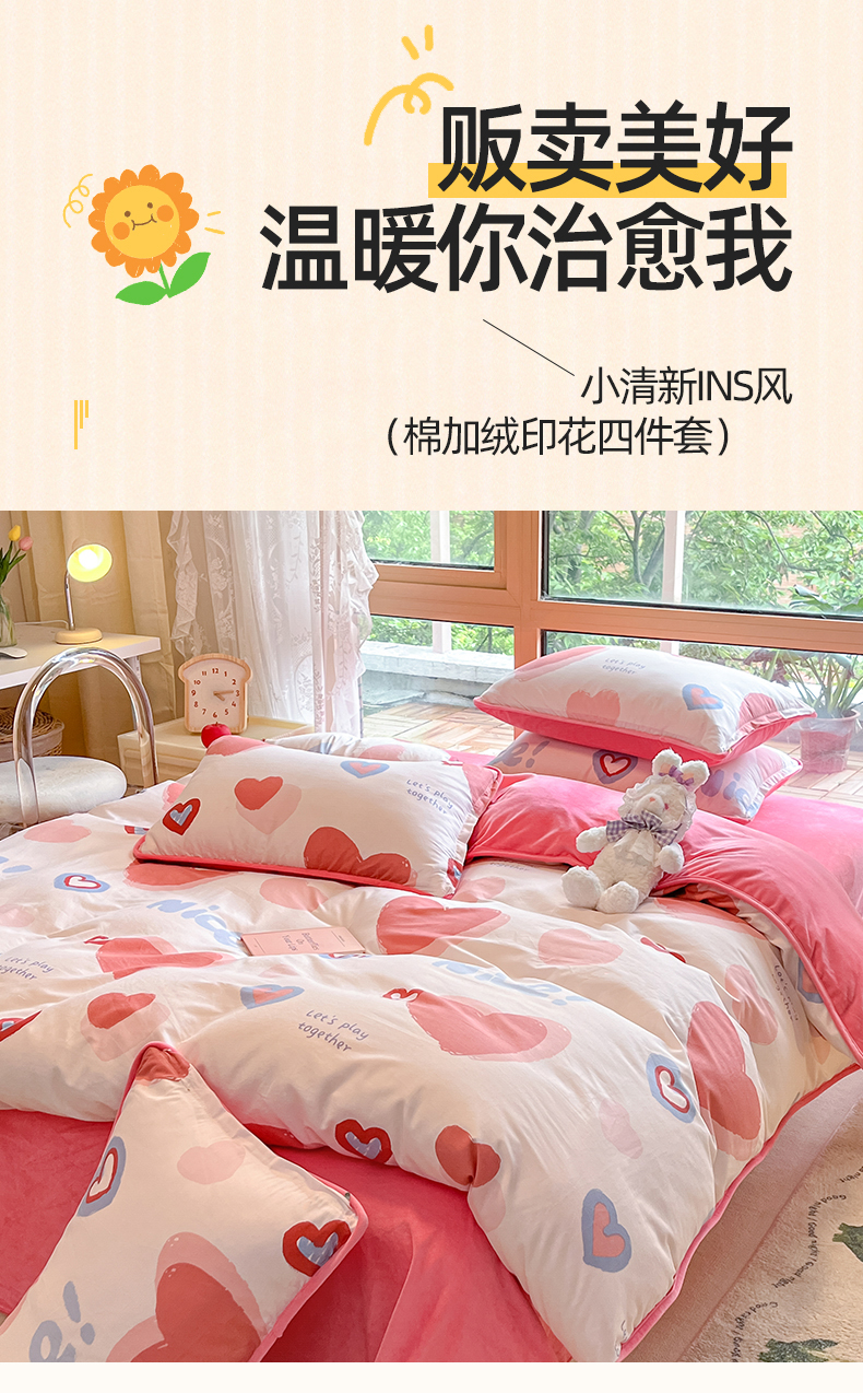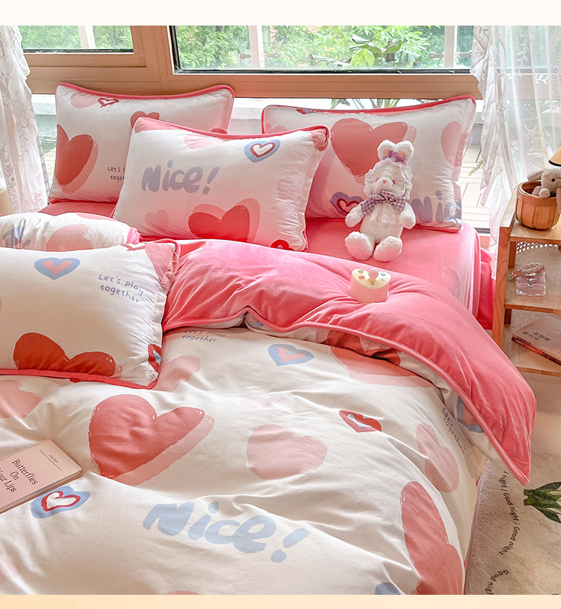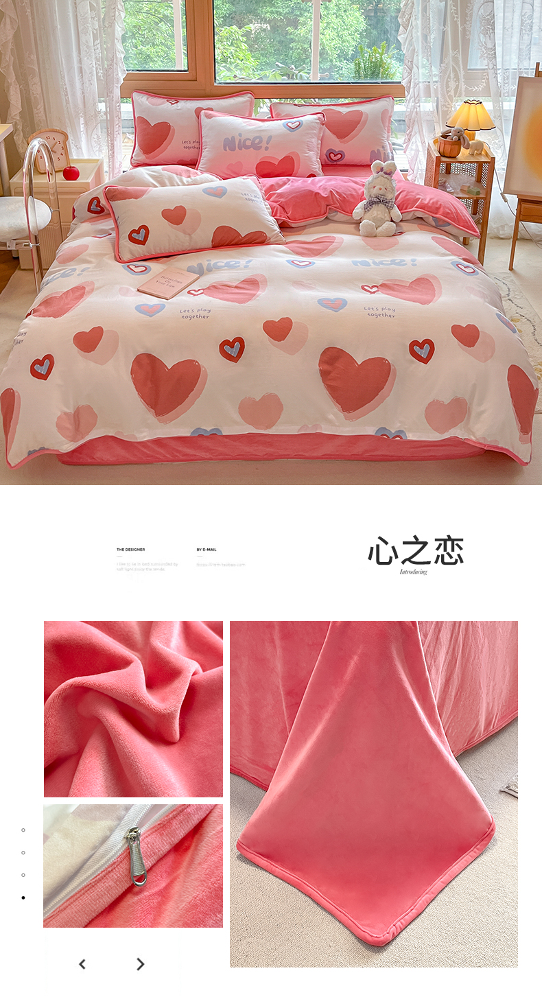 当前位置: 91家纺网 > 商品网购 > 床品套件 > 四件套 > 牛奶绒四件套 > 红粉佳人 2025新款棉加绒印花四件套 心之恋