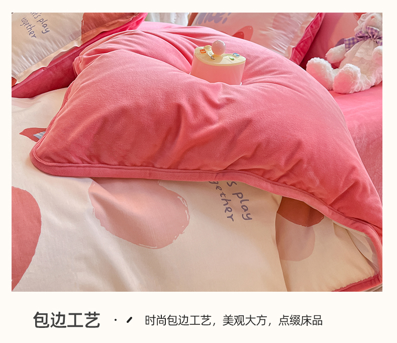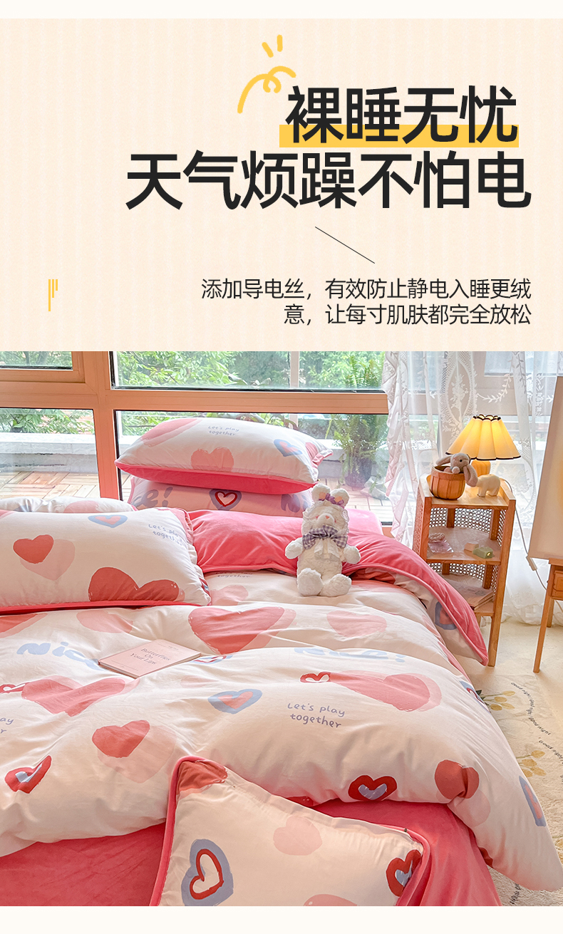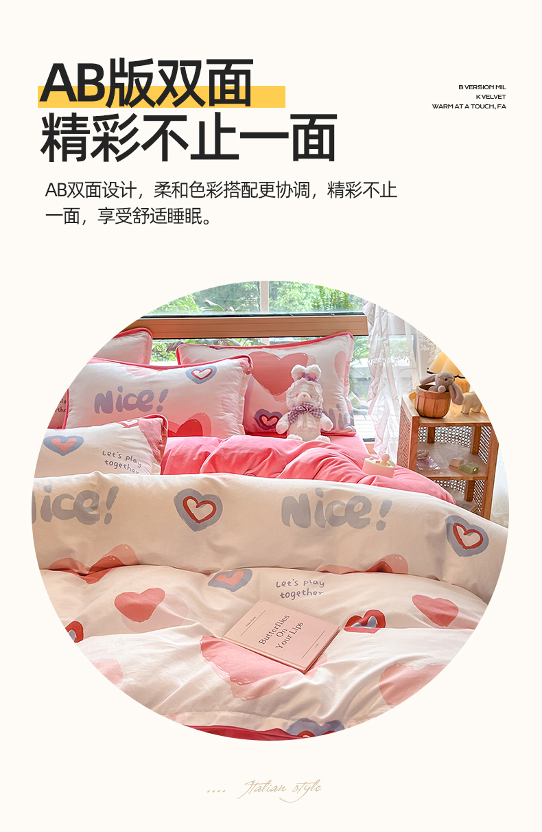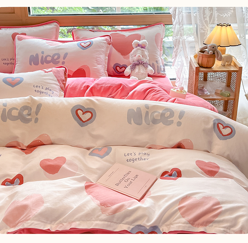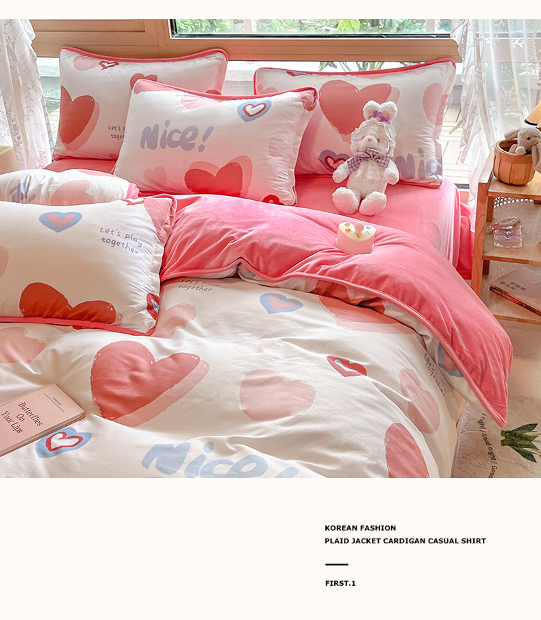当前位置: 91家纺网 > 商品网购 > 床品套件 > 四件套 > 牛奶绒四件套 > 红粉佳人 2025新款棉加绒印花四件套 心之恋
