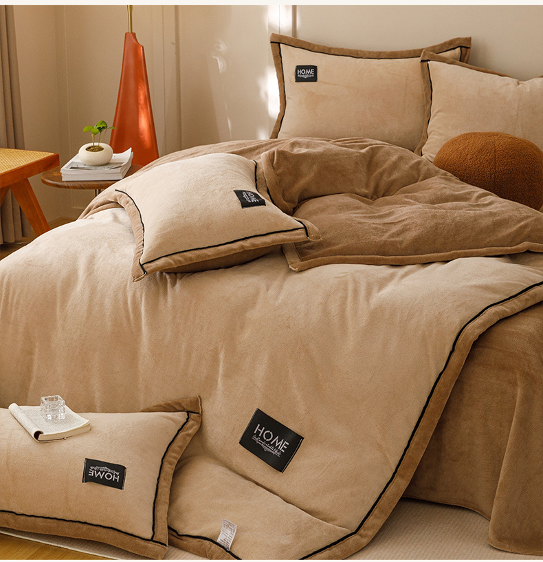 当前位置: 91家纺网 > 商品网购 > 床品套件 > 四件套 > 牛奶绒四件套 > 蜜柚 2024新款纯色简约双拼高克重牛奶绒包边四件套 莫迪绿+高级灰