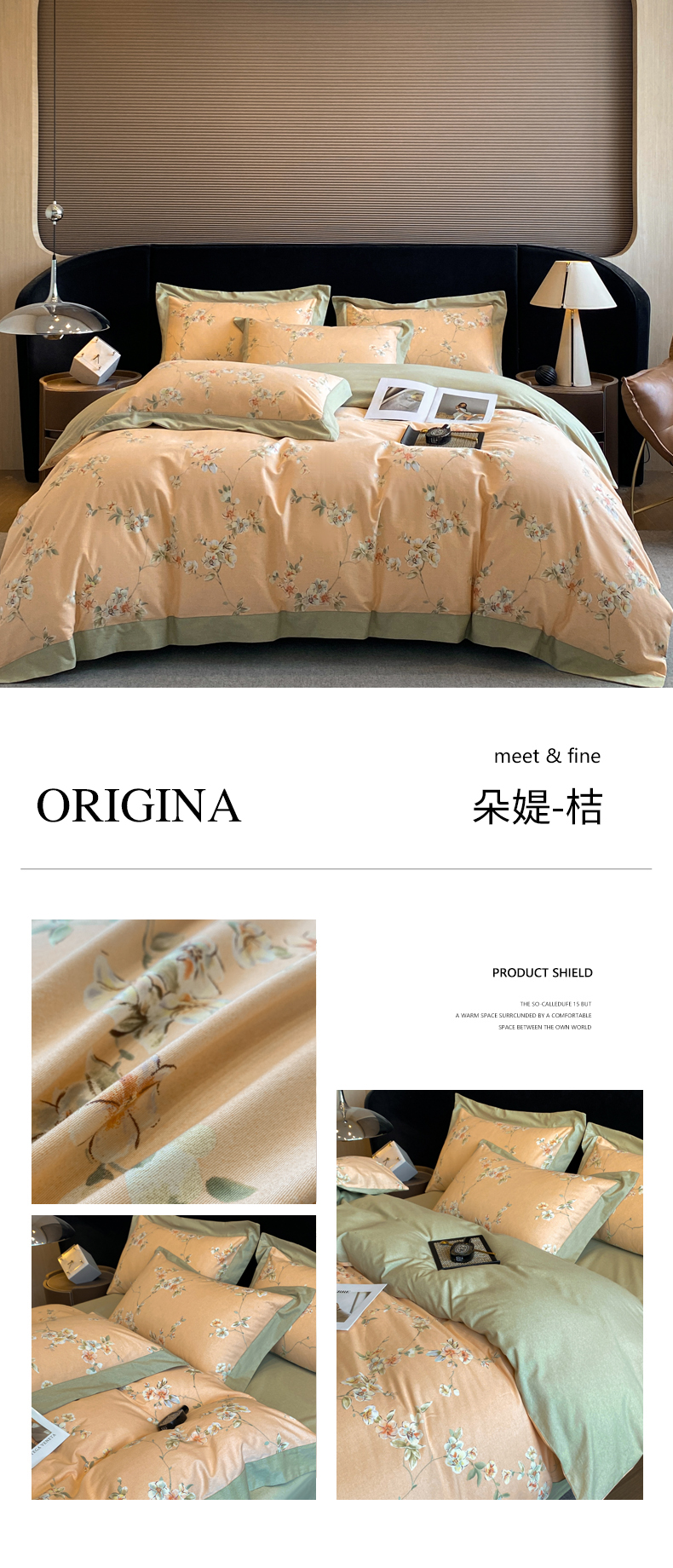 梵克保罗 2024新款全棉贡缎磨毛数码印花高级简奢款四件套 朵媞-桔
