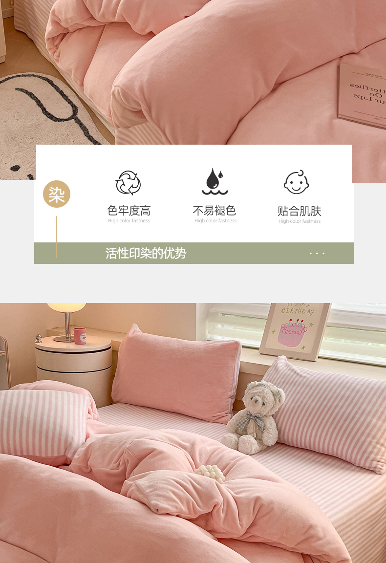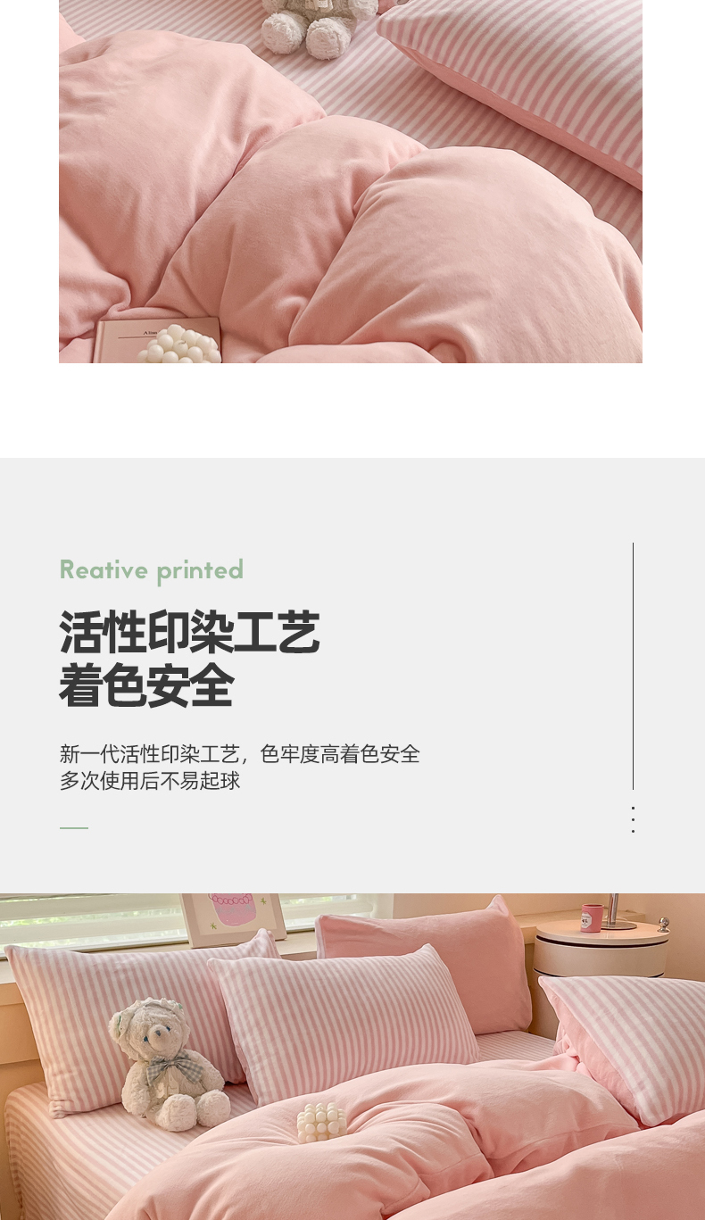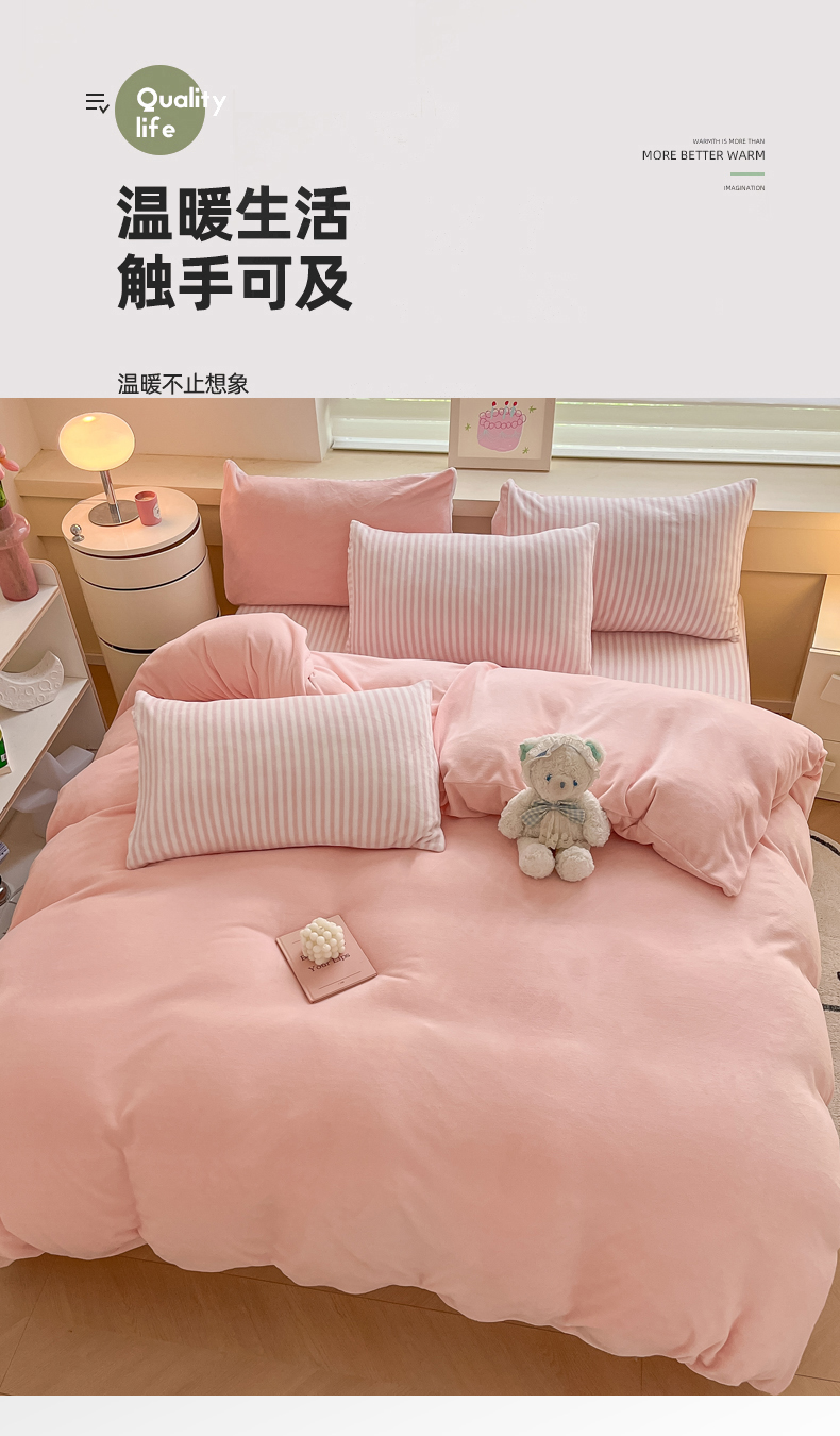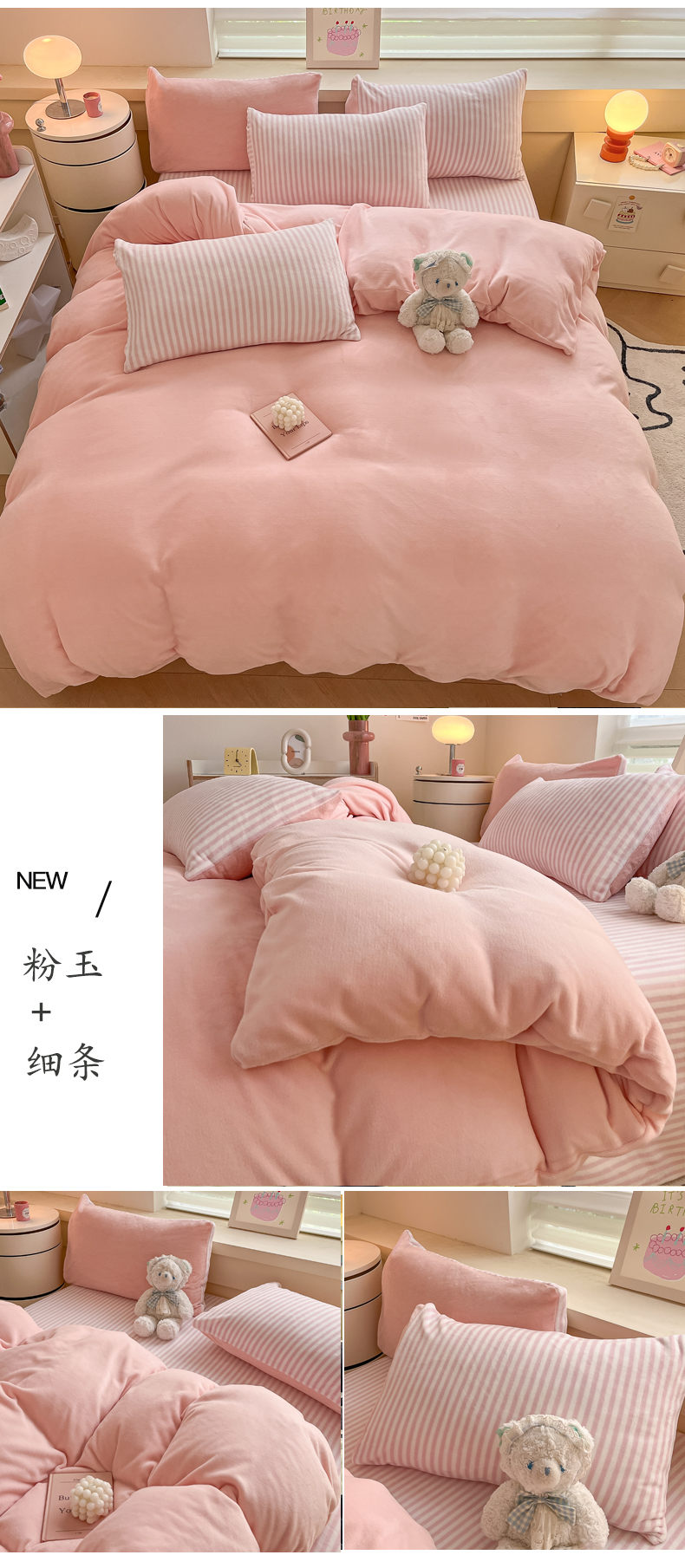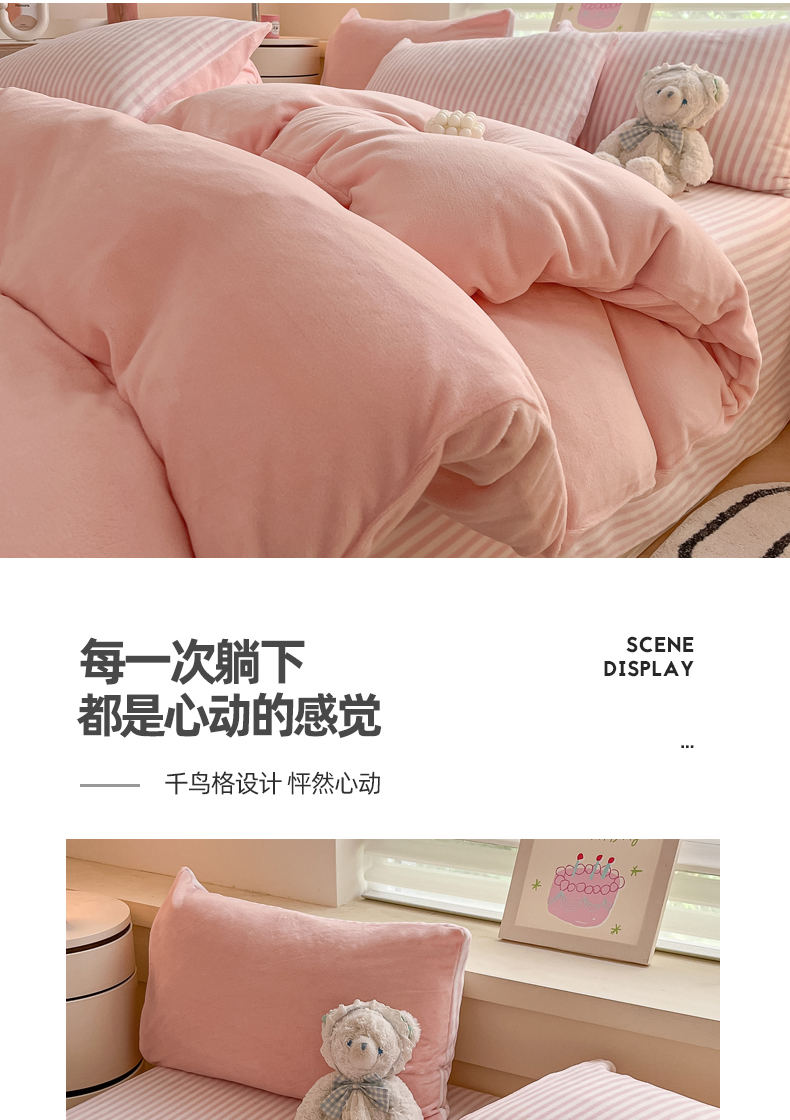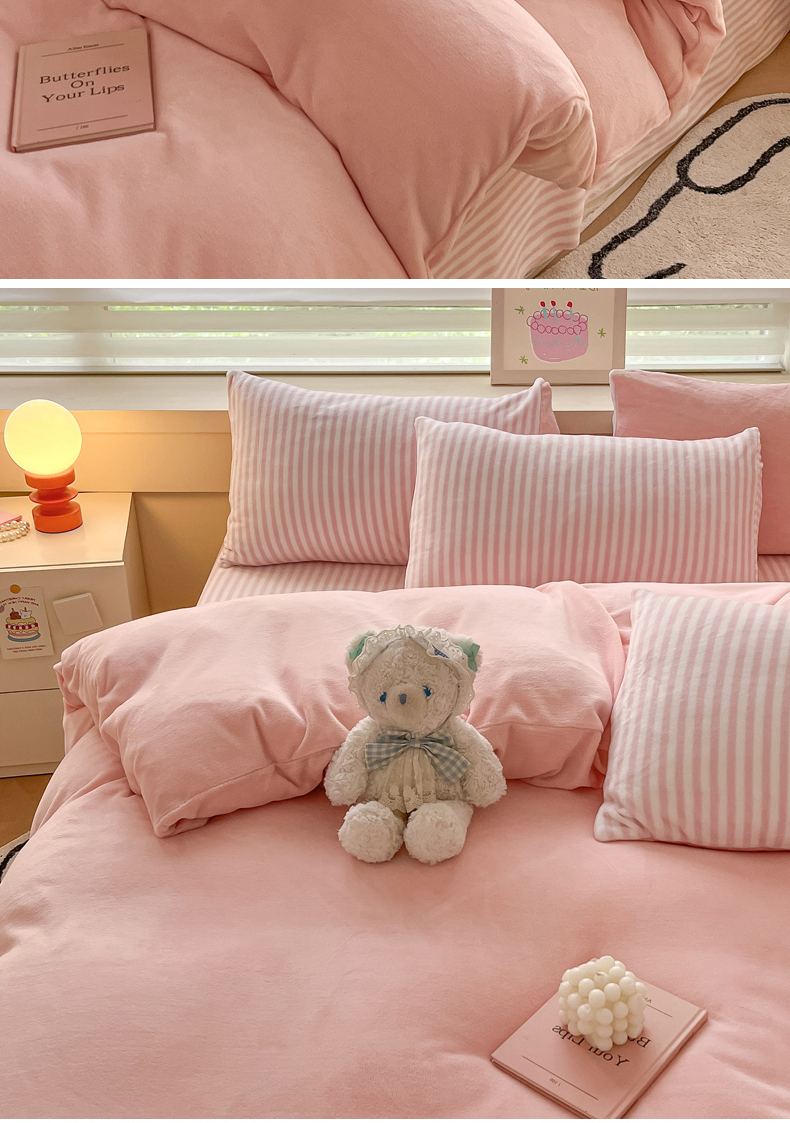 当前位置: 91家纺网 > 商品网购 > 床品套件 > 四件套 > 牛奶绒四件套 > 三朵家纺 2024新款加厚保暖牛奶绒混搭系列四件套 粉玉+细条