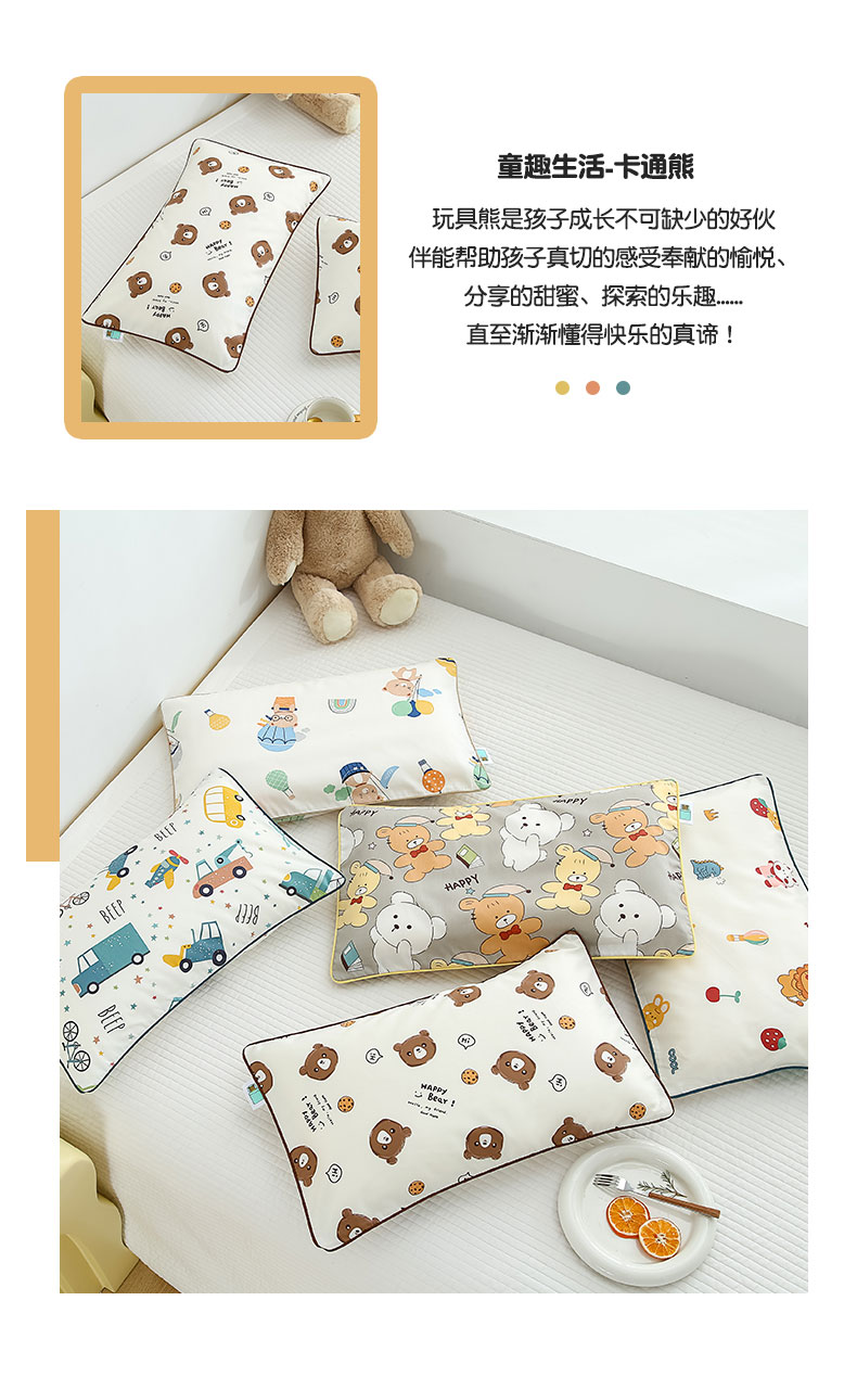 (总)良佐生活 2023新款A类60支全棉贡缎乳胶枕枕套儿童橡胶枕头套高低,口袋熊,恐龙宝宝,开心熊 粉,冰淇淋,恐龙乐园,花仙兔,贝塔 粉,挖掘车