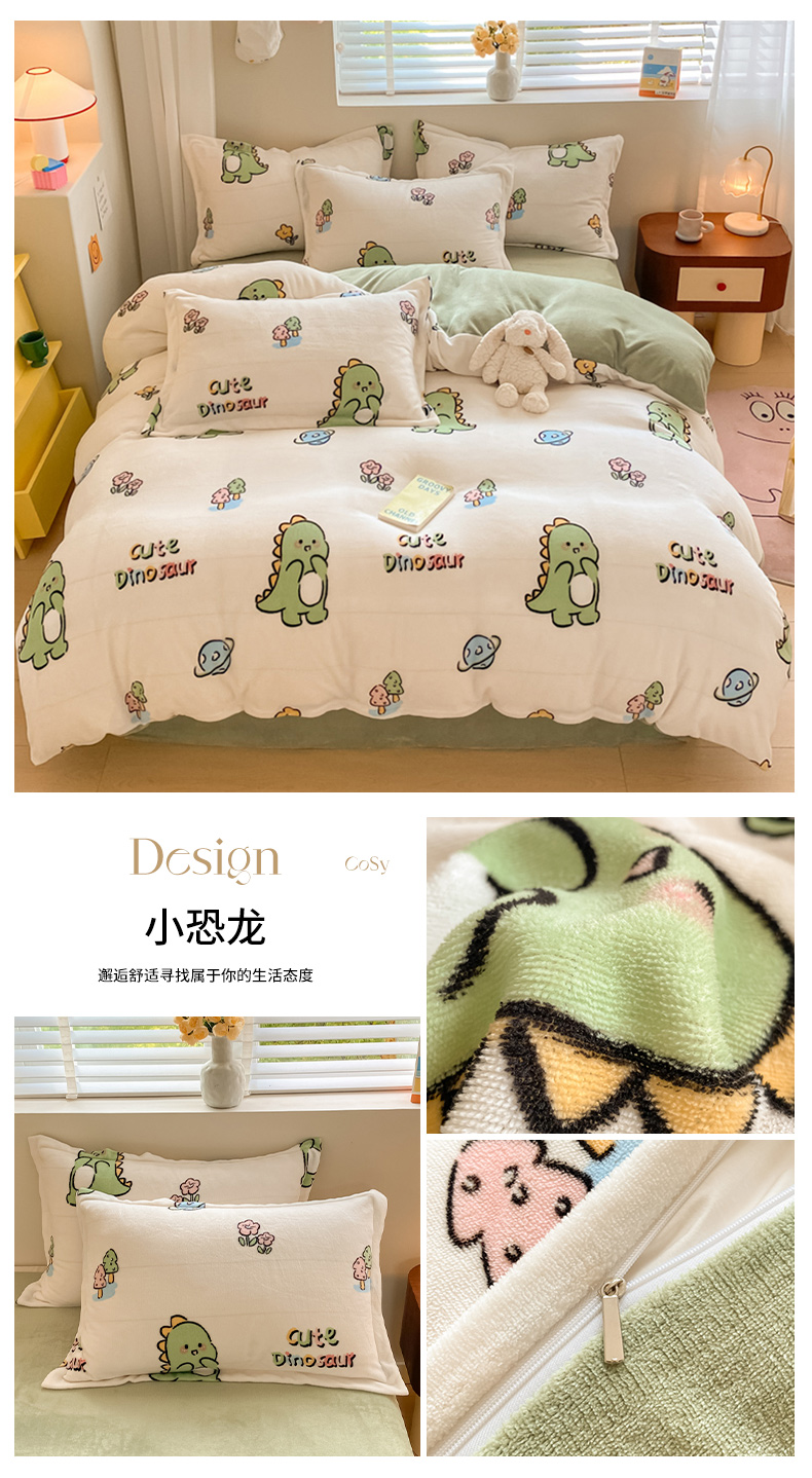当前位置: 91家纺网 > 商品网购 > 床品套件 > 四件套 > 牛奶绒四件套 > 梦之岛 2024新款高克重小清新印花牛奶绒保暖四件套 小恐龙