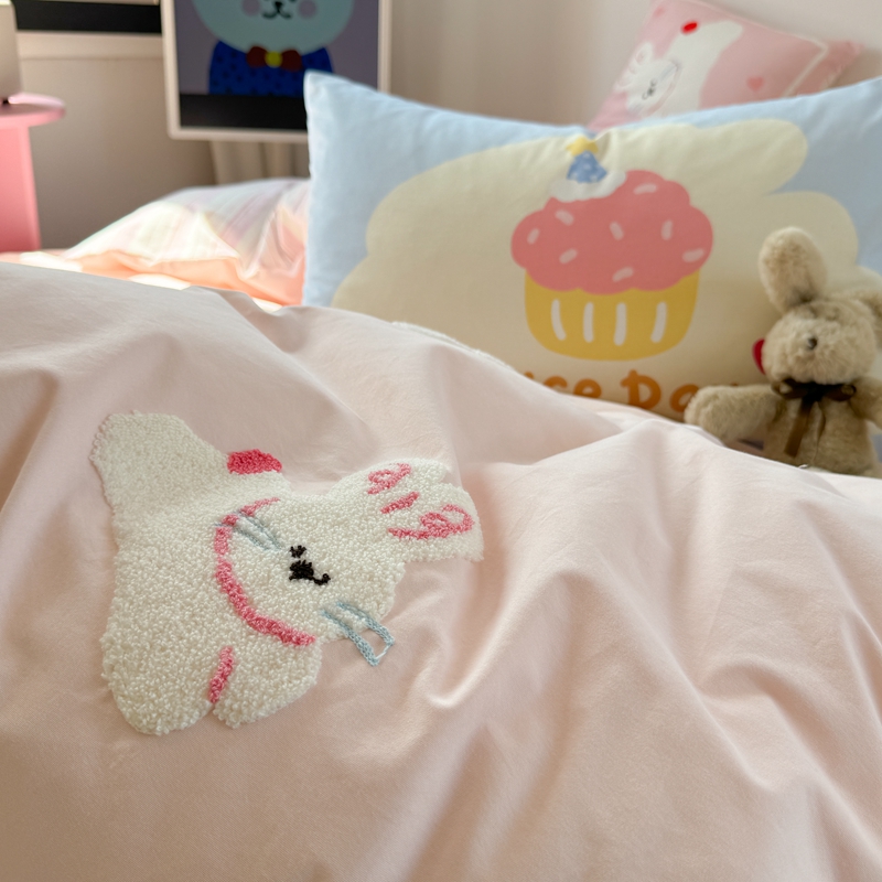 (总)柚子YOUTH 2025新款全棉纯棉工艺款13070贴布绣四件套,爱心小象,毛绒小狗,蘑菇女孩,星星法师