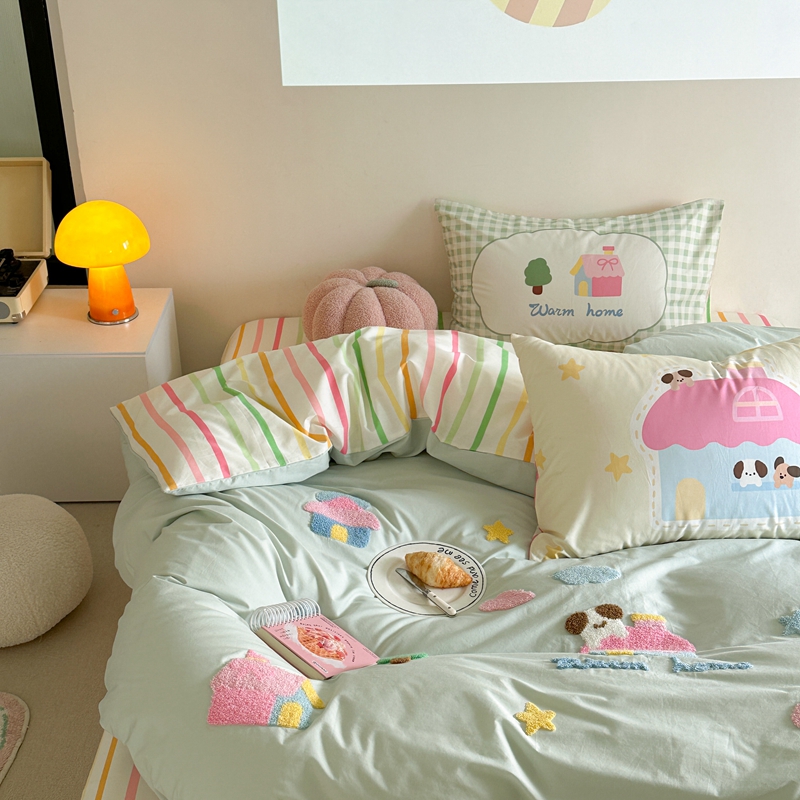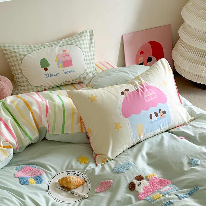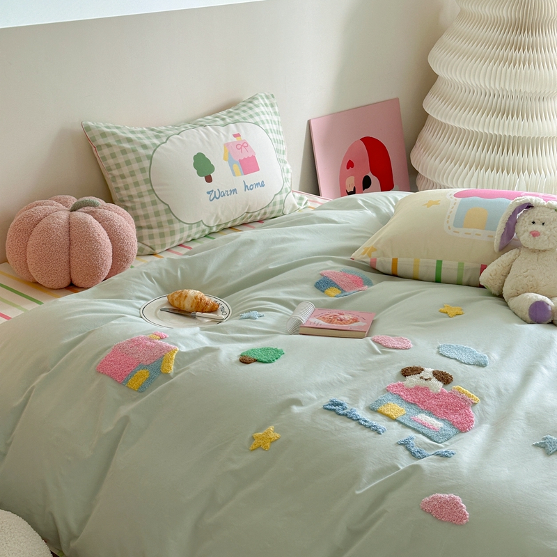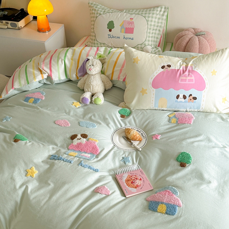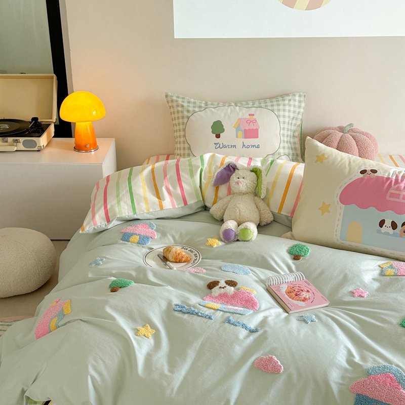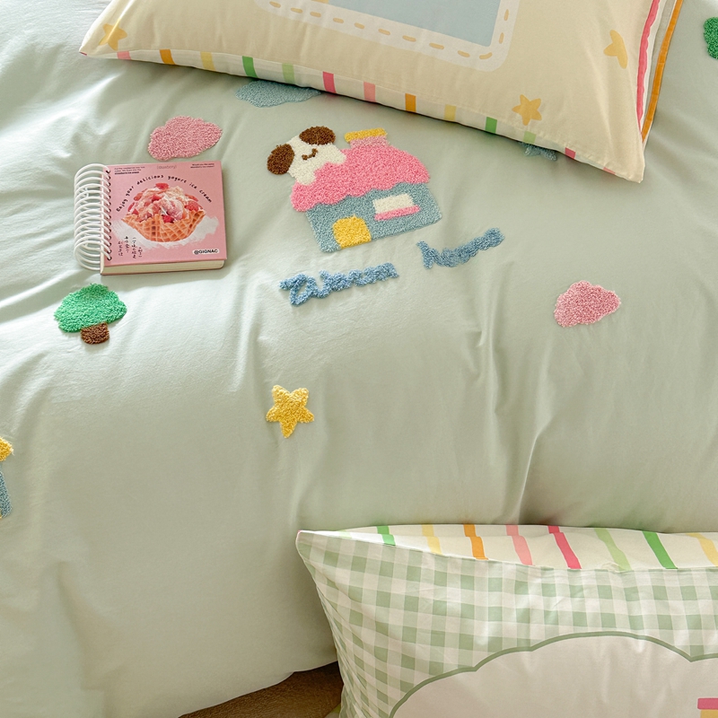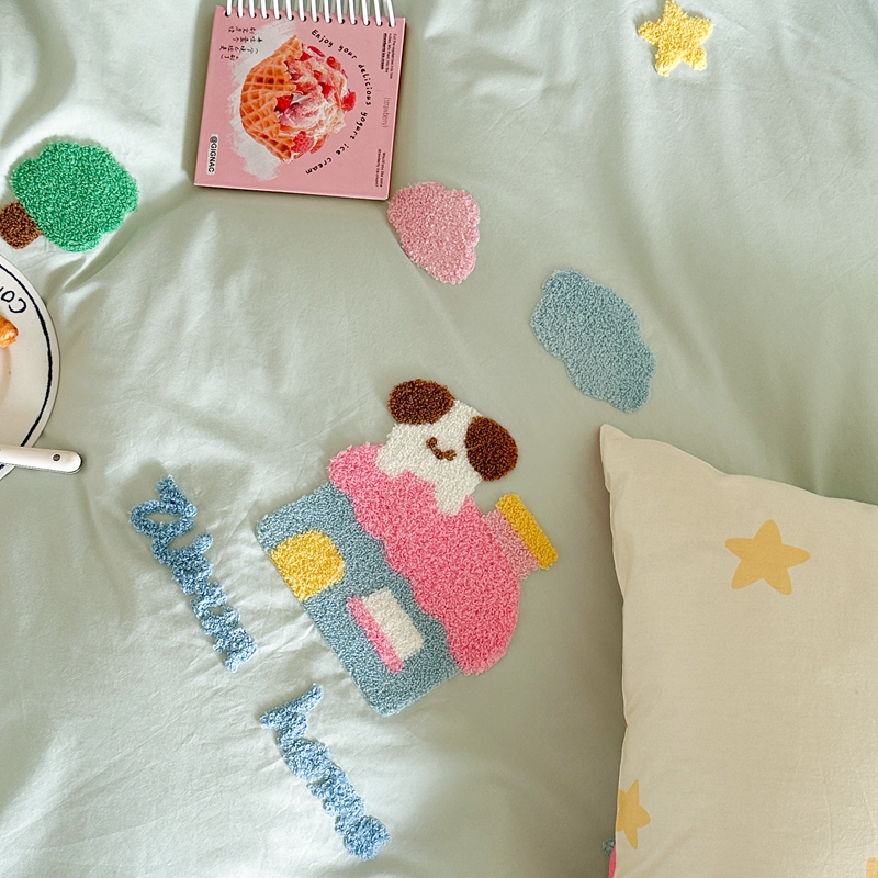 (总)柚子YOUTH 2025新款全棉纯棉工艺款13070贴布绣四件套,爱心小象,毛绒小狗,蘑菇女孩,星星法师