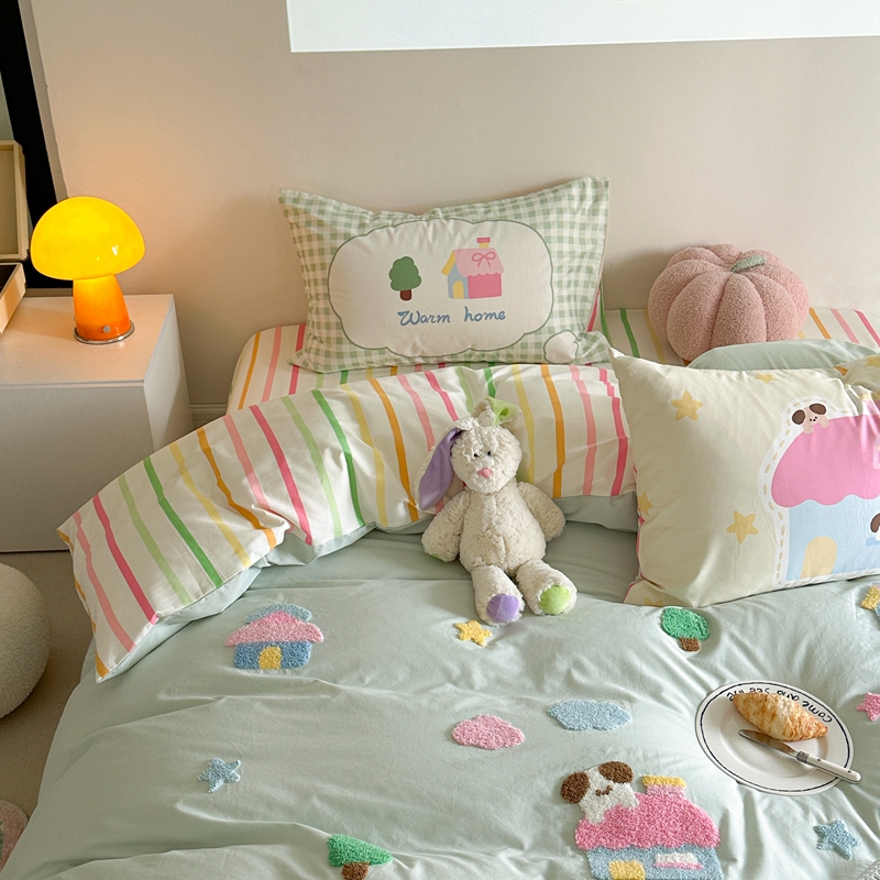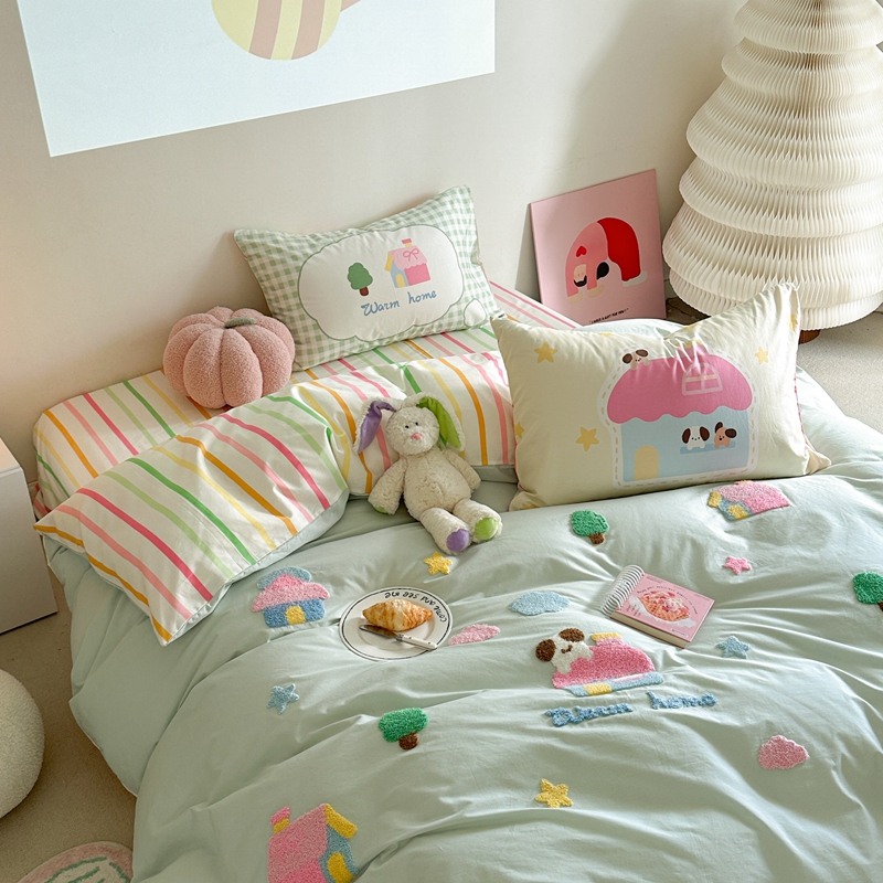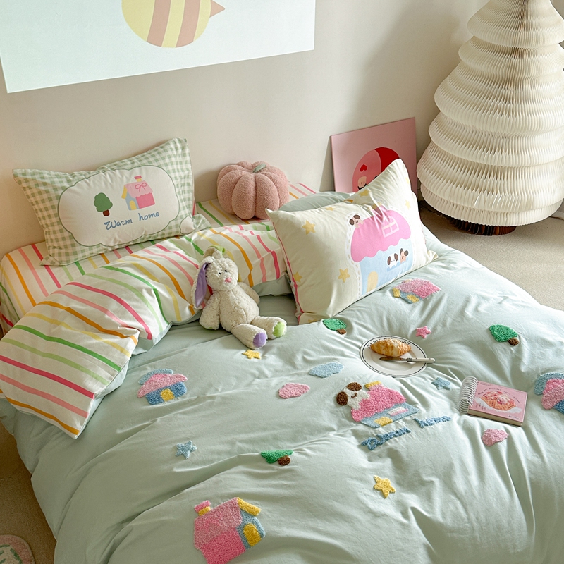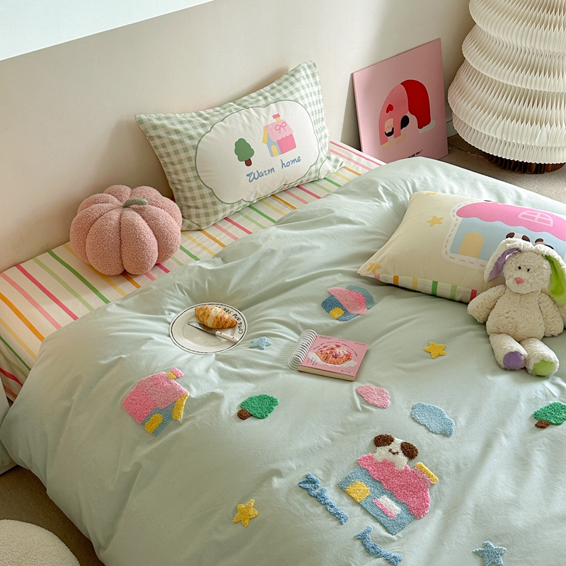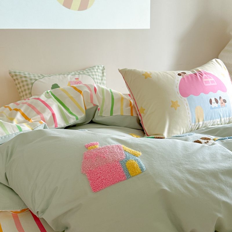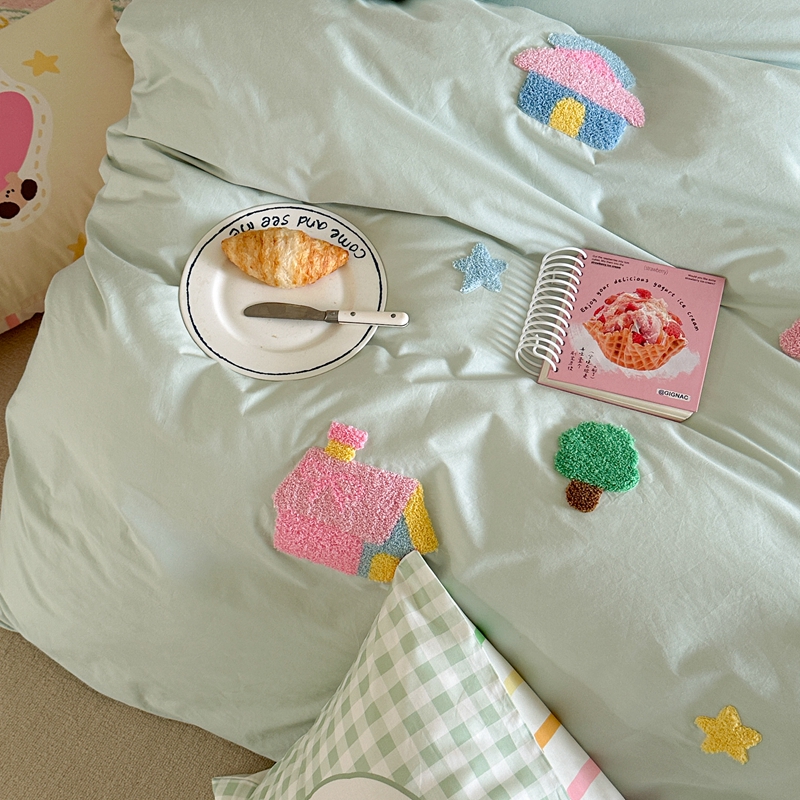 (总)柚子YOUTH 2025新款全棉纯棉工艺款13070贴布绣四件套,爱心小象,毛绒小狗,蘑菇女孩,星星法师