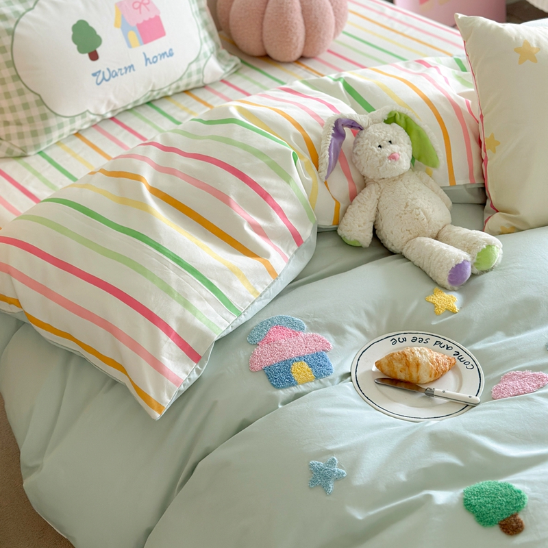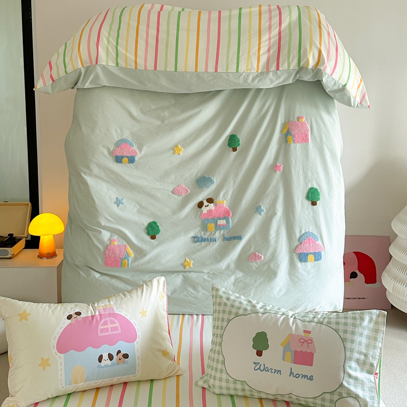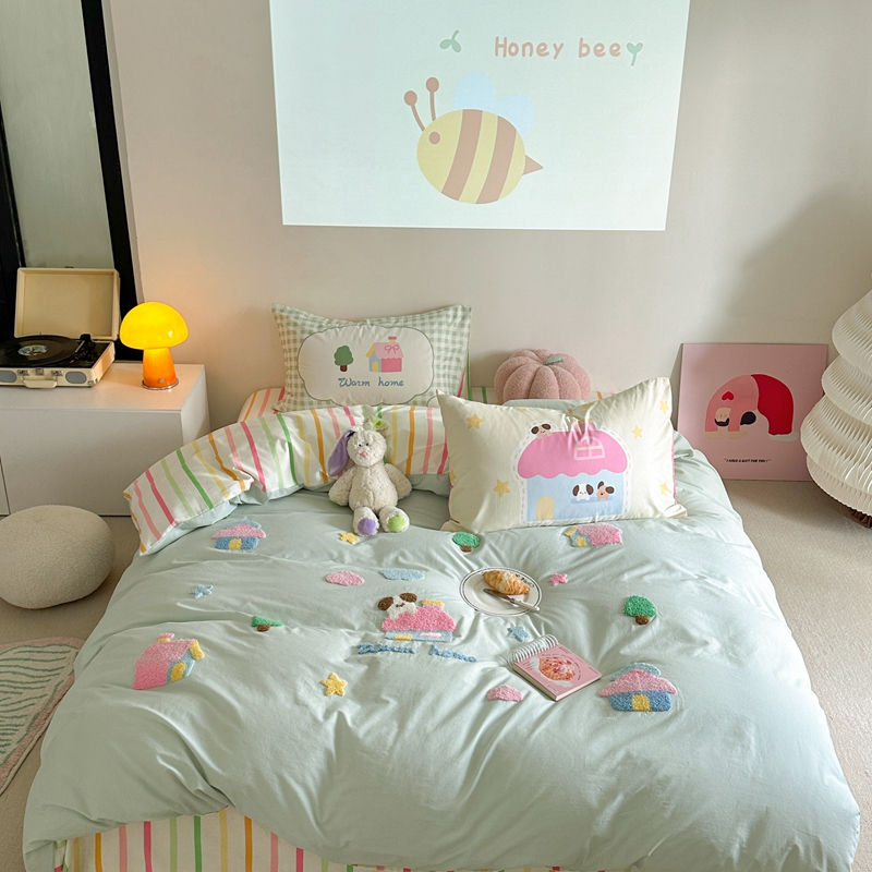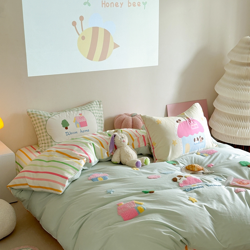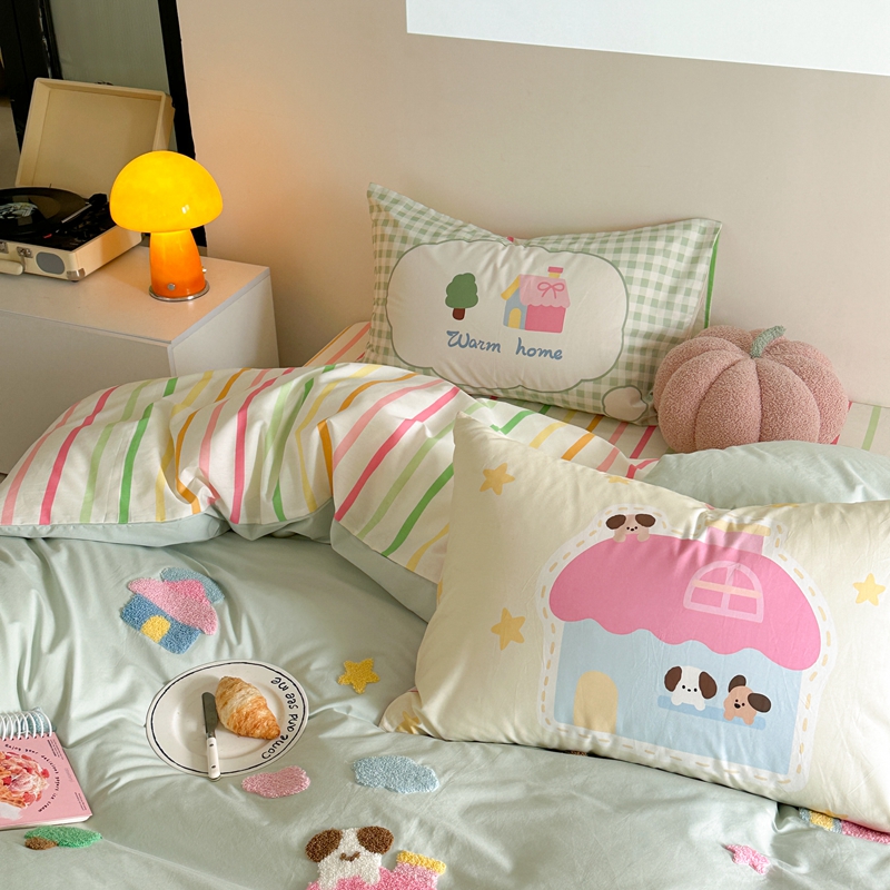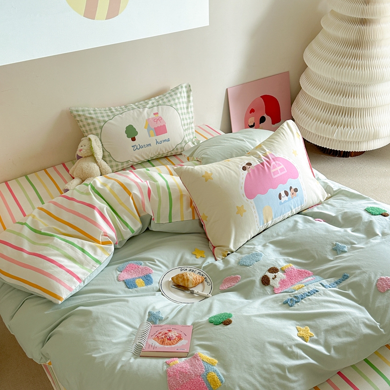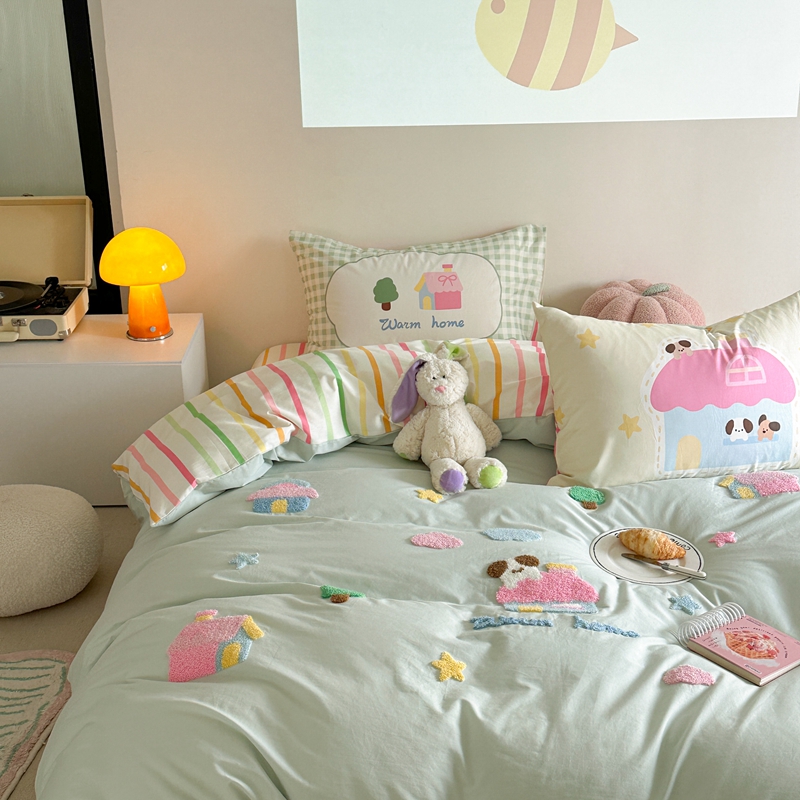 (总)柚子YOUTH 2025新款全棉纯棉工艺款13070贴布绣四件套,爱心小象,毛绒小狗,蘑菇女孩,星星法师