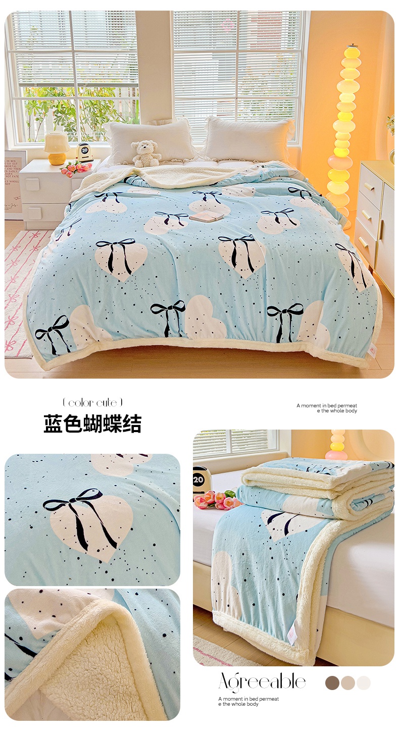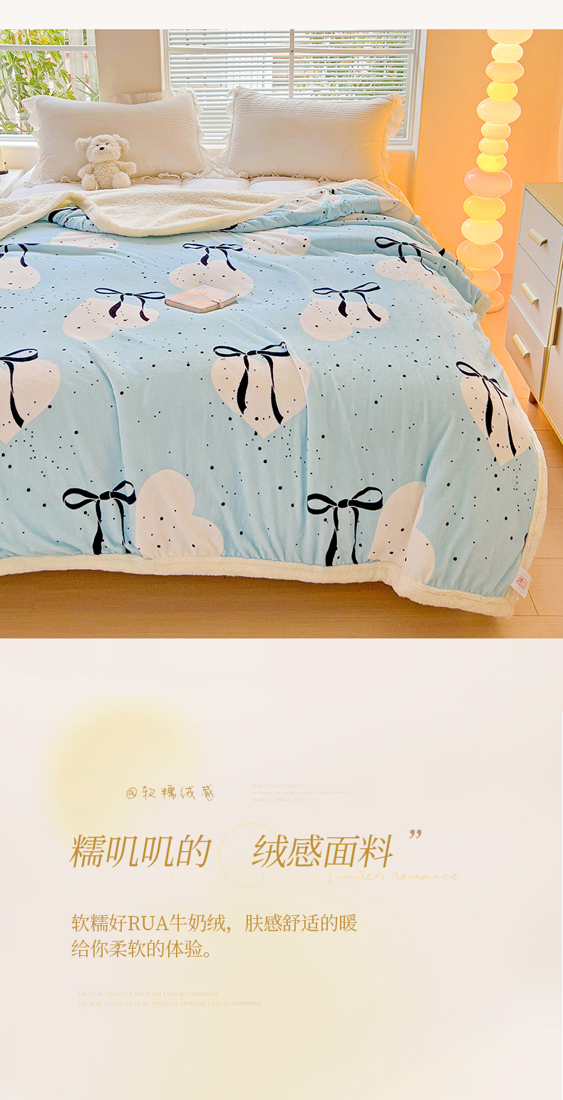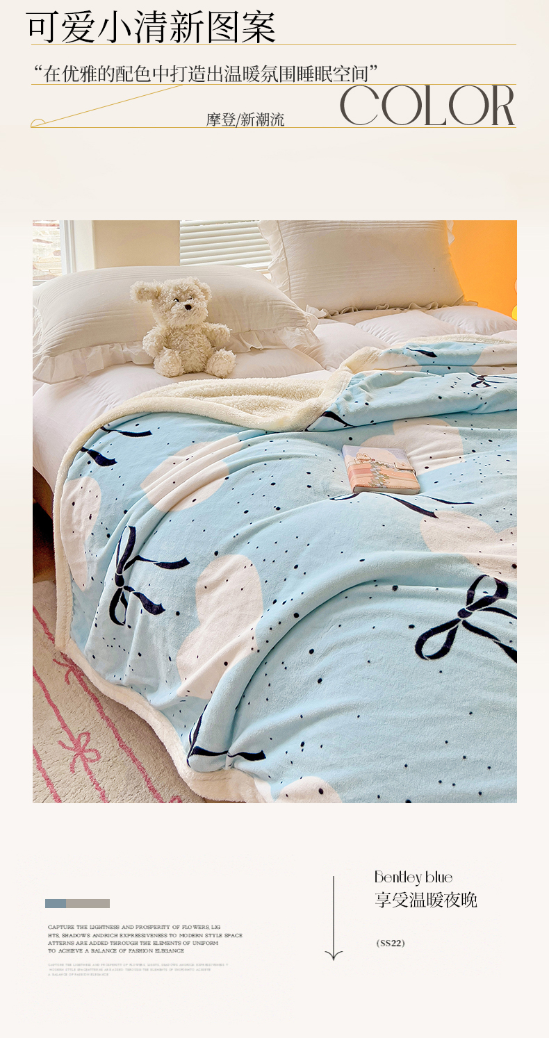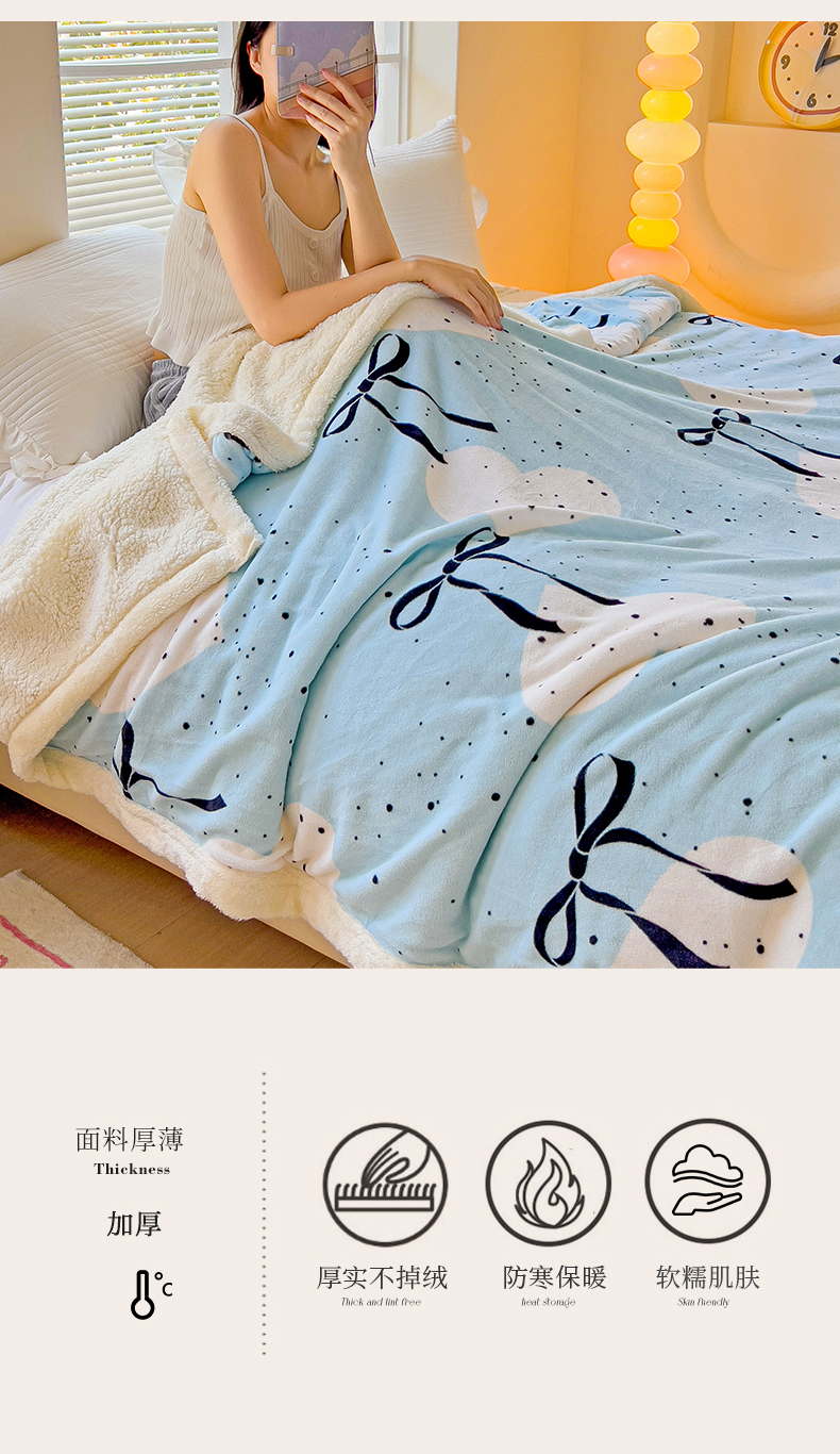 鑫喜莱家纺 2024新款牛奶绒羊羔绒盖毯毛毯毯子午睡毯 蓝色蝴蝶结