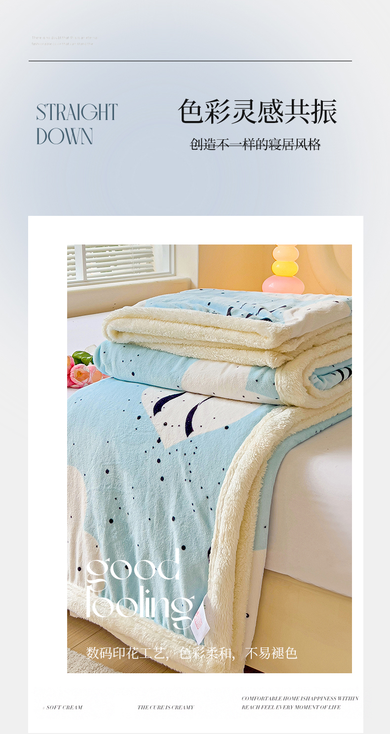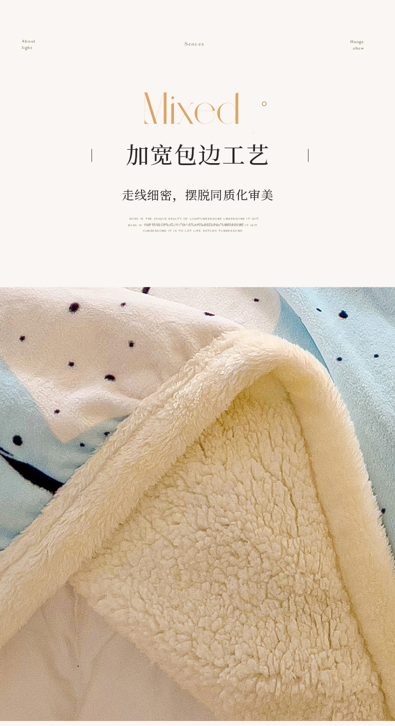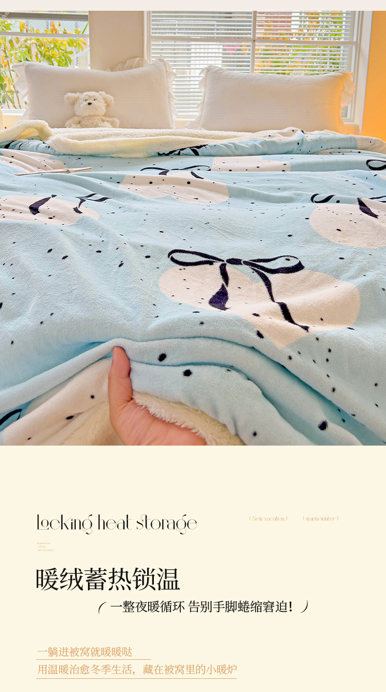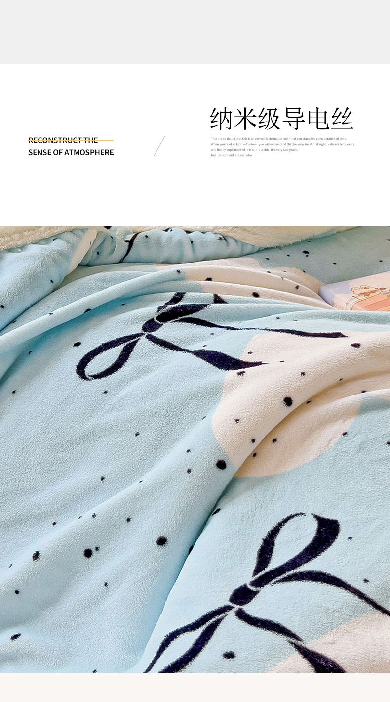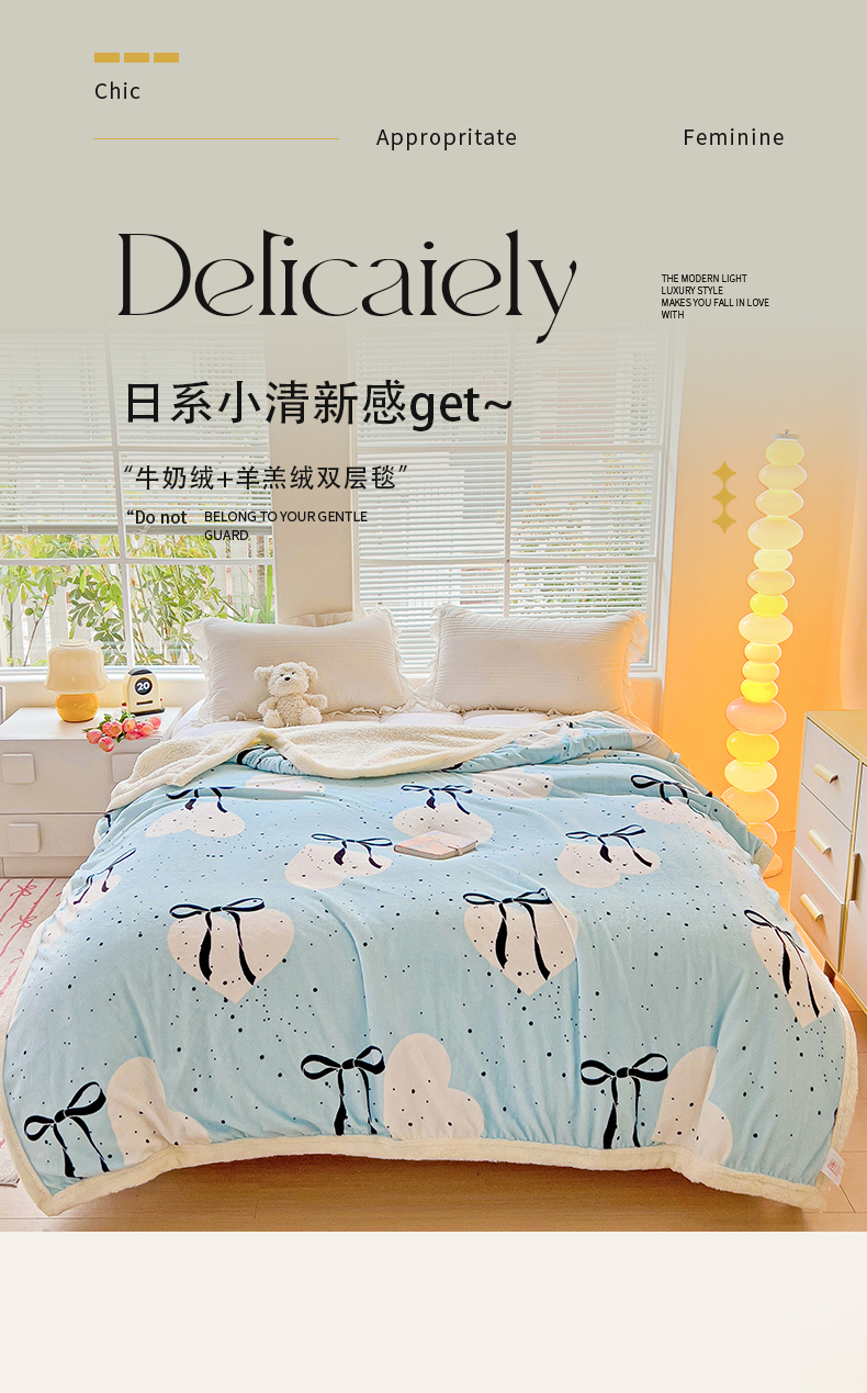 鑫喜莱家纺 2024新款牛奶绒羊羔绒盖毯毛毯毯子午睡毯 蓝色蝴蝶结