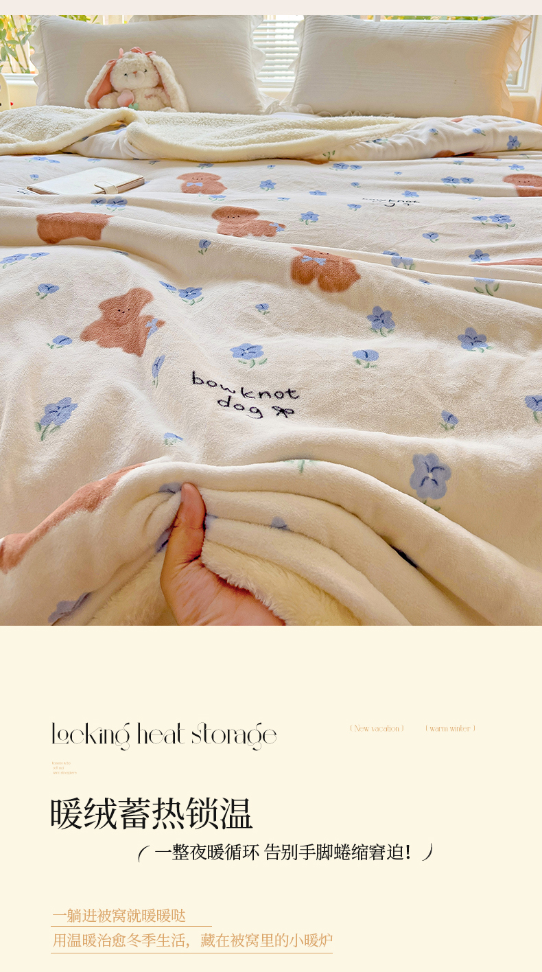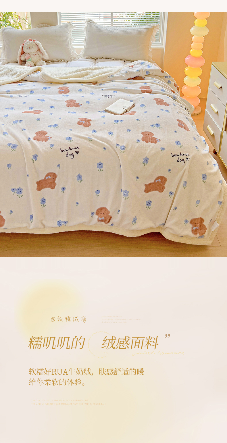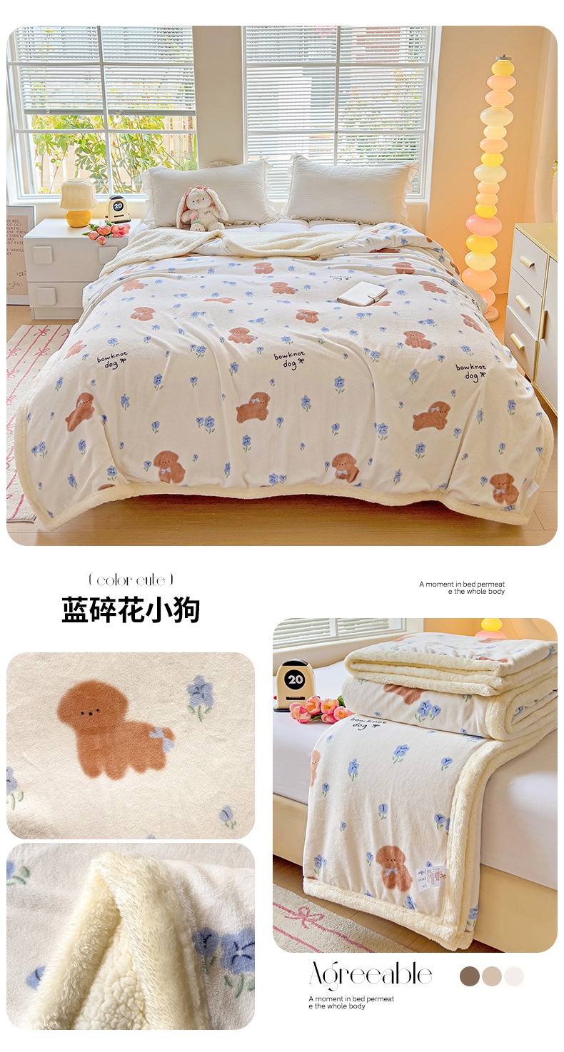 鑫喜莱家纺 2024新款牛奶绒羊羔绒盖毯毛毯毯子午睡毯 蓝碎花小狗