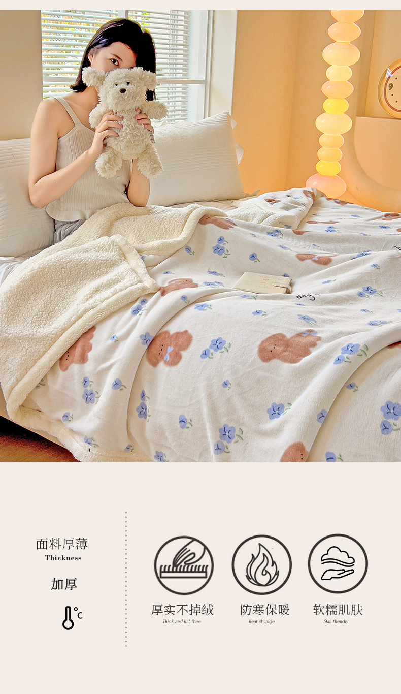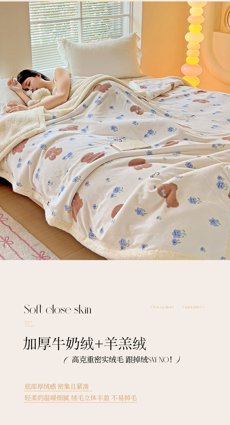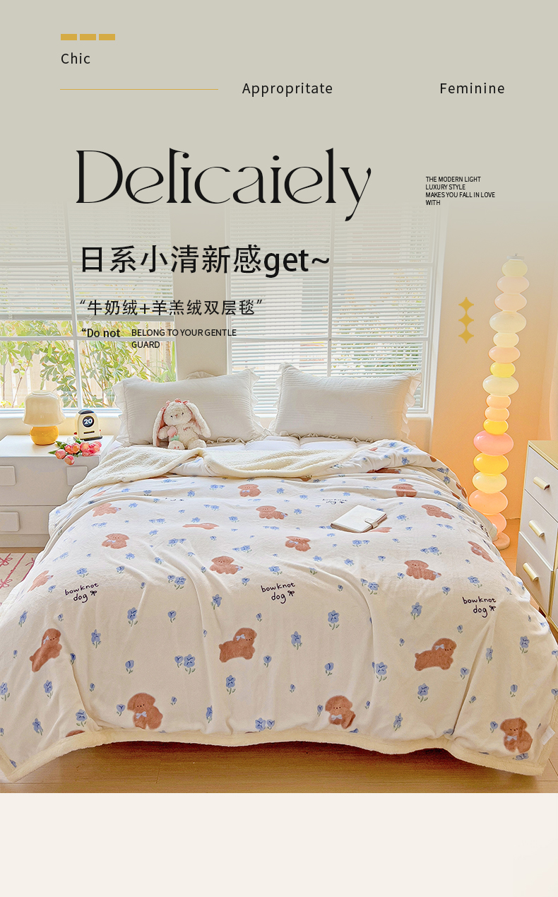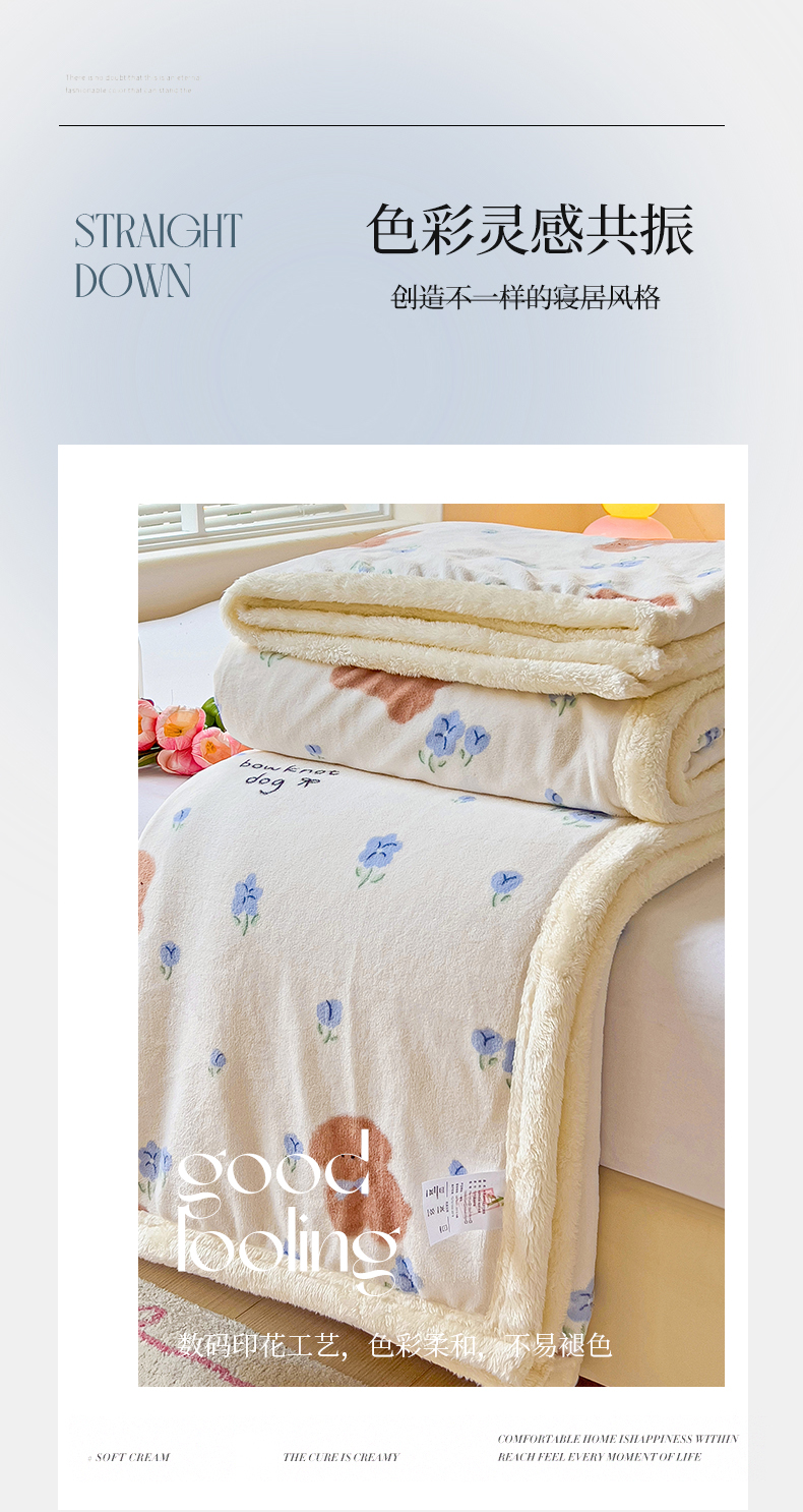 鑫喜莱家纺 2024新款牛奶绒羊羔绒盖毯毛毯毯子午睡毯 蓝碎花小狗