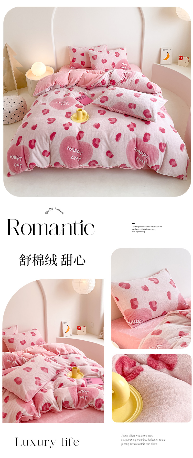 商品名称:山茶家纺 2024新款舒棉绒牛奶绒印花四件套 舒棉绒-甜心